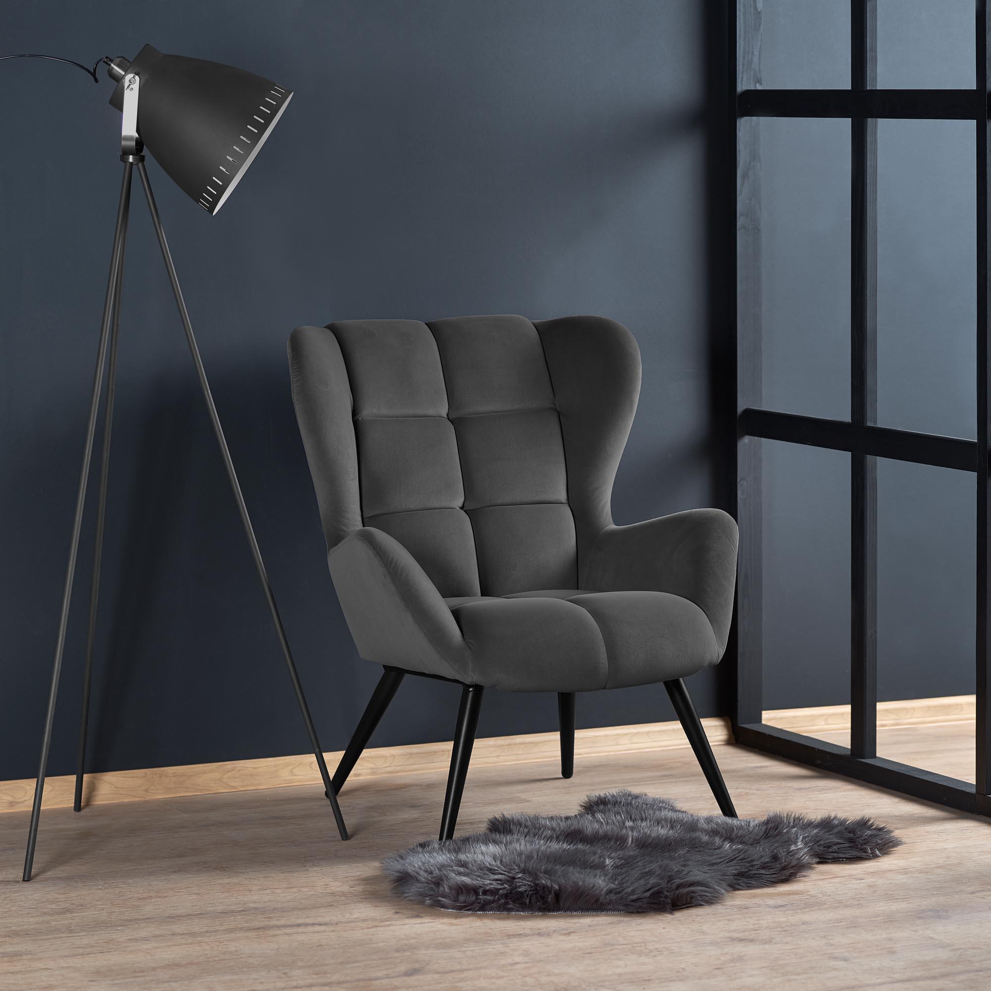 Wykonano z materiału: tkanina / stal malowana proszkowo, kolor tapicerka - popielaty - BLUVEL 14, nogi - czarny