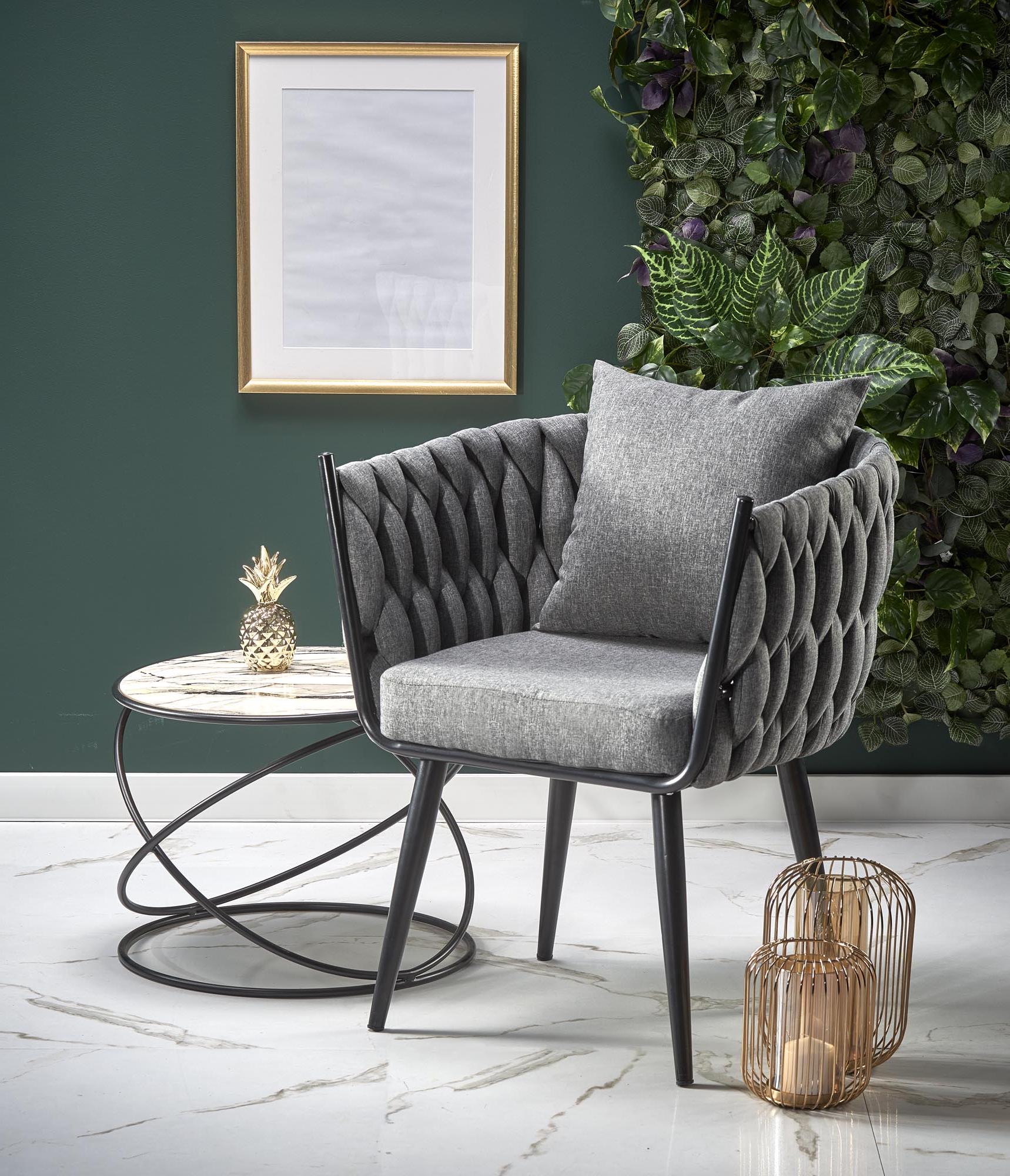 Wykonano z materiału: tkanina / stal malowana proszkowo, kolor popielaty