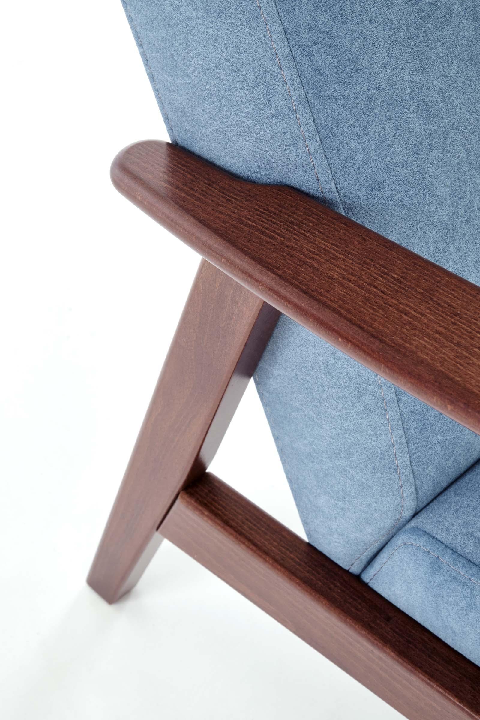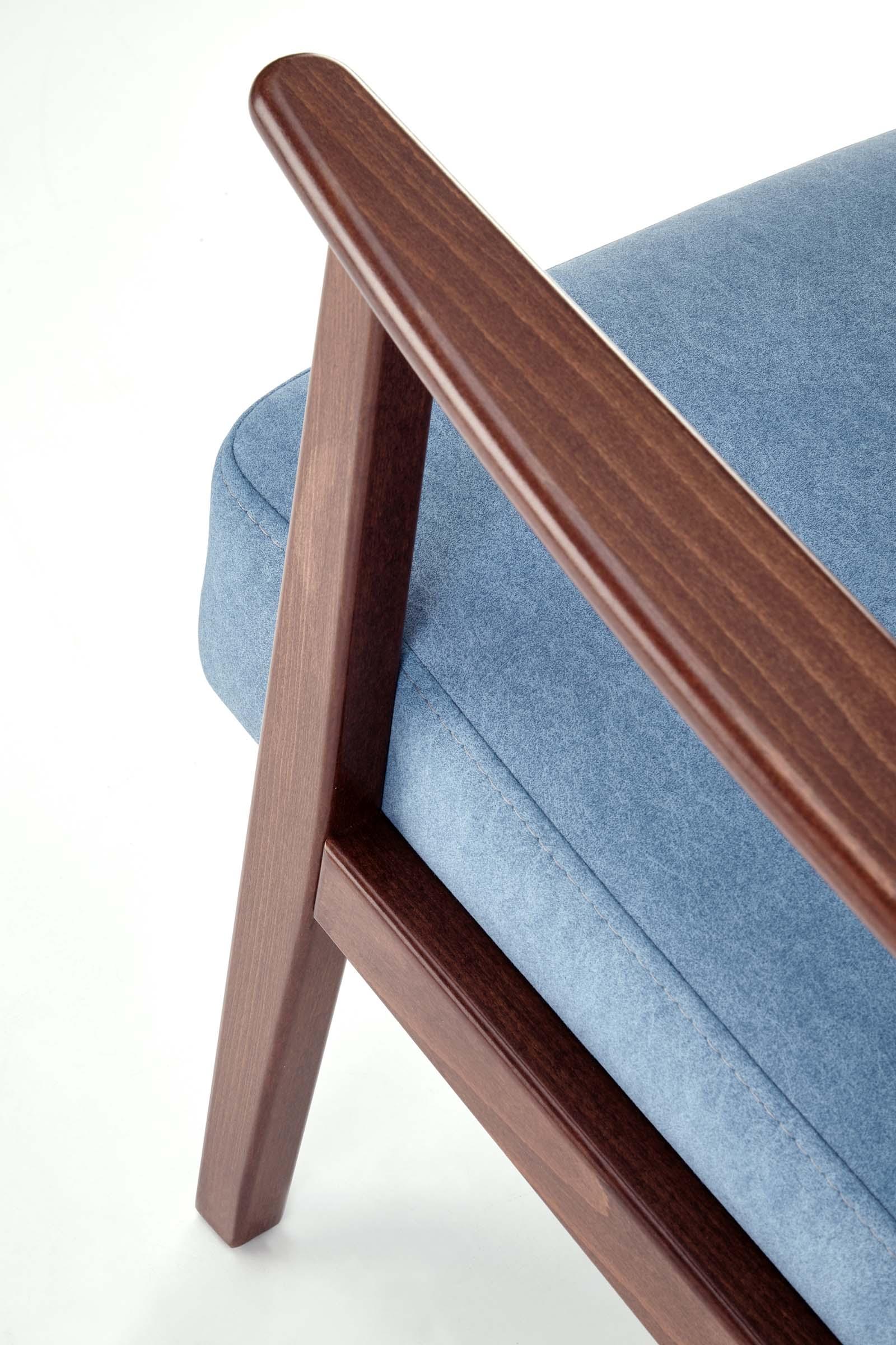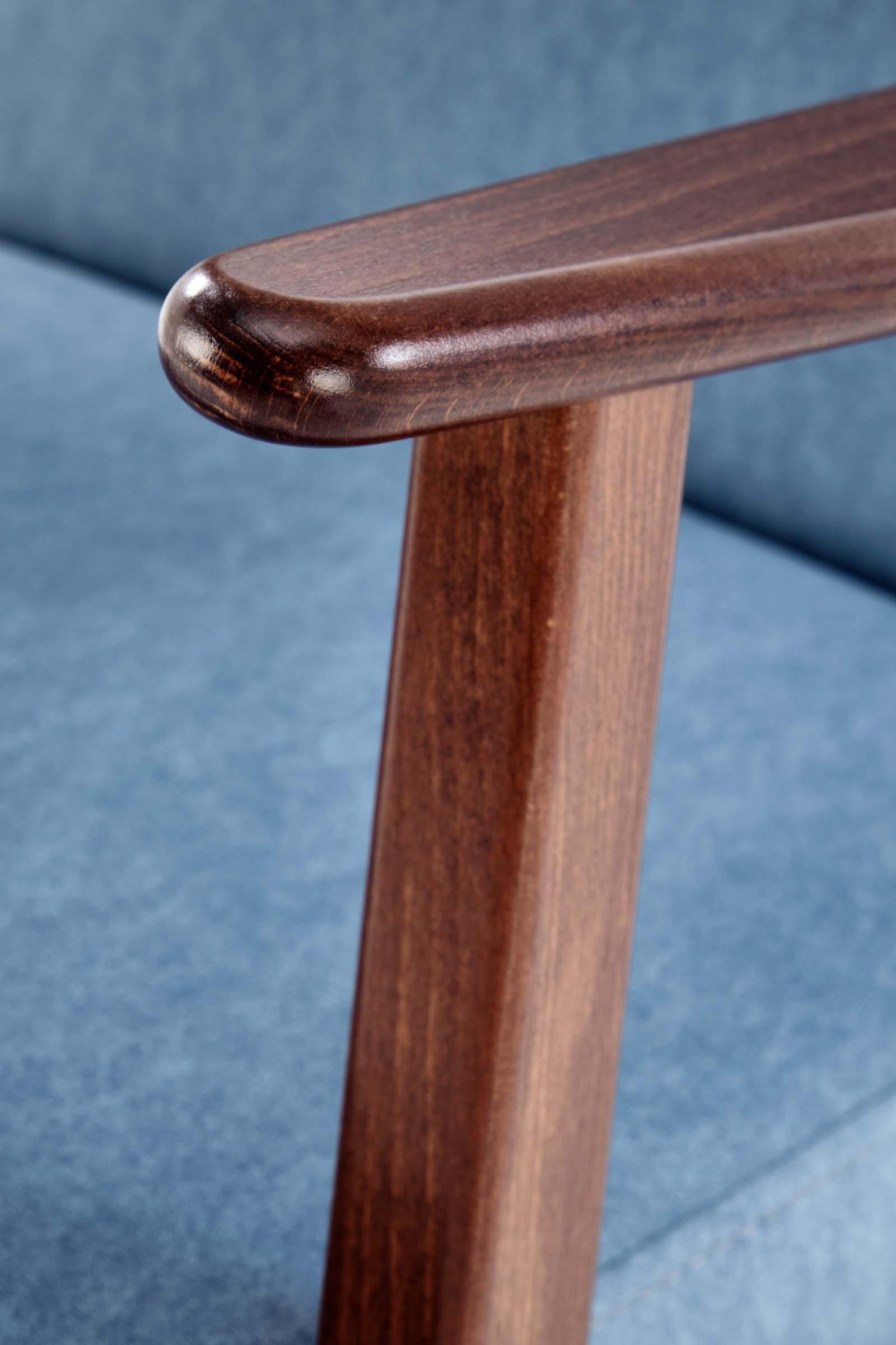 Wykonano z materiału: tkanina - CASTEL / drewno lite - bukowe, kolor niebieski CASTEL#74 - ciemny orzech