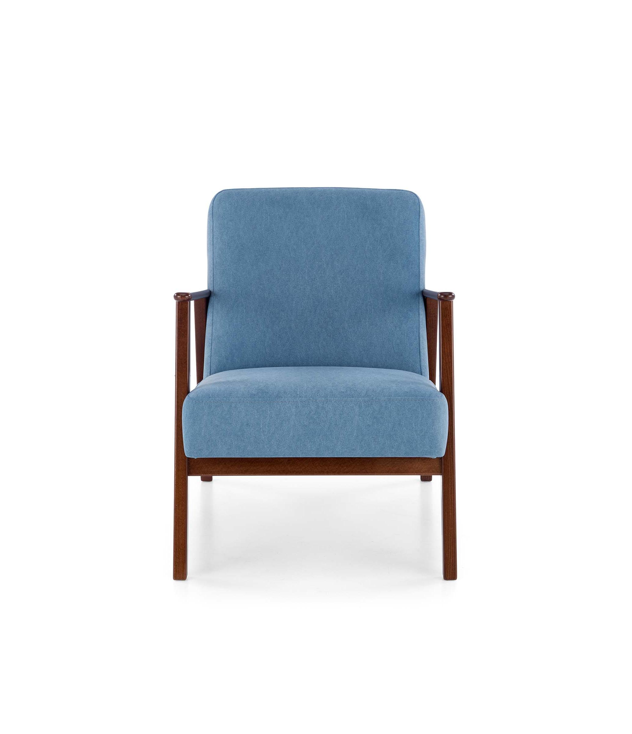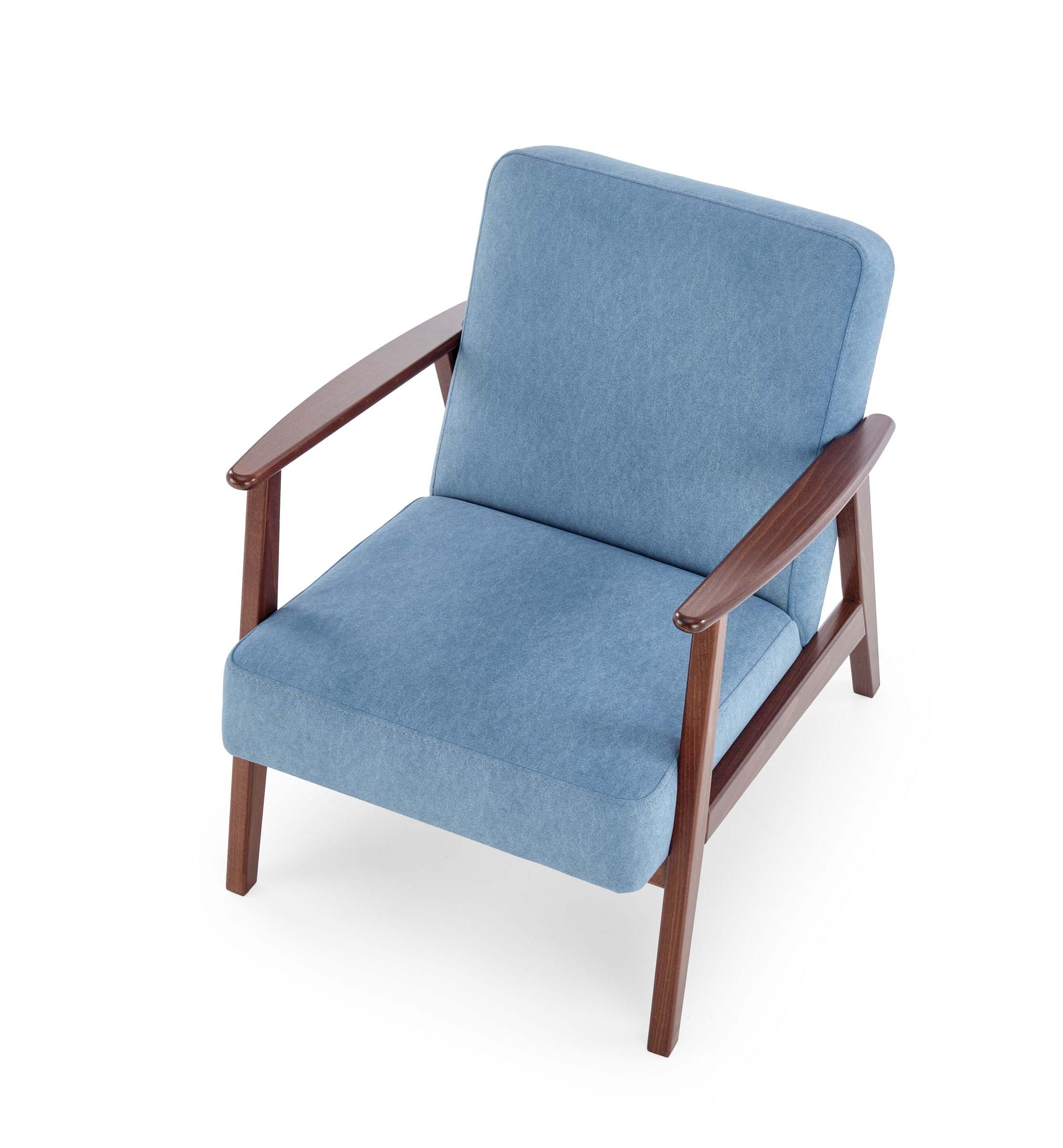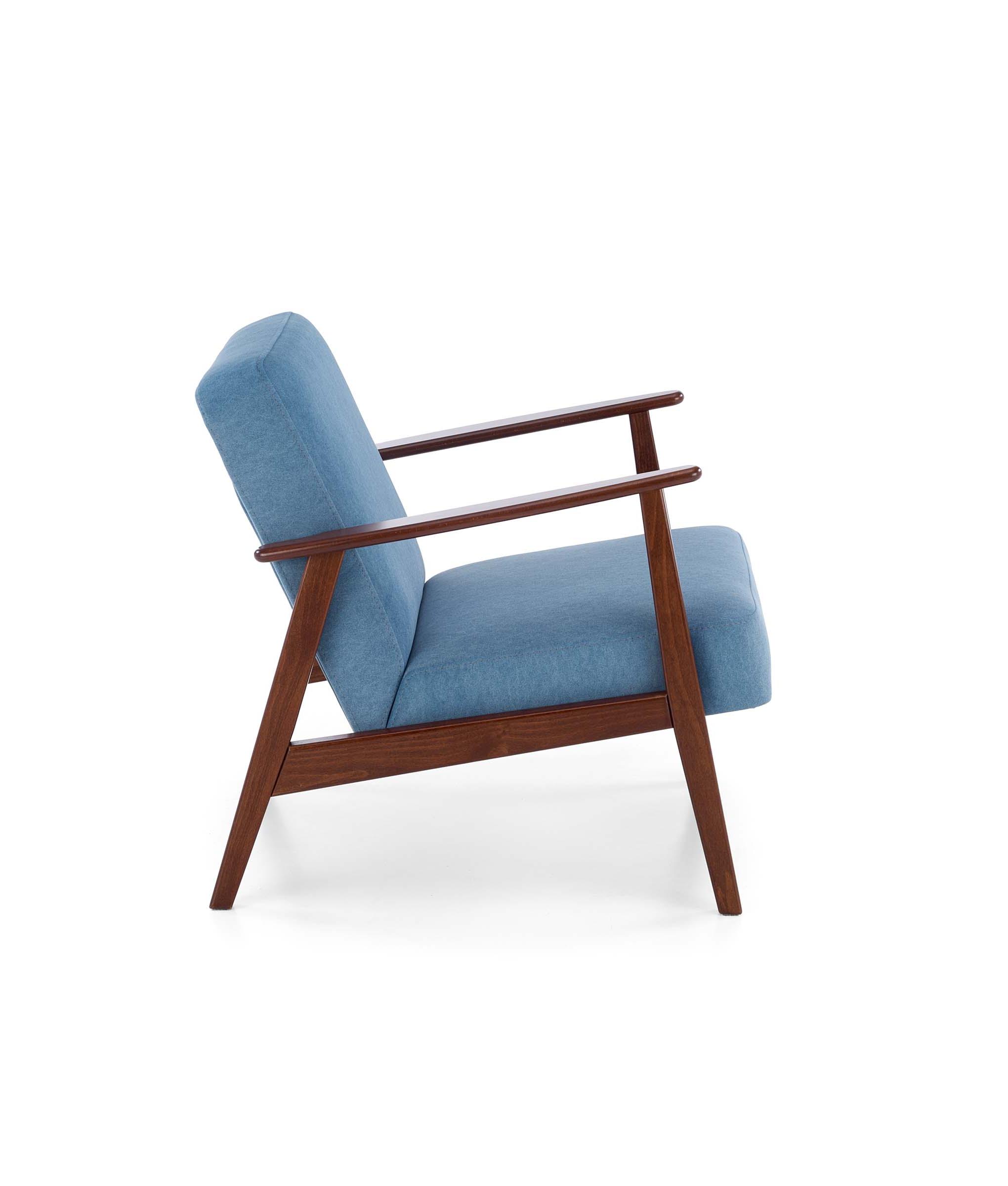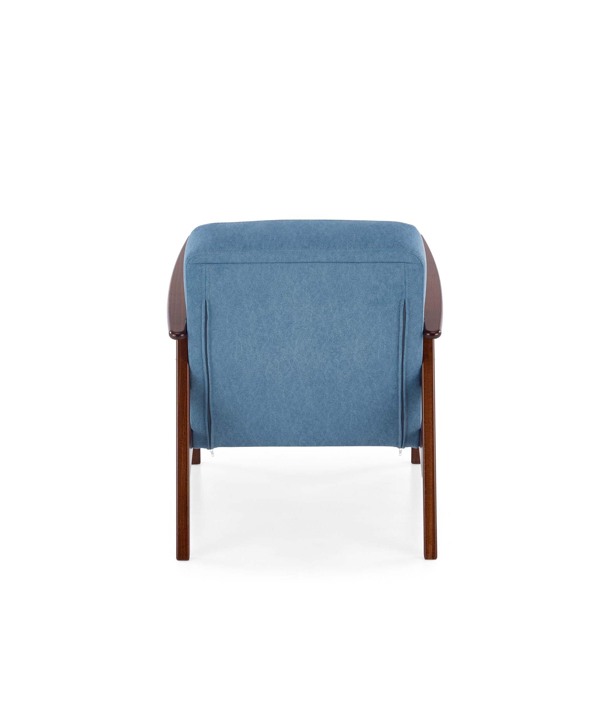 Wykonano z materiału: tkanina - CASTEL / drewno lite - bukowe, kolor niebieski CASTEL#74 - ciemny orzech