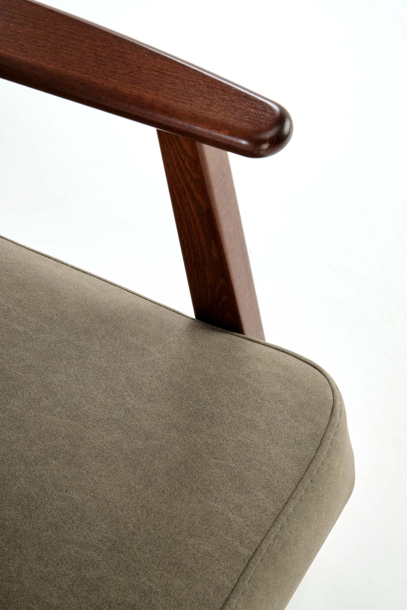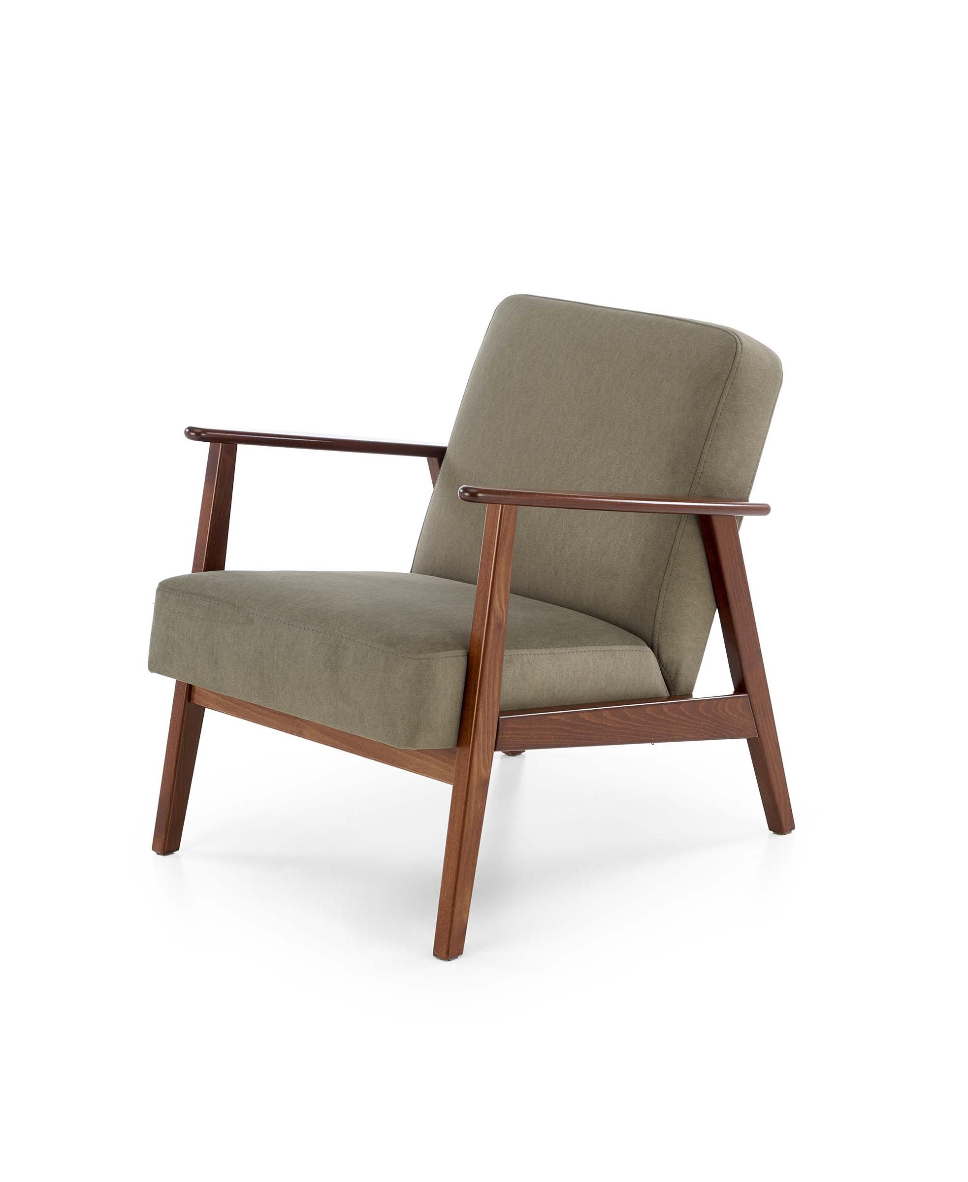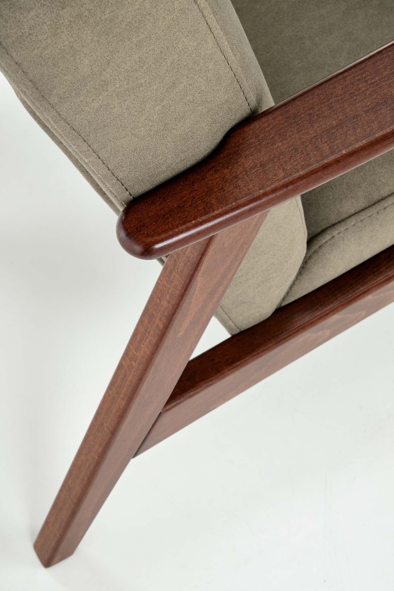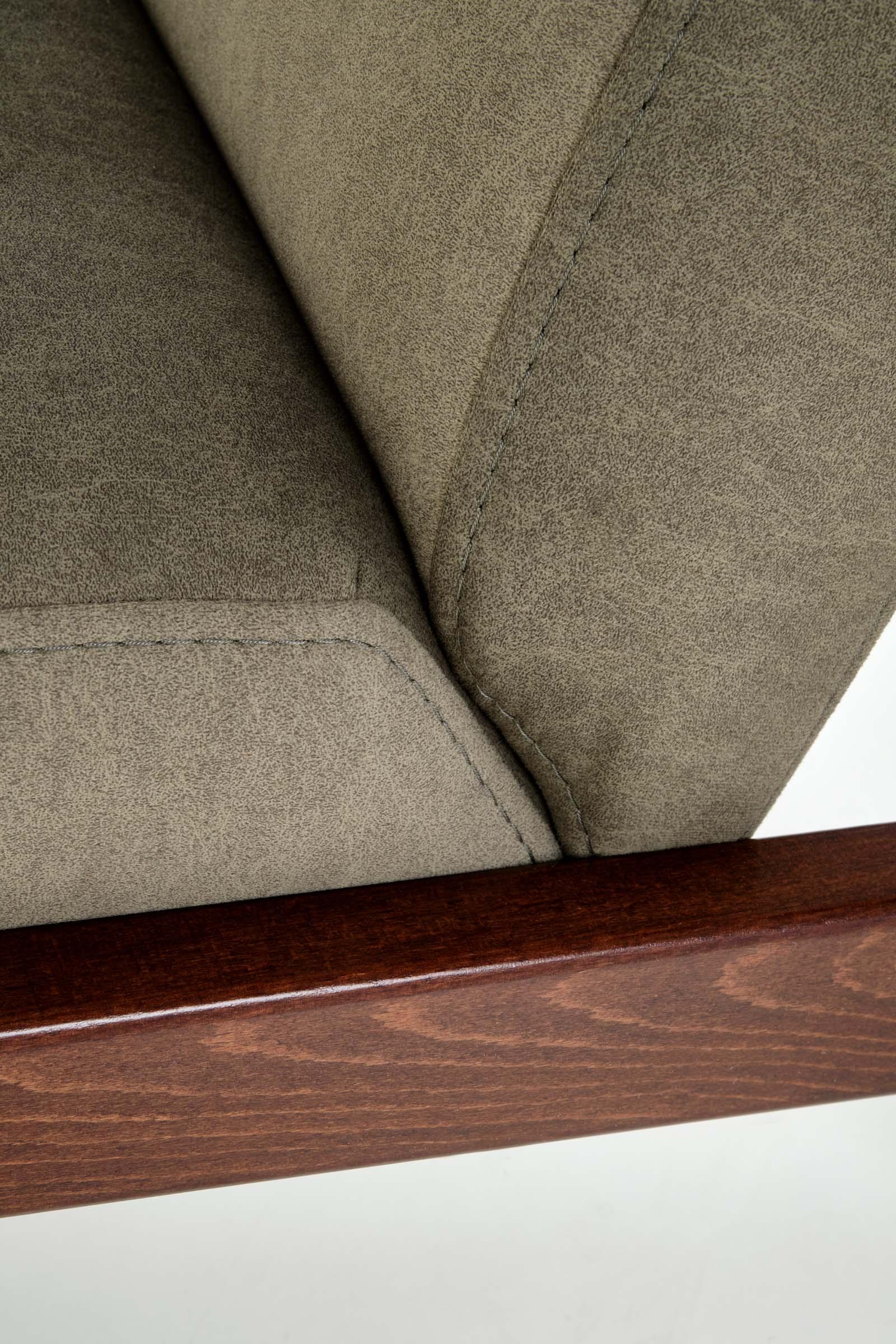 Wykonano z materiału: tkanina - CASTEL / drewno lite - bukowe, kolor oliwkowy CASTEL#39 - ciemny orzech