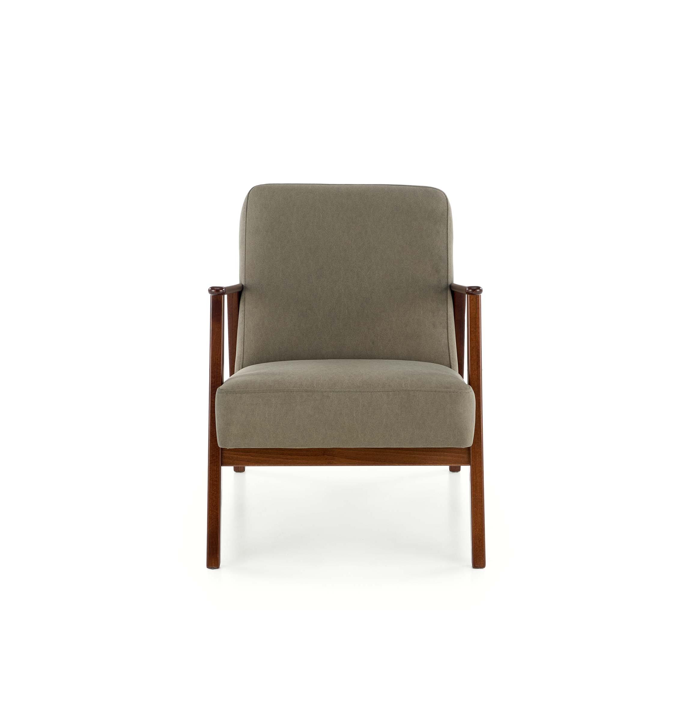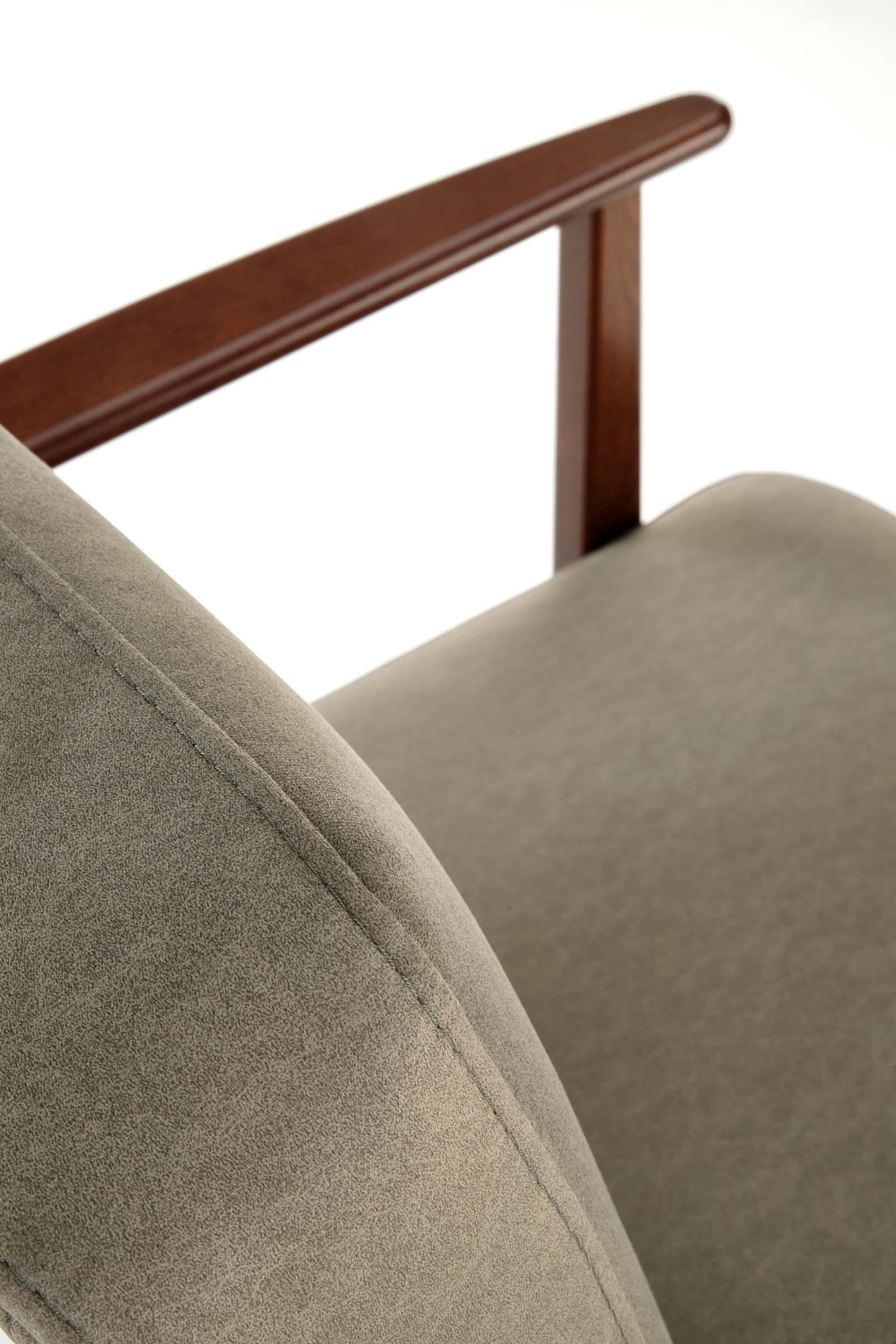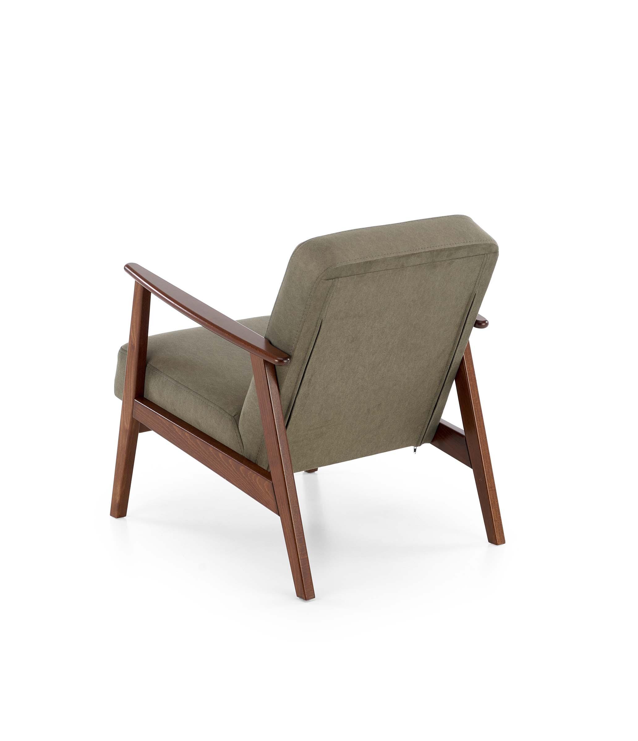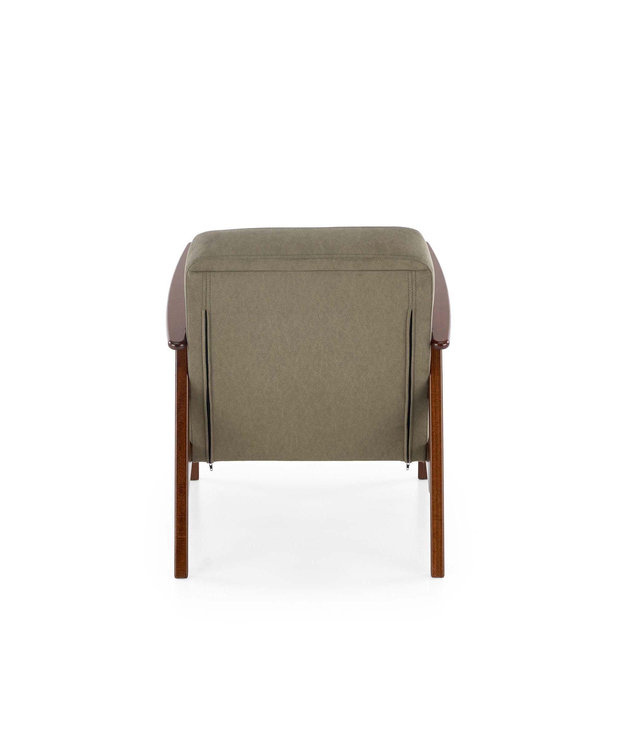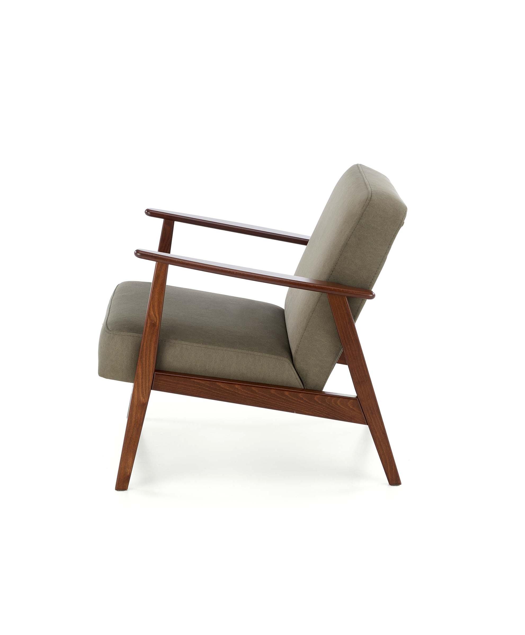 Wykonano z materiału: tkanina - CASTEL / drewno lite - bukowe, kolor oliwkowy CASTEL#39 - ciemny orzech