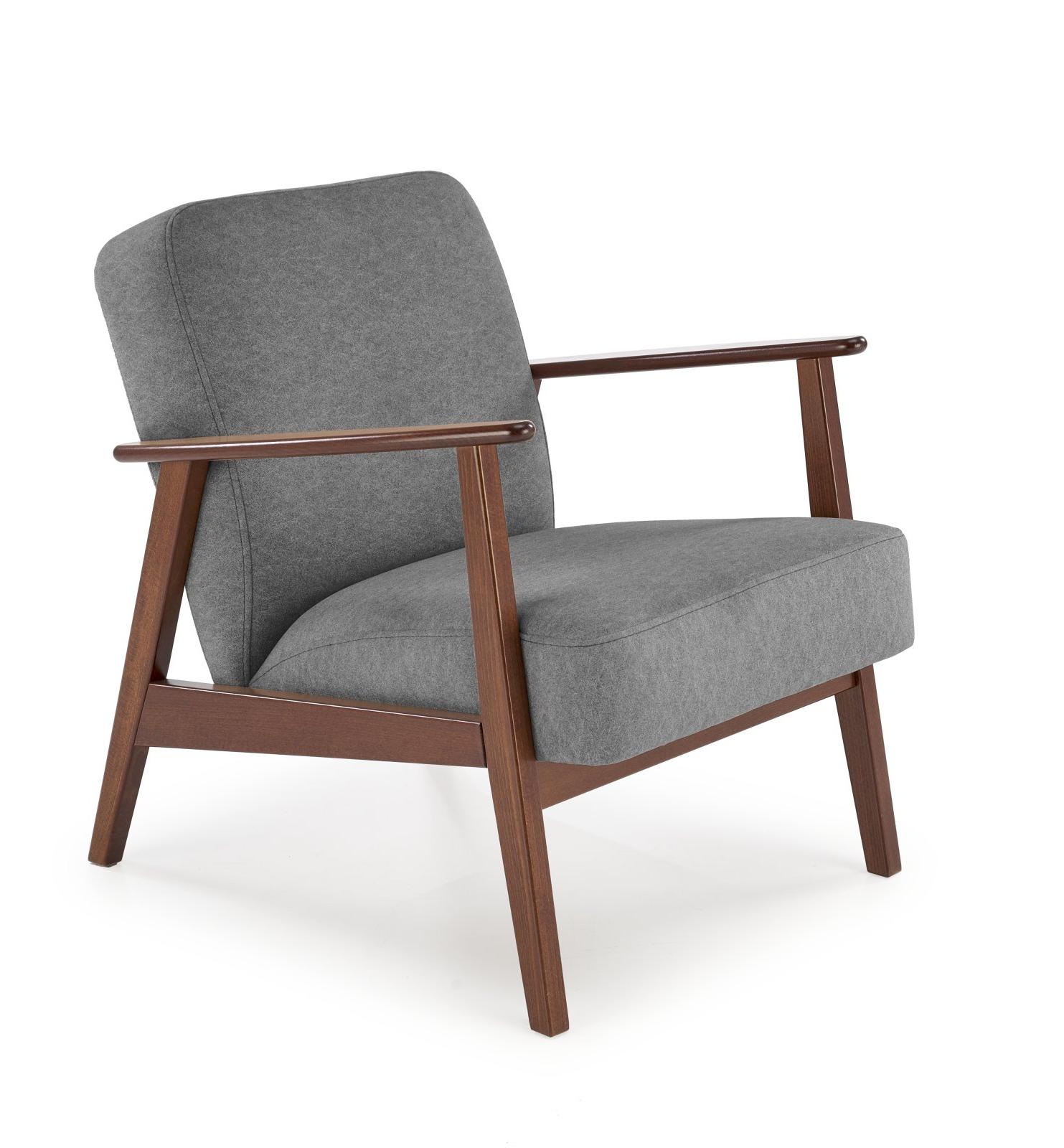 Wykonano z materiału: tkanina - CASTEL / drewno lite - bukowe, kolor popielaty CASTEL#93 - ciemny orzech