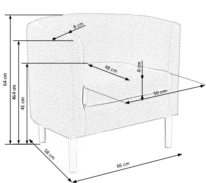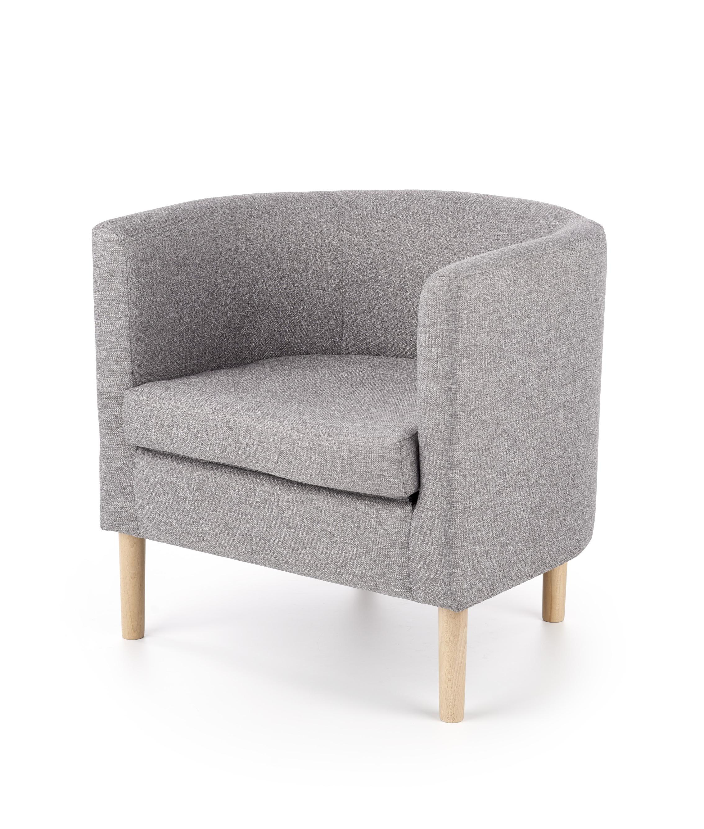 Wykonano z materiału: tkanina / drewno lite, kolor tapicerka - popielaty (MALMO NEW 90), nogi - naturalny