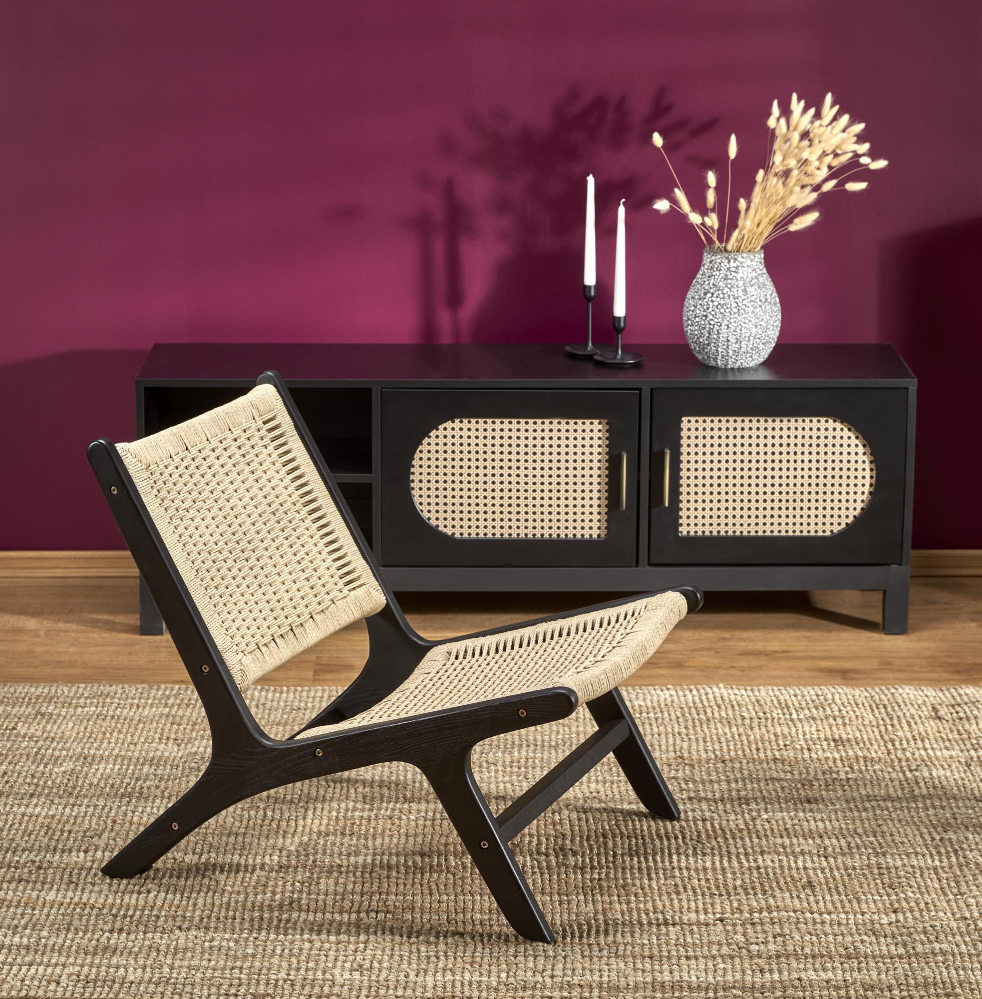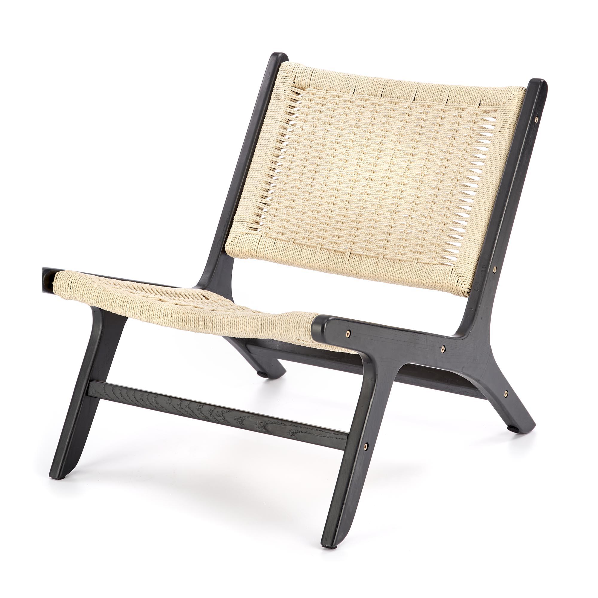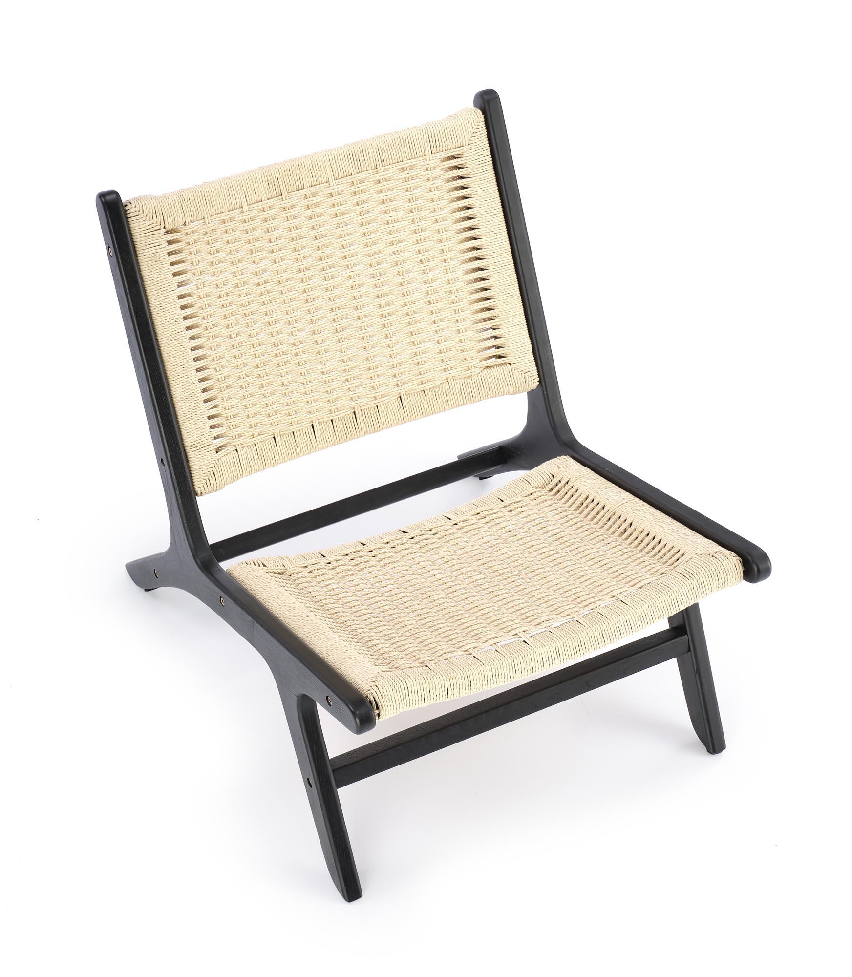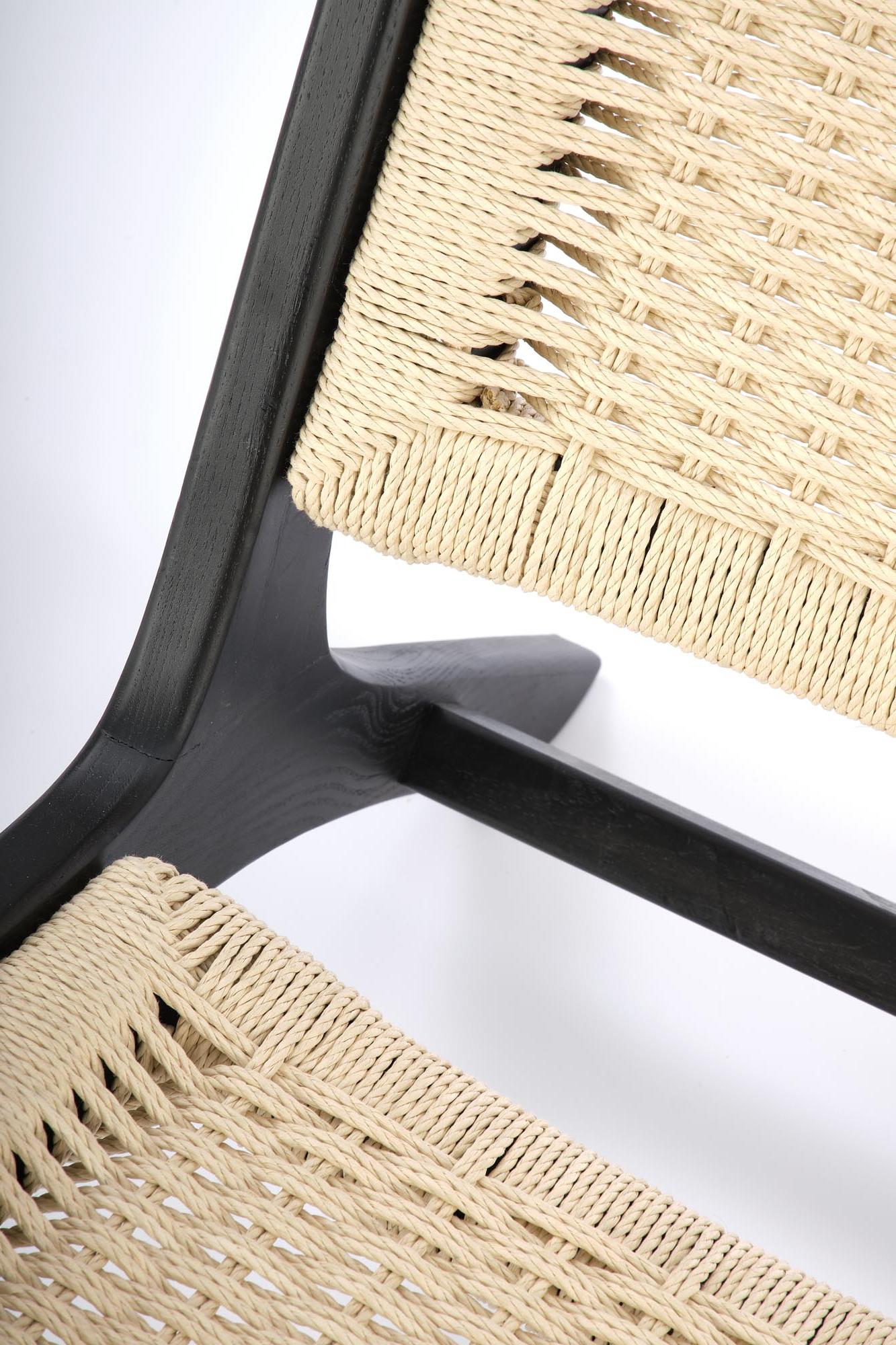 Wykonano z materiału: drewno lite - kauczukowe/ sznurek, kolor czarny - naturalny