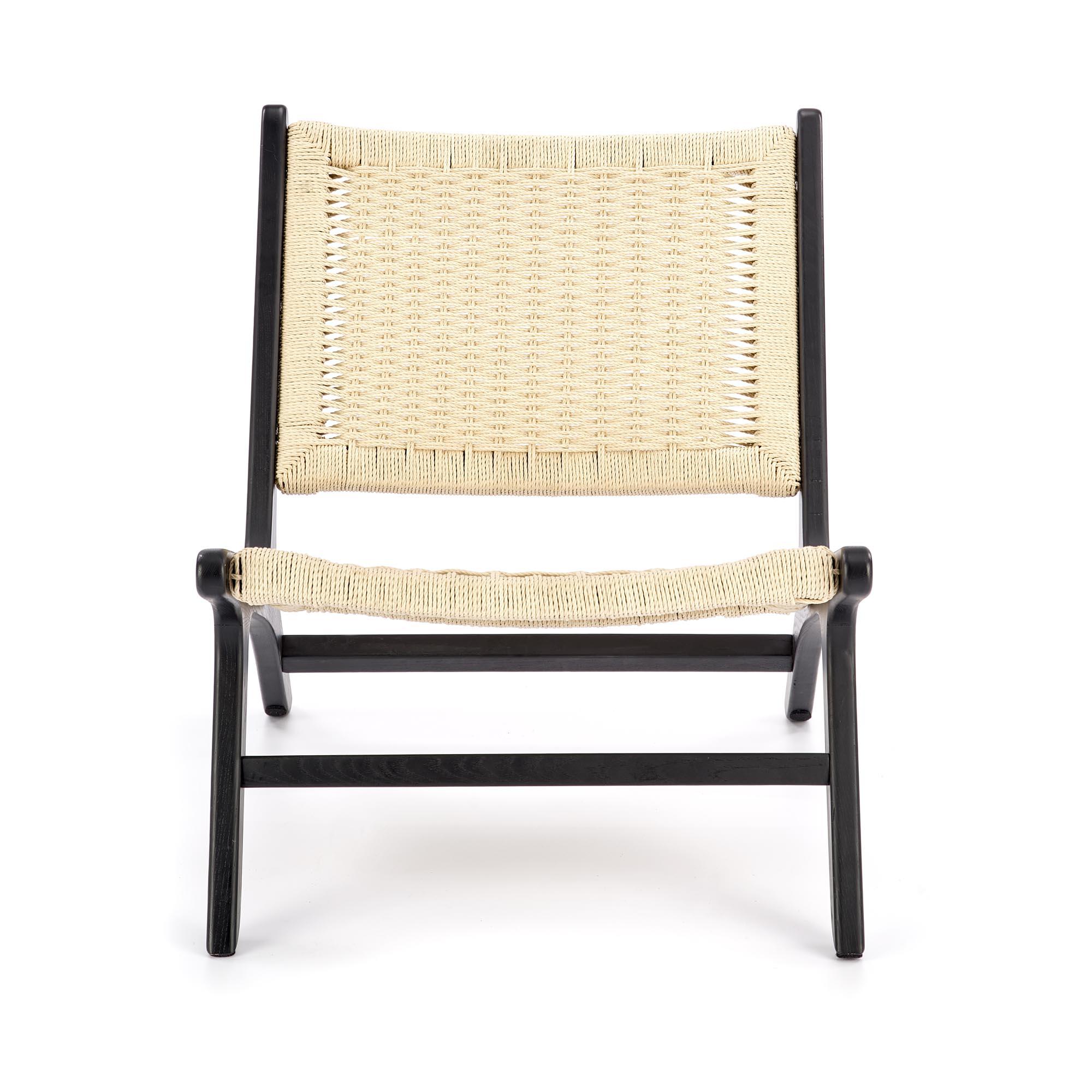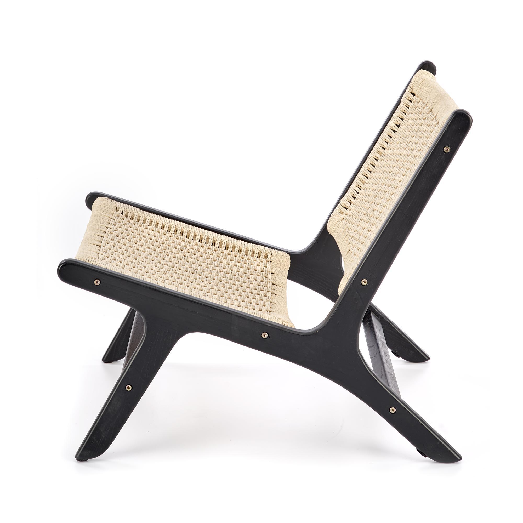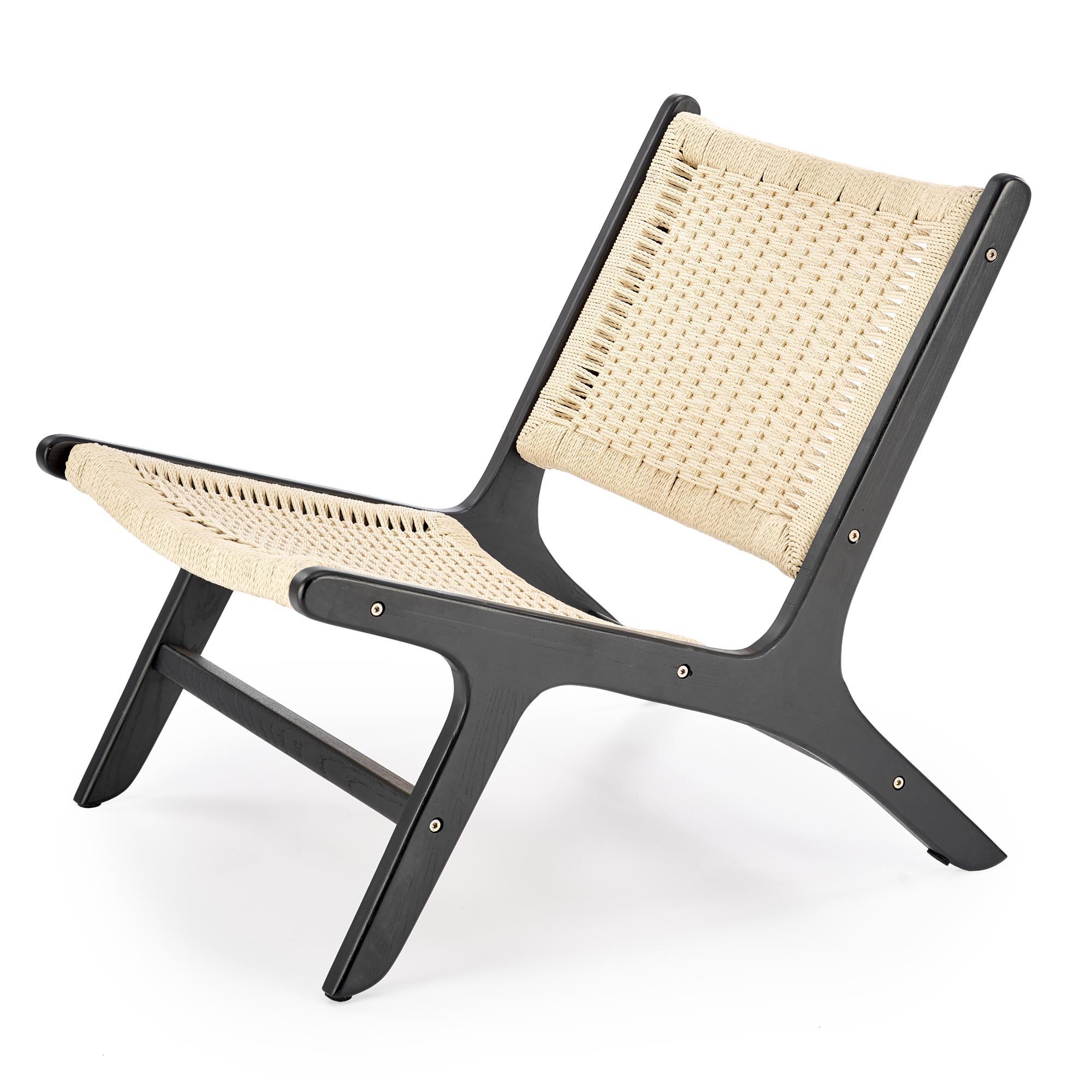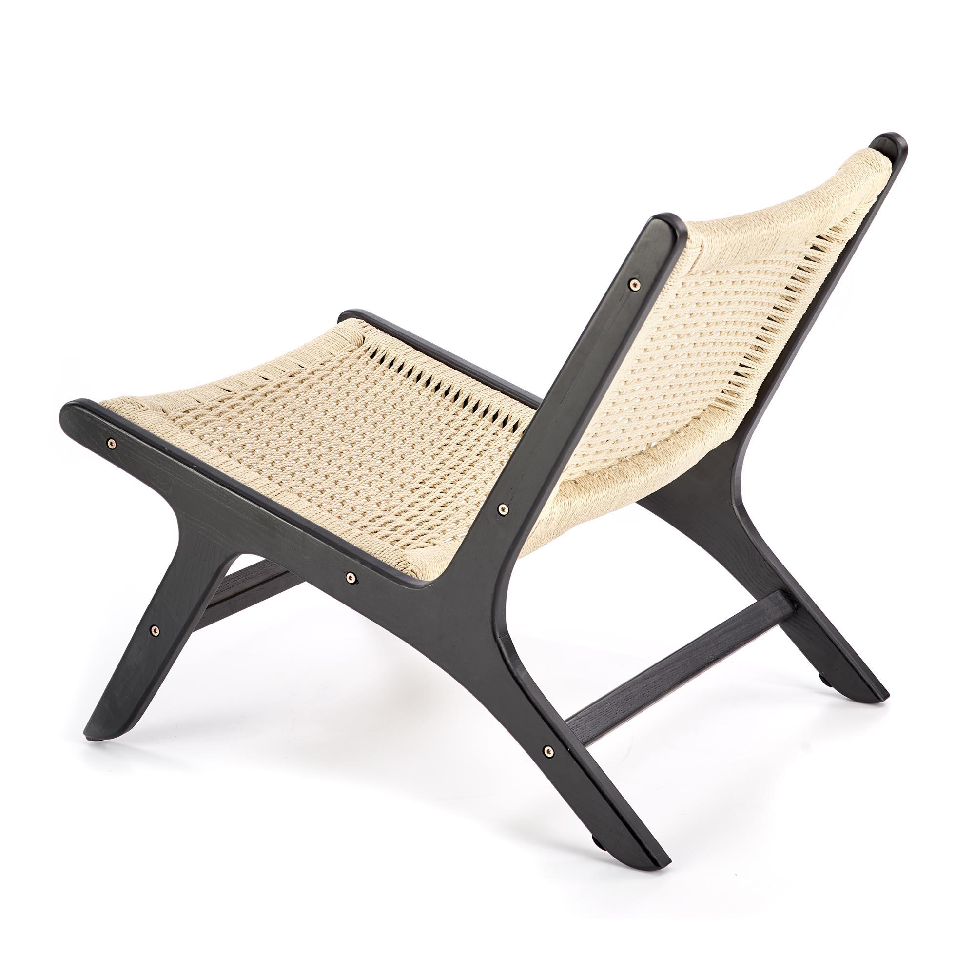 Wykonano z materiału: drewno lite - kauczukowe/ sznurek, kolor czarny - naturalny