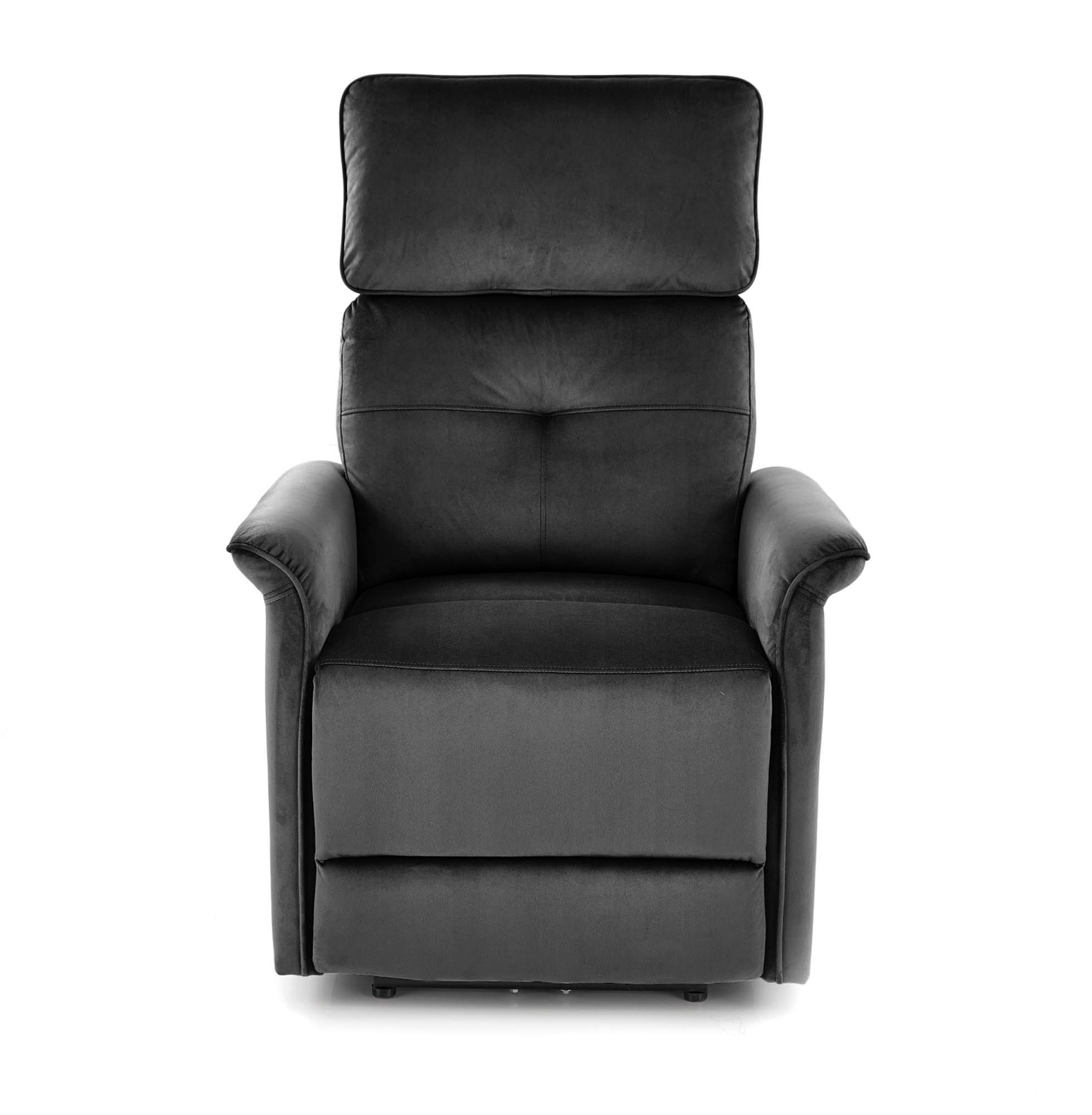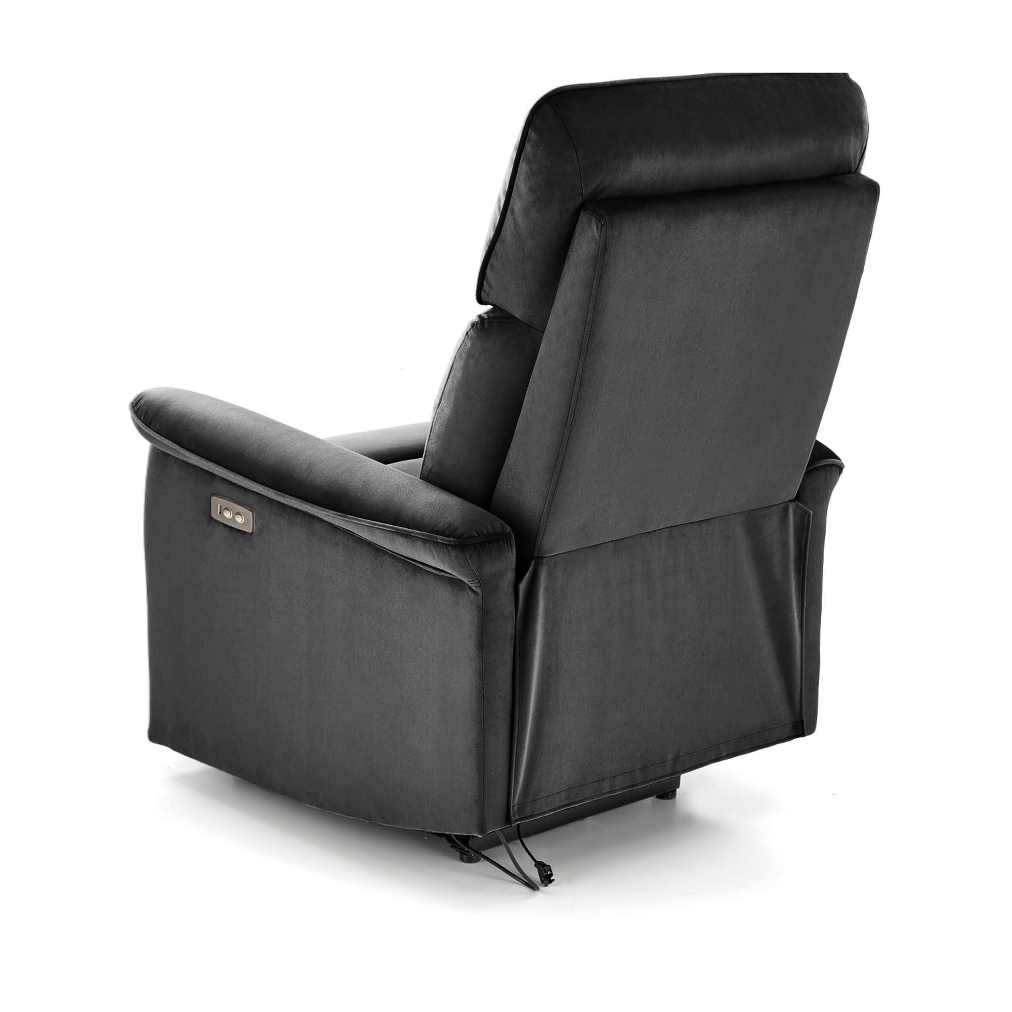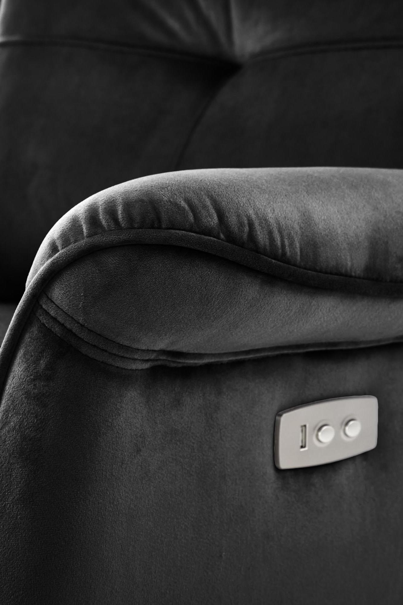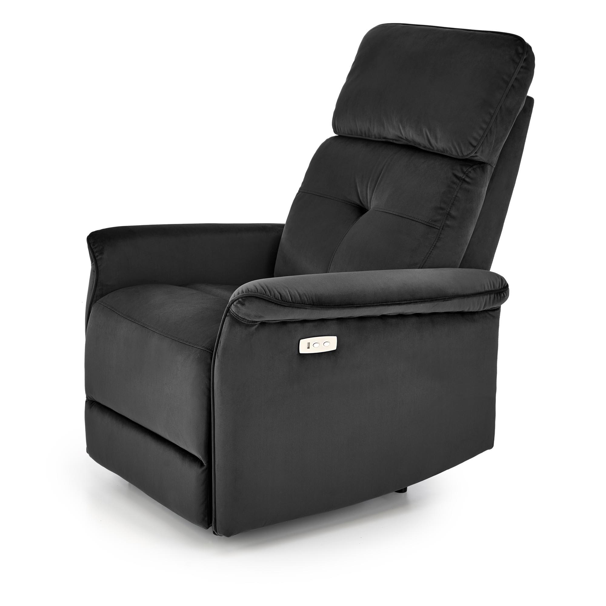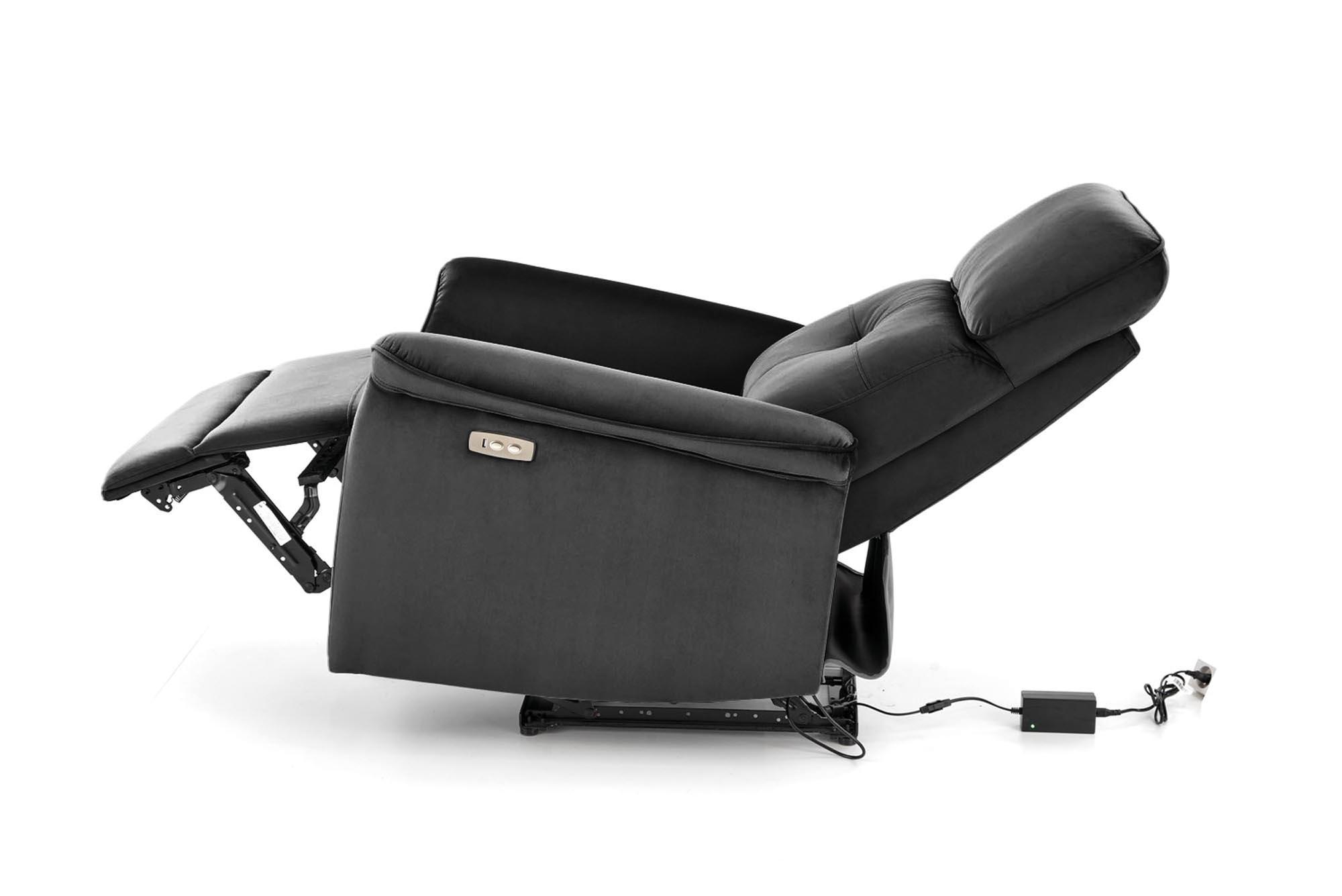 Fotel do salonu z funkcją elektrycznego rozkładania, gniazdo USB, kolor czarny, tkanina velvet