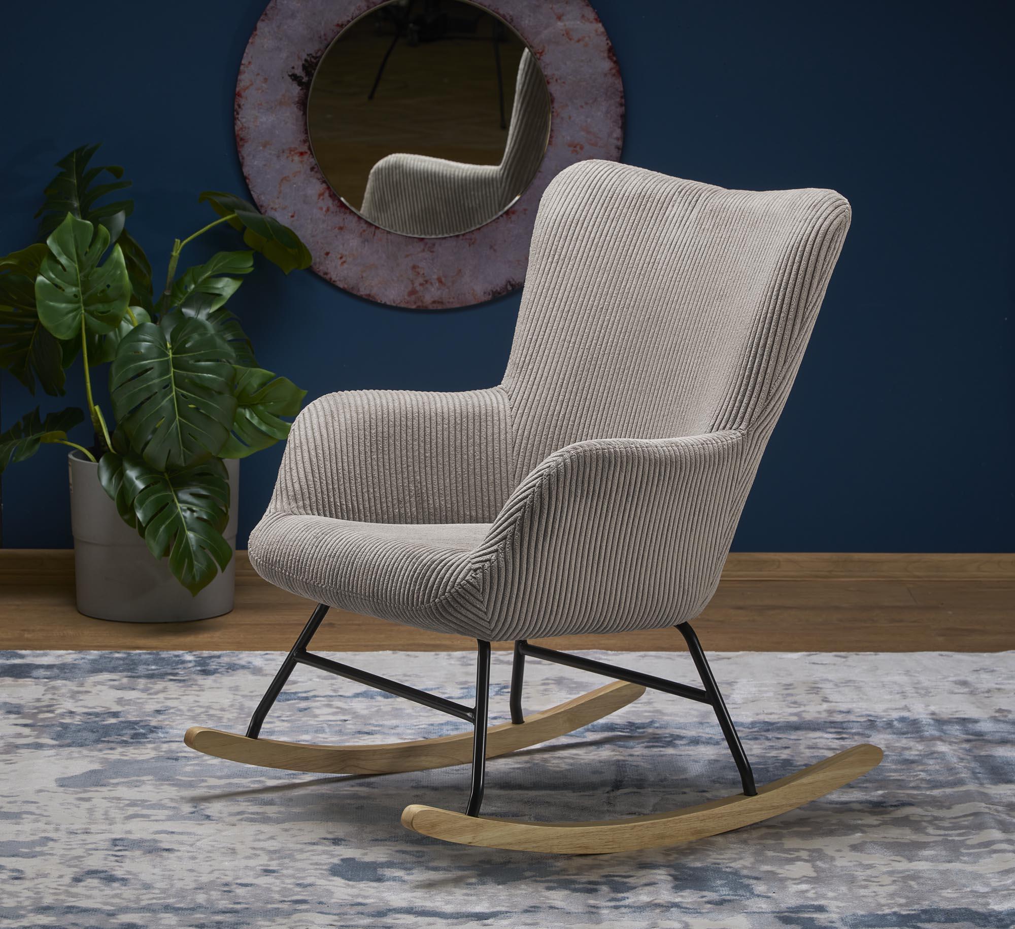 Wykonano z materiału: tkanina sztruks - HYPER / stal malowana proszkowo / drewno lite, kolor popielaty HYPER#08