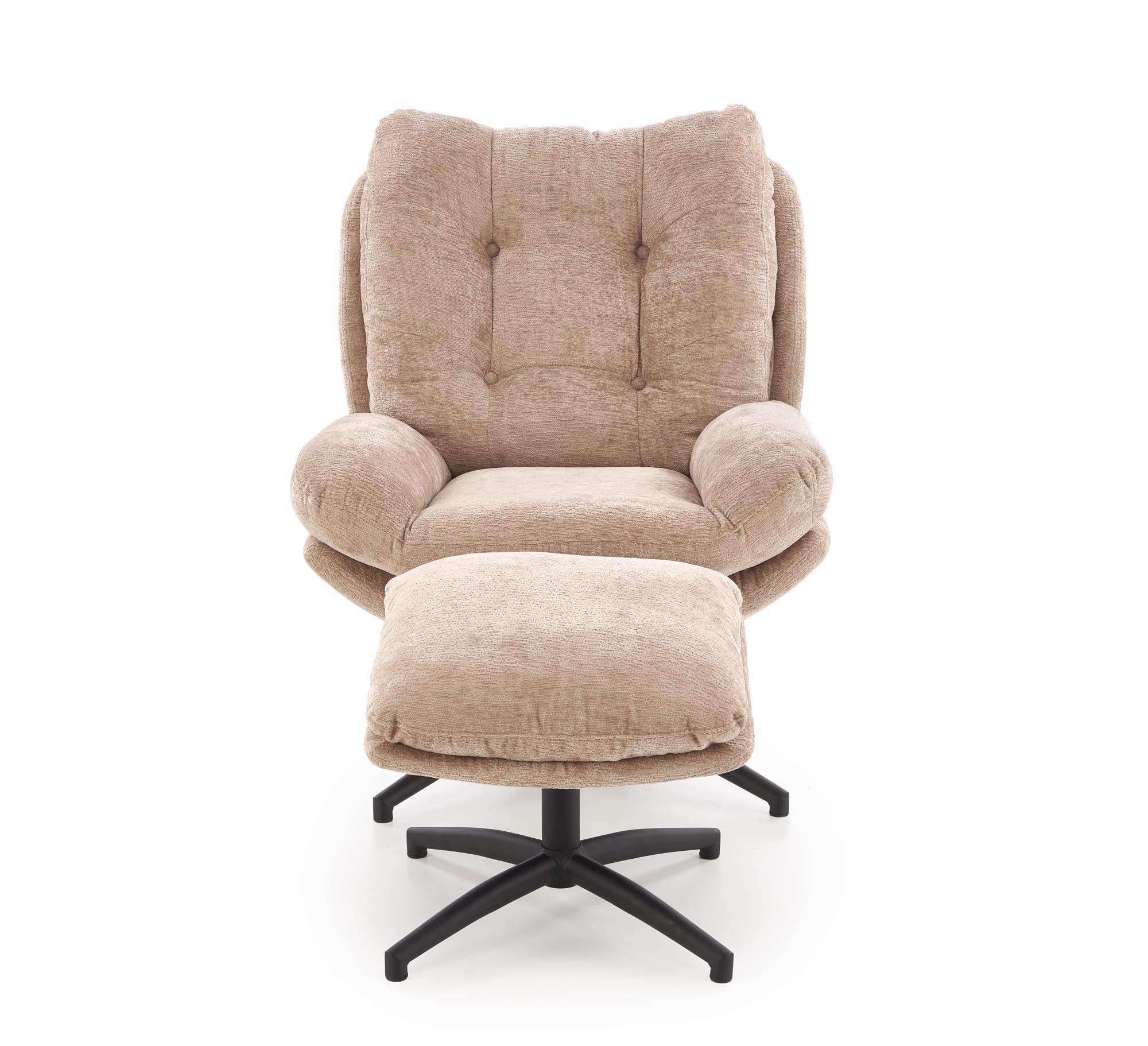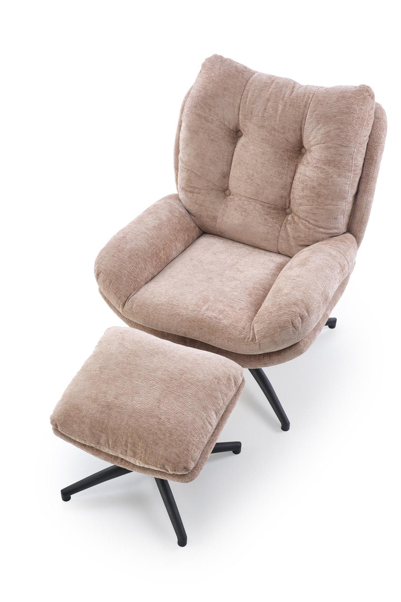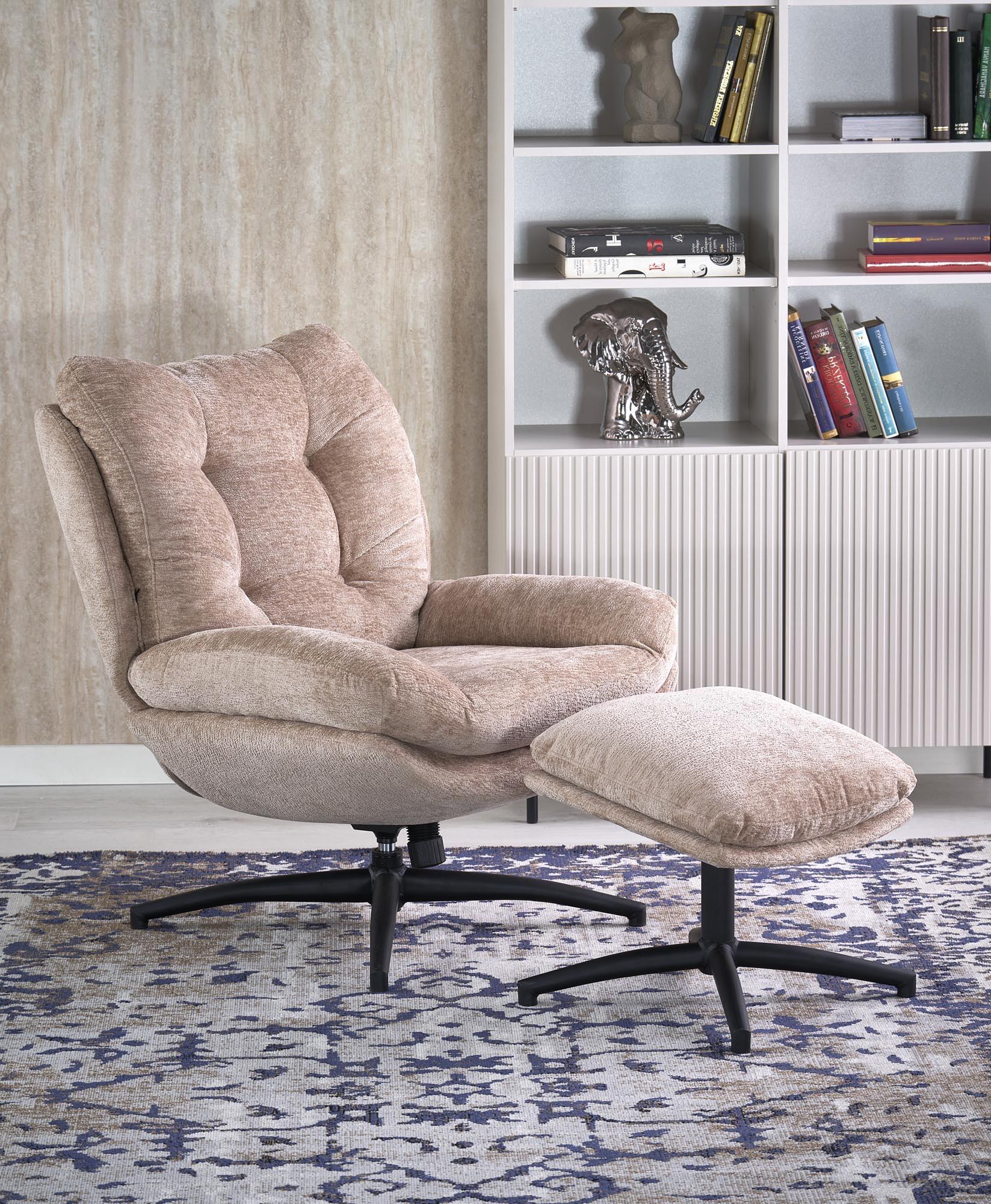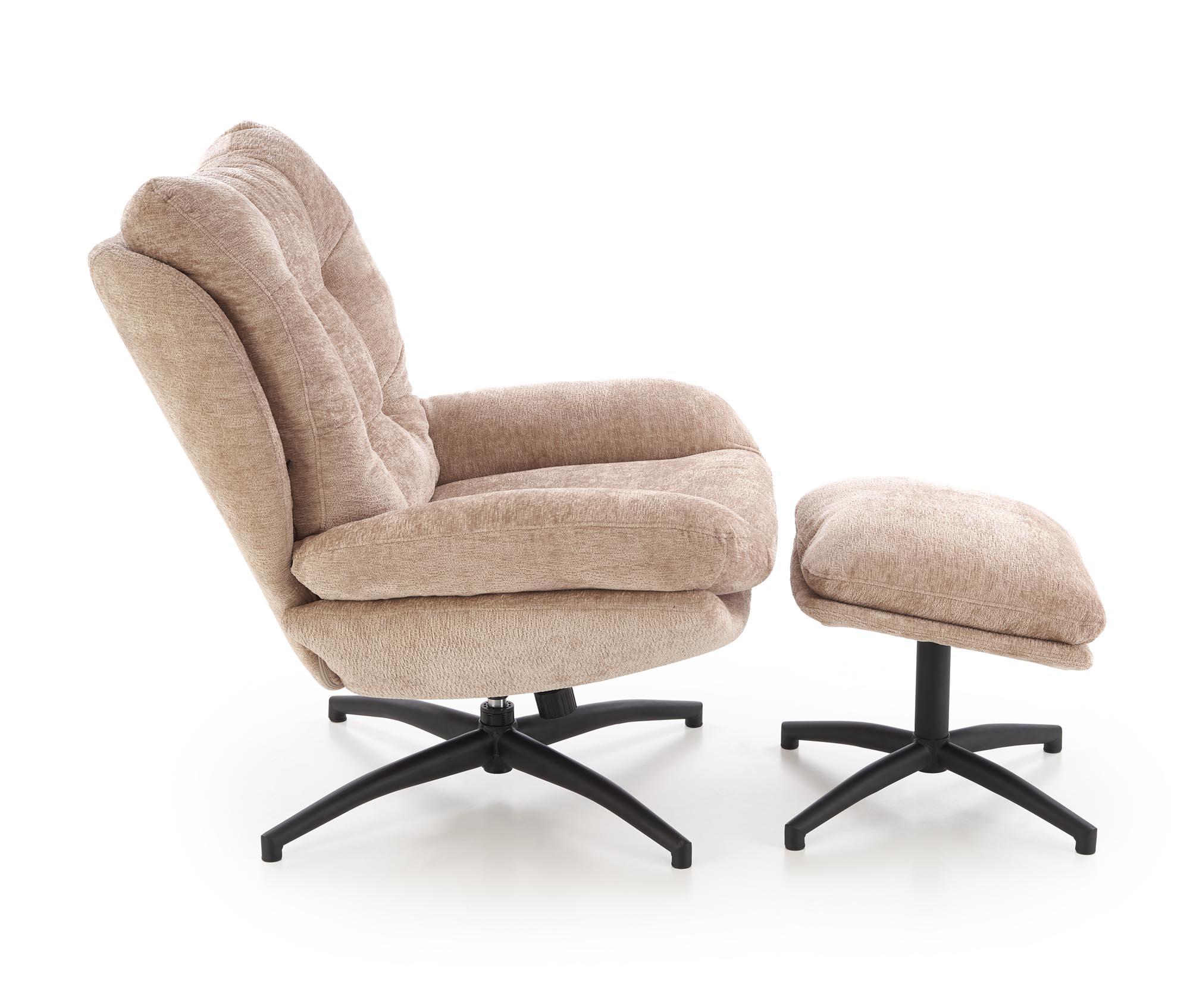 Fotel do salonu z podnóżkiem, obrotowe siedzisko, funkcja kołyski, kolor beżowy