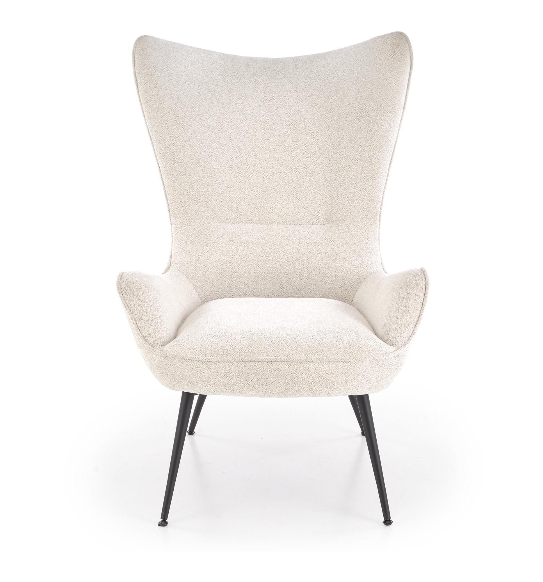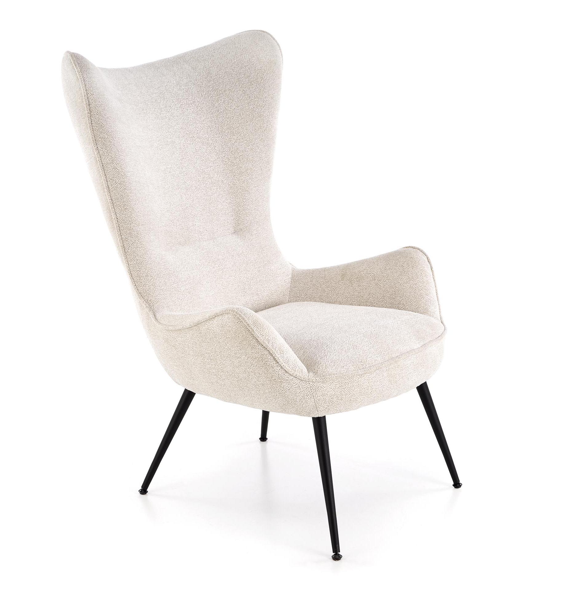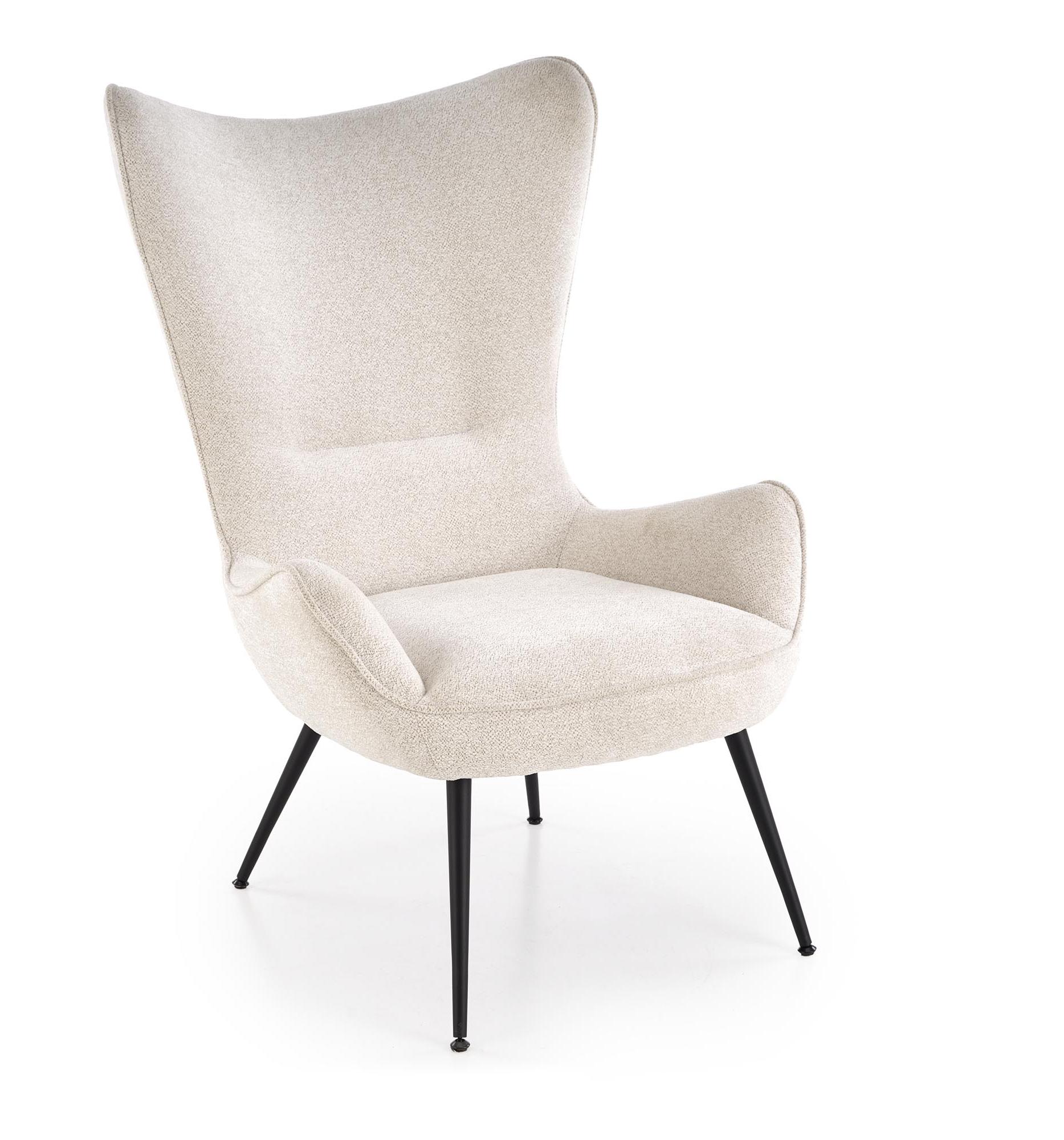 Strona główna » Meble » Fotele do salonu » Fotel do salonu z wysokim oparciem na czarnych nóżkach, kolor kremowy, tkanina RAVEN