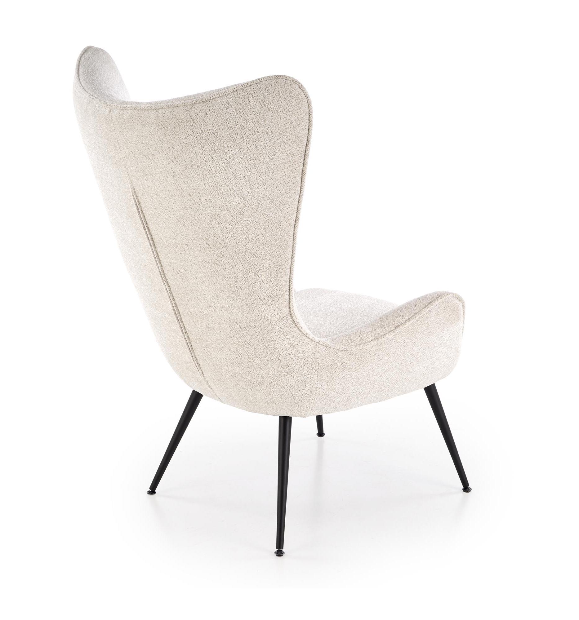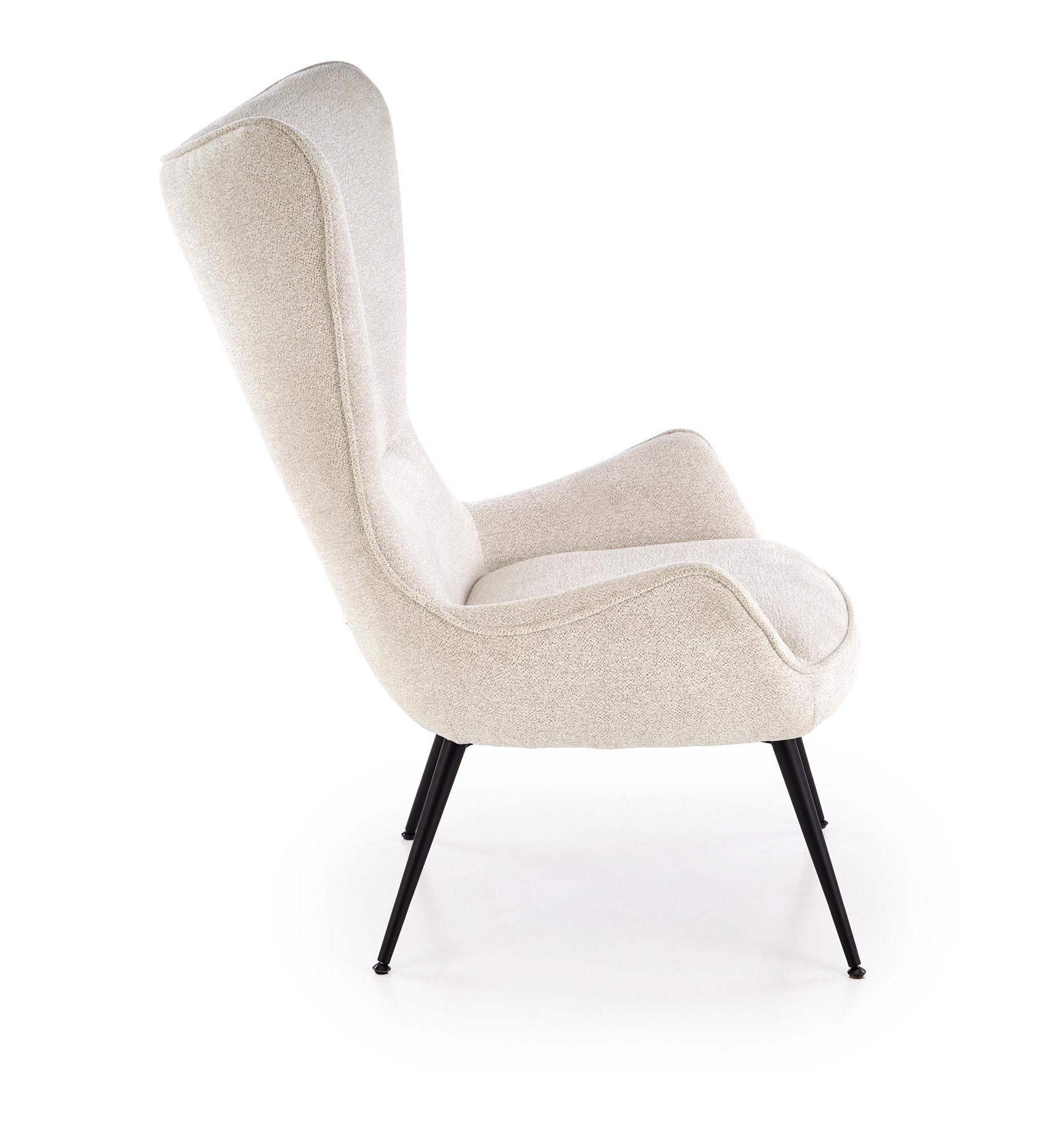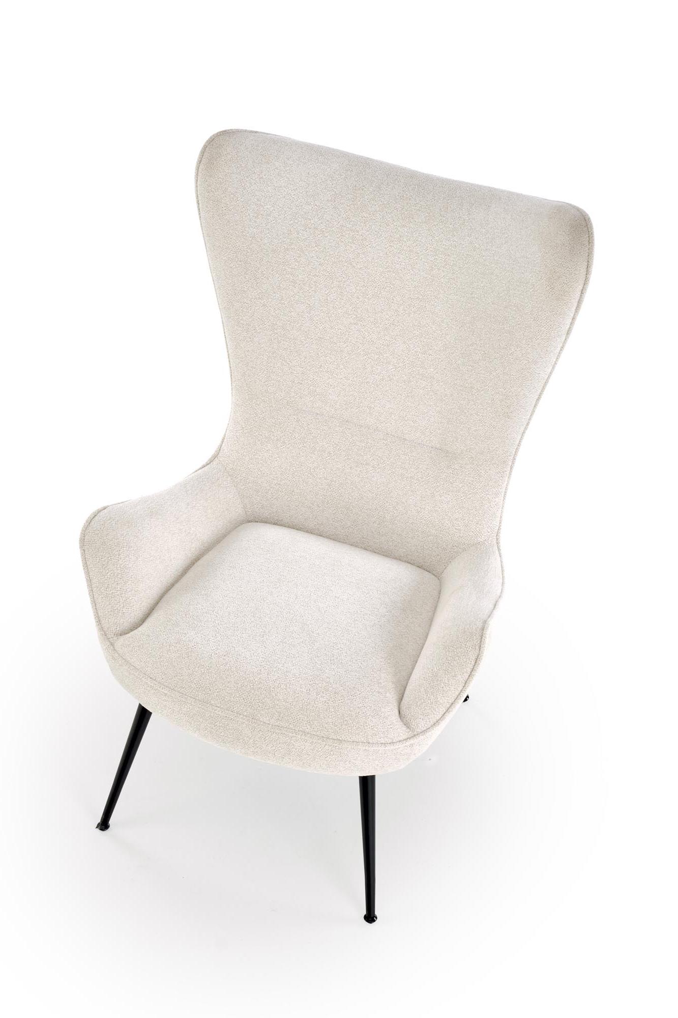 Strona główna » Meble » Fotele do salonu » Fotel do salonu z wysokim oparciem na czarnych nóżkach, kolor kremowy, tkanina RAVEN