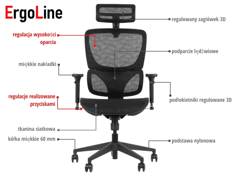 • oparcie regulowane na wysokość - tapicerowane tkaniną siatkową