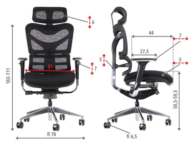 • oparcie regulowane na wysokość - tapicerowane tkaniną siatkową