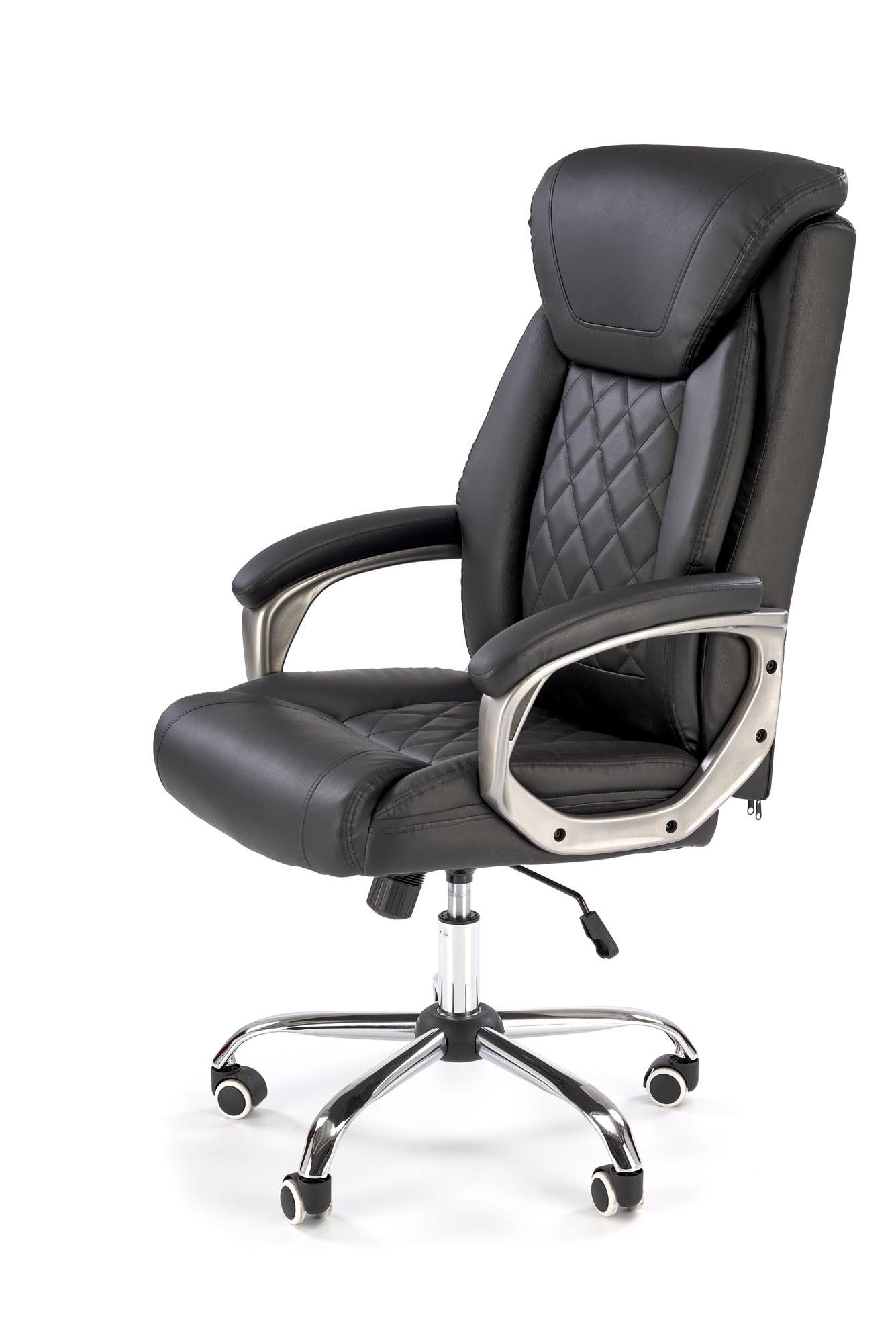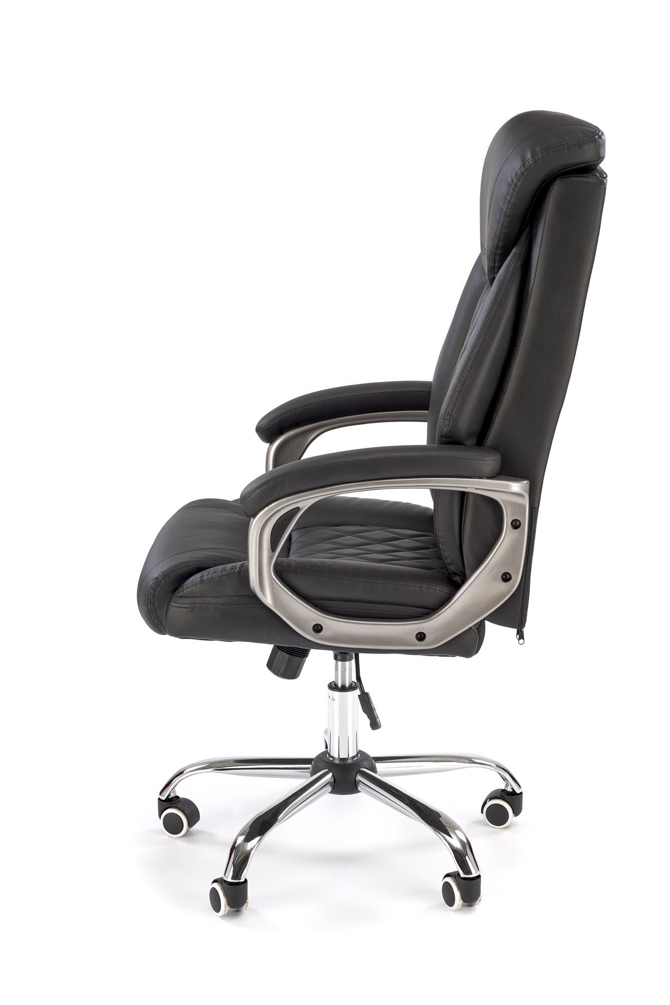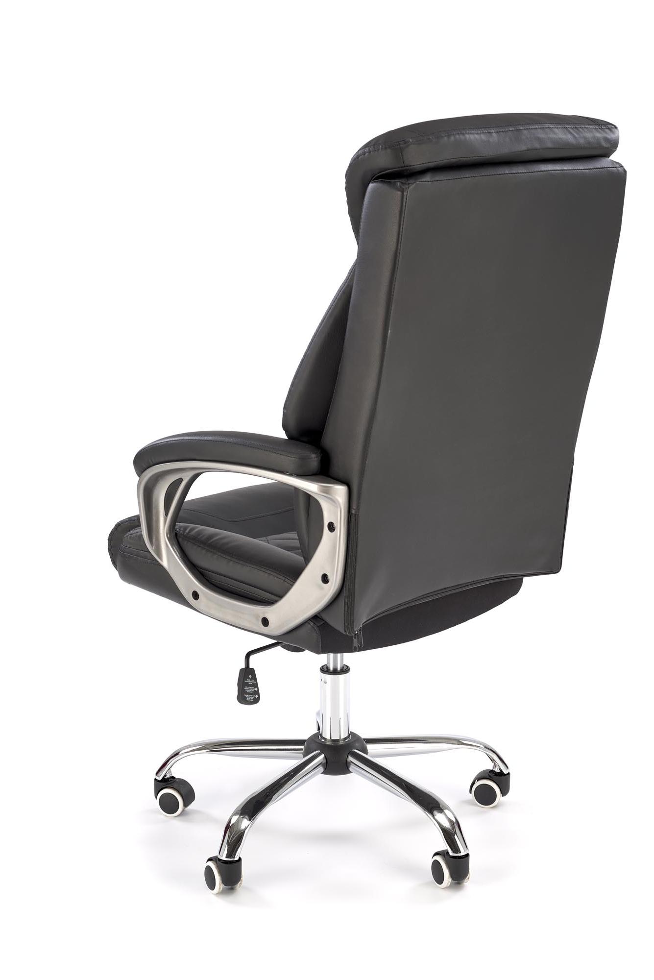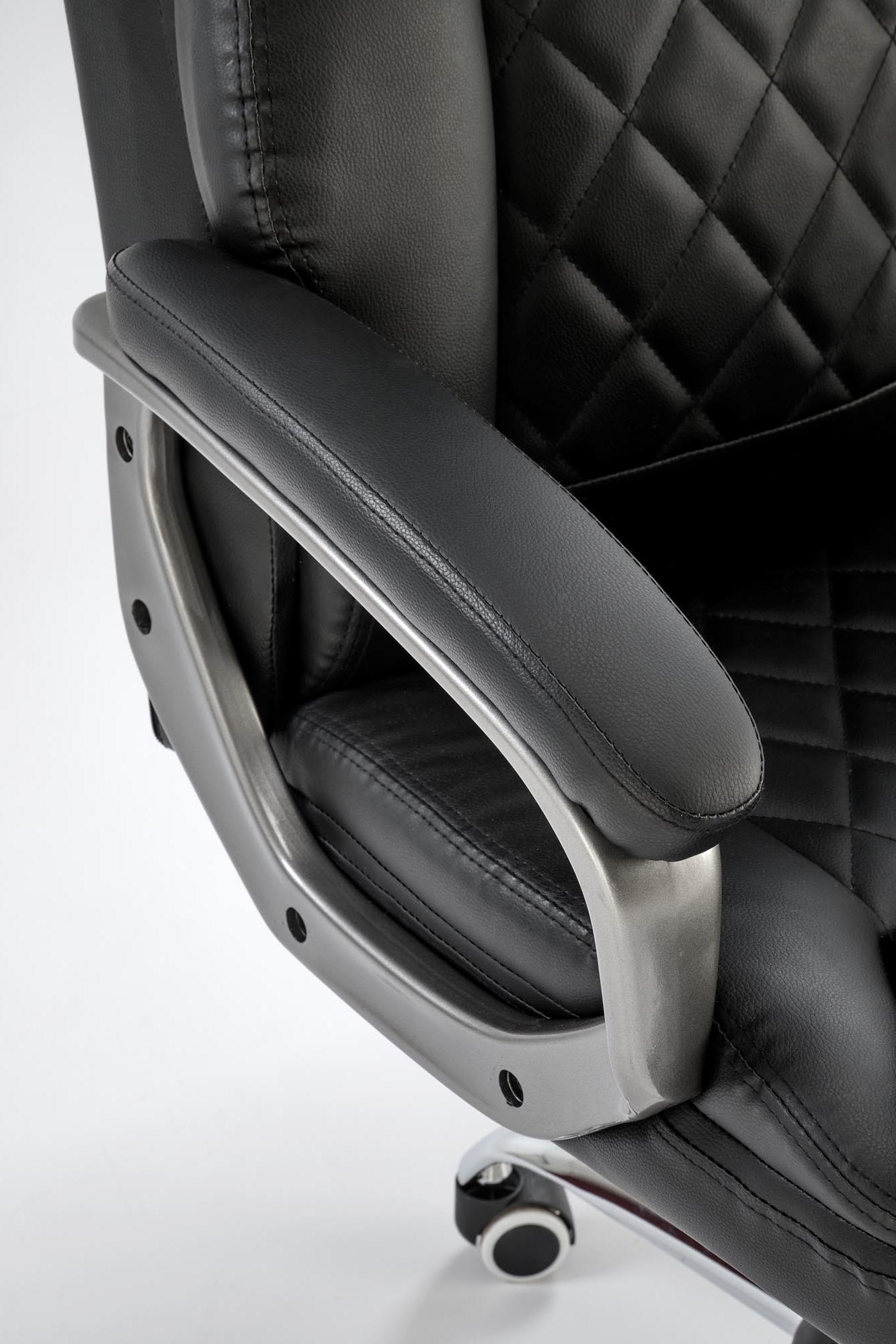 Strona główna » Meble » Fotele do biurka » Fotel gabinetowy kolor czarny z miękkim oparciem i podłokietnikami na chromowanej podstawie, eko skóra