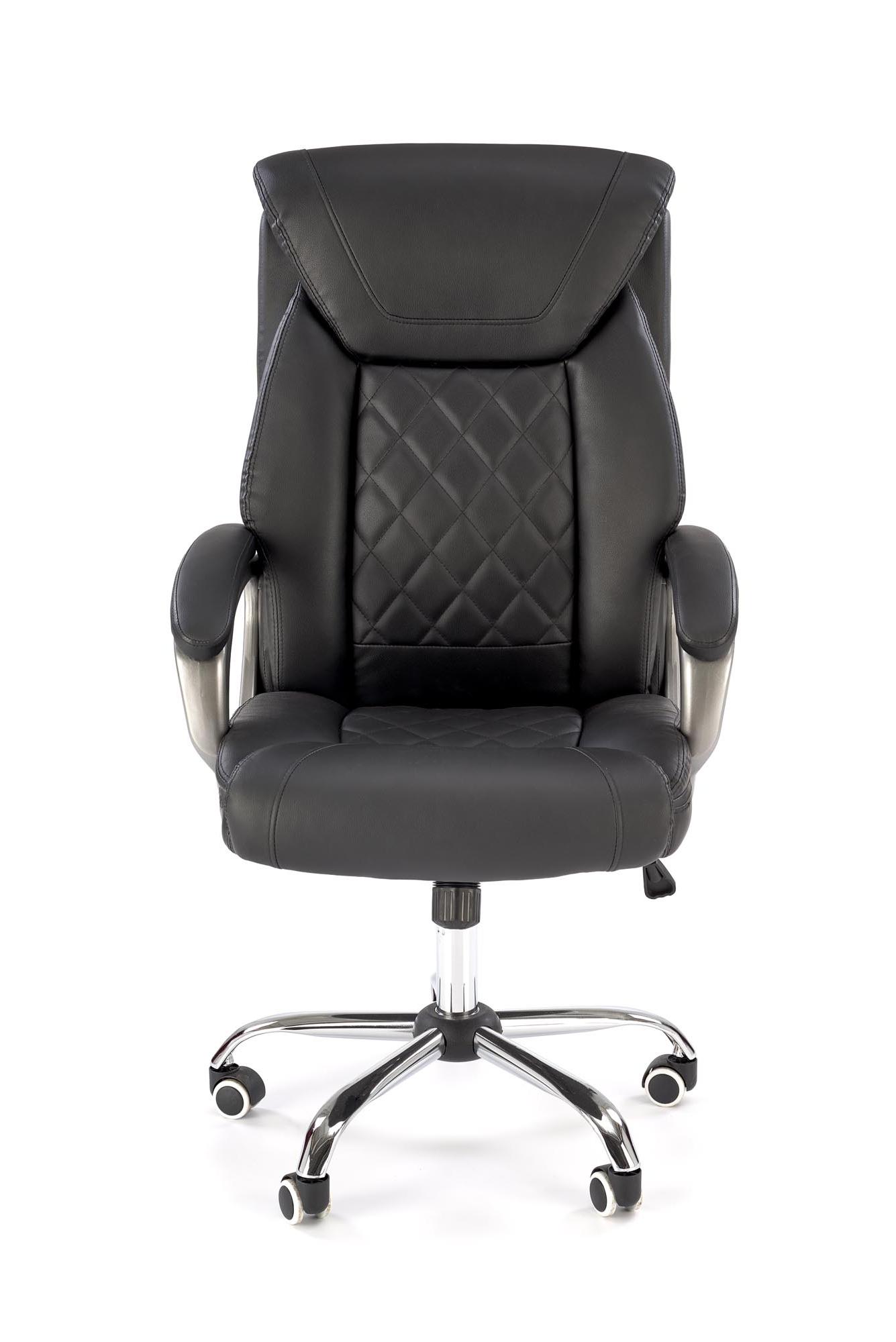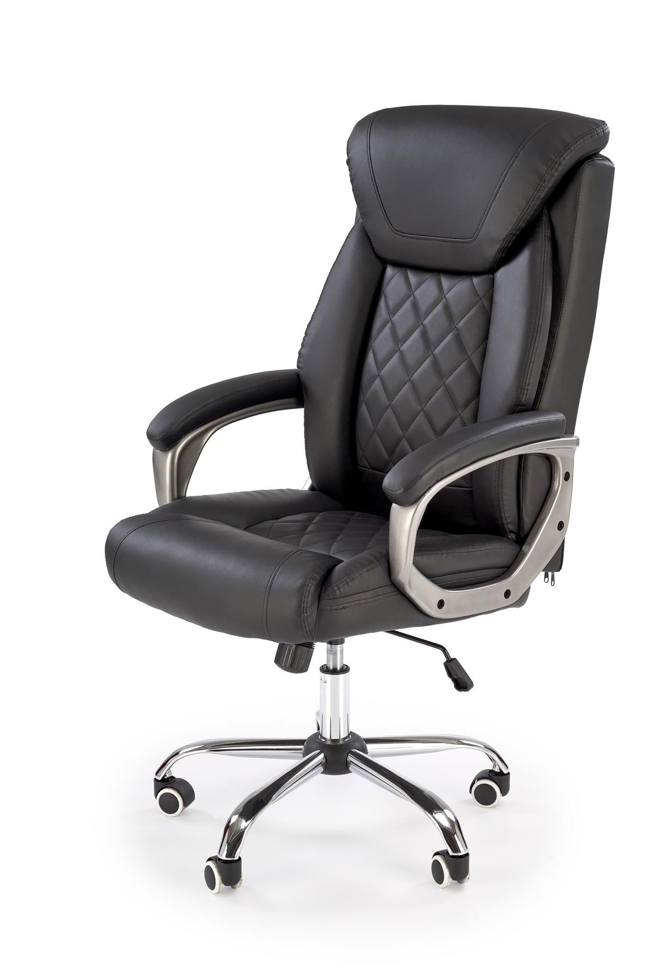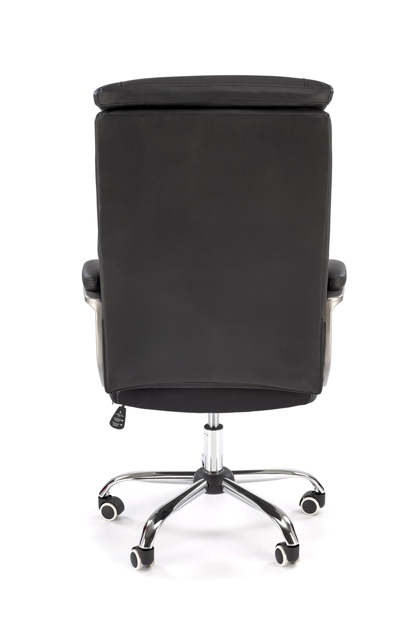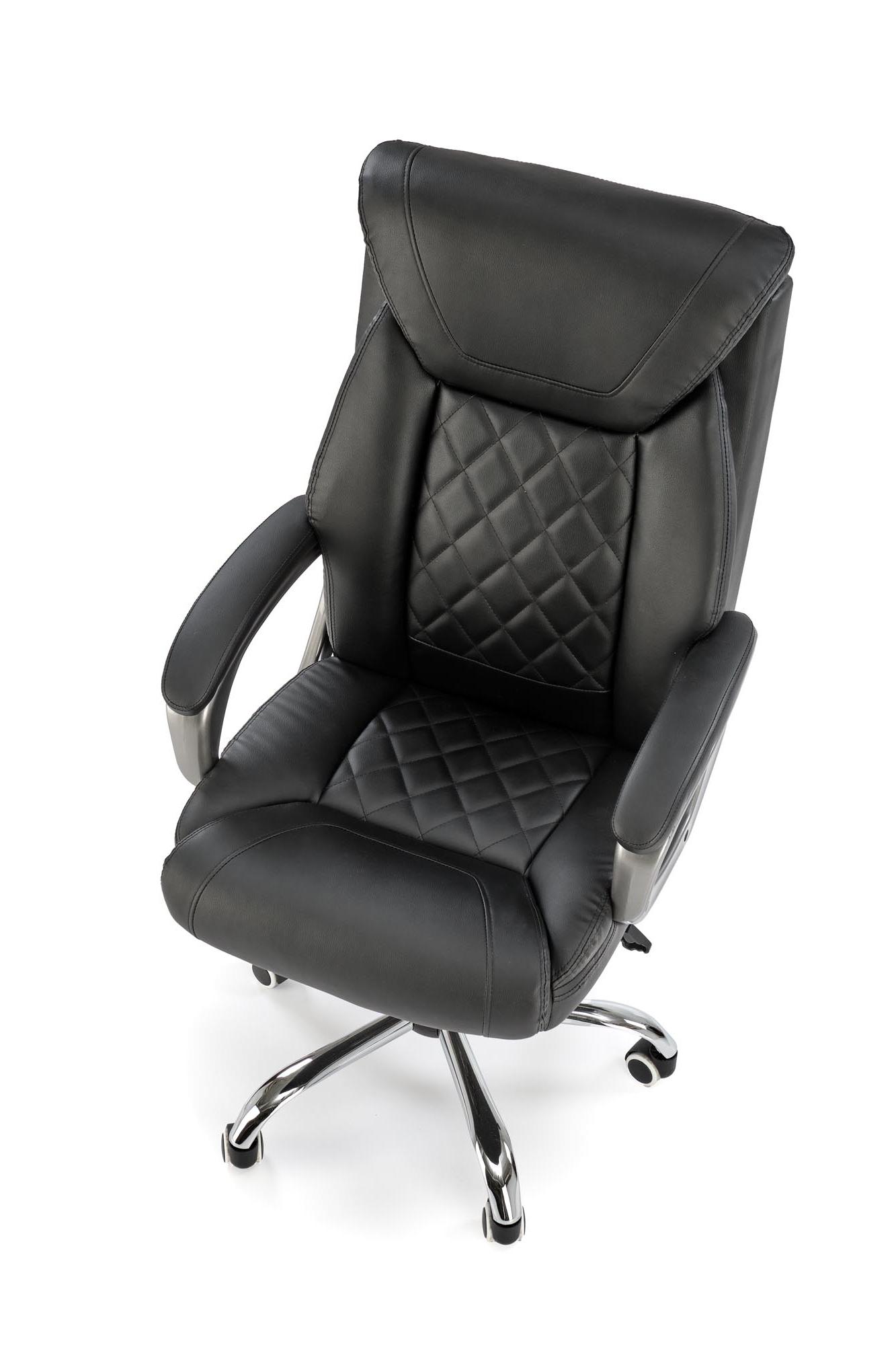Strona główna » Meble » Fotele do biurka » Fotel gabinetowy kolor czarny z miękkim oparciem i podłokietnikami na chromowanej podstawie, eko skóra