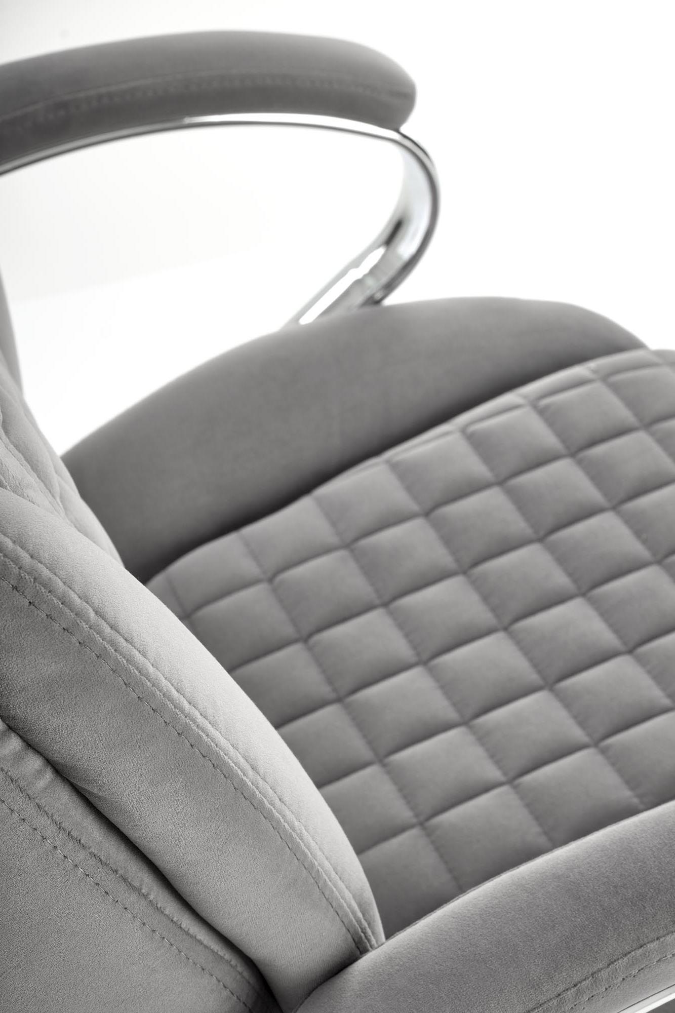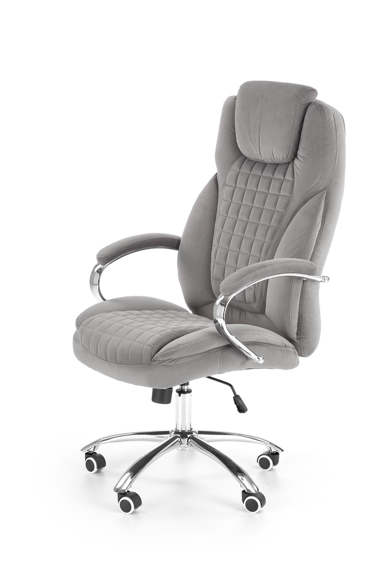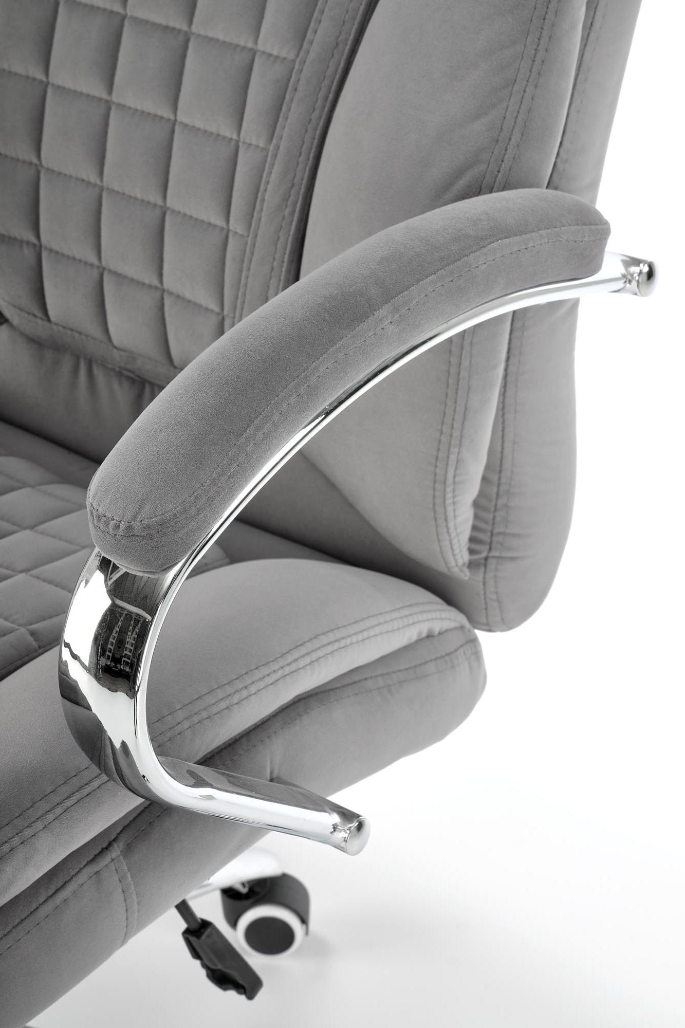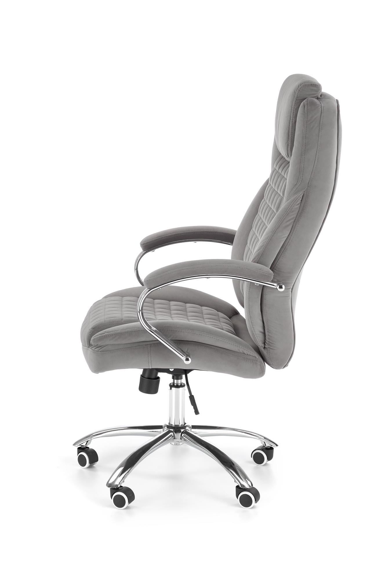 Fotel gabinetowy kolor popielaty z podłokietnikami na chromowanej podstawie, kółka kauczukowe, tkanina velvet