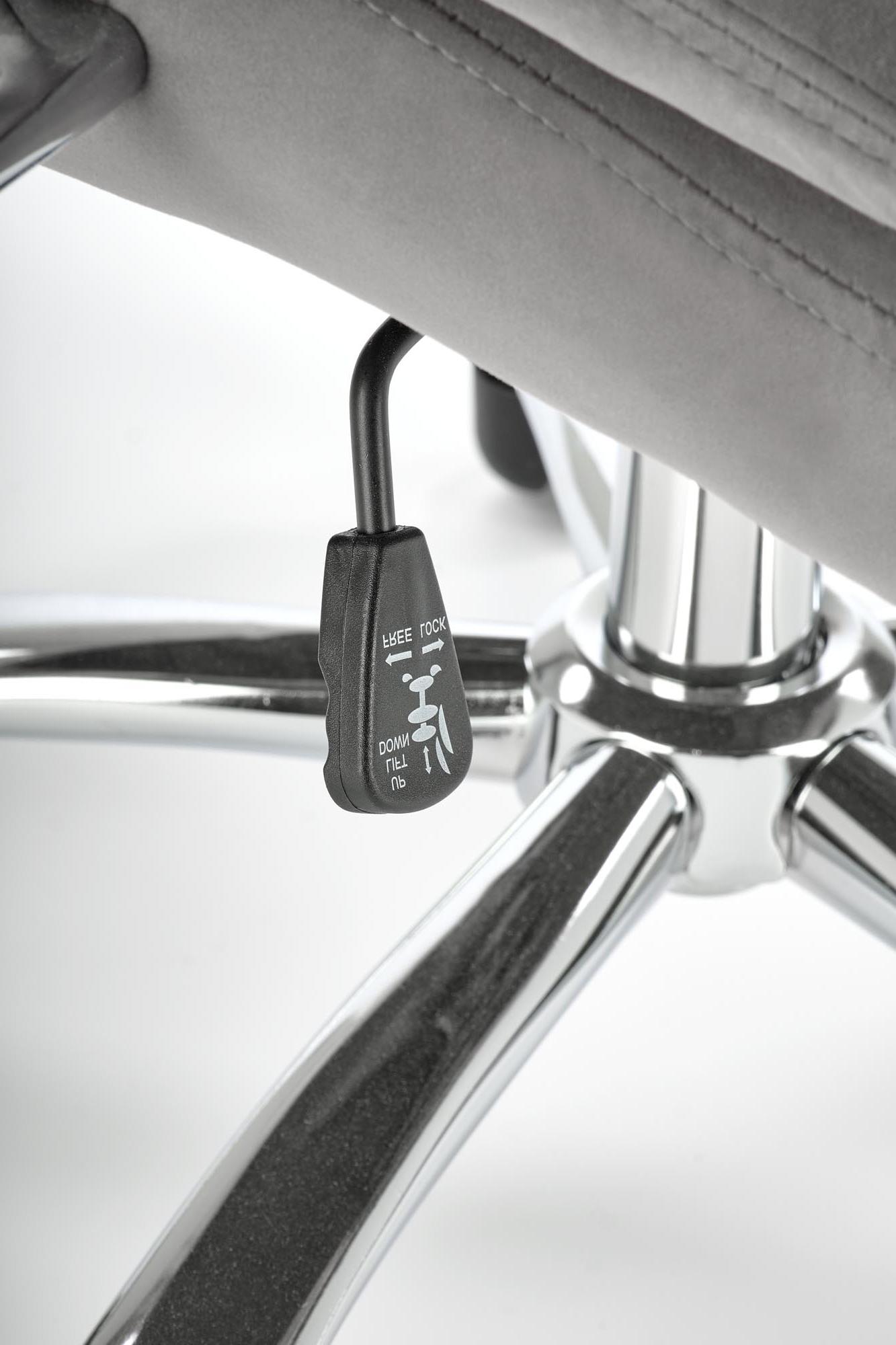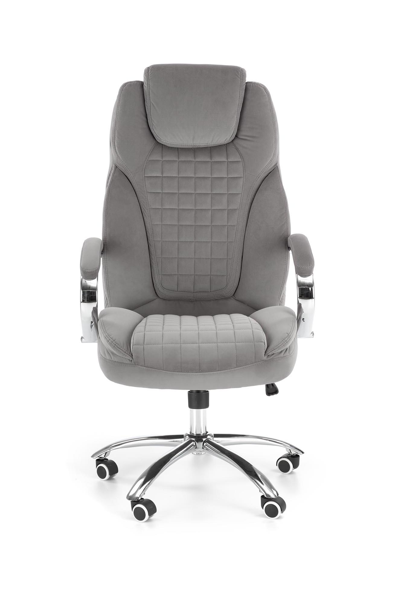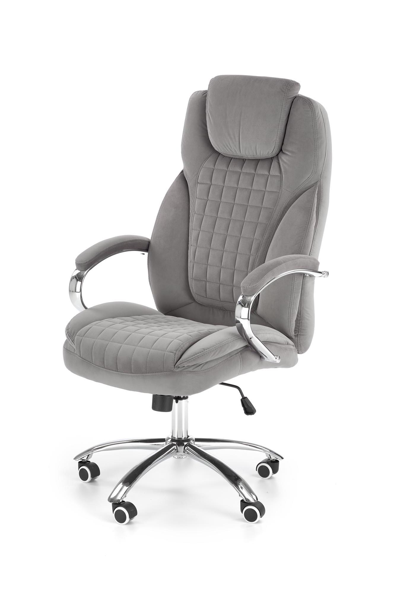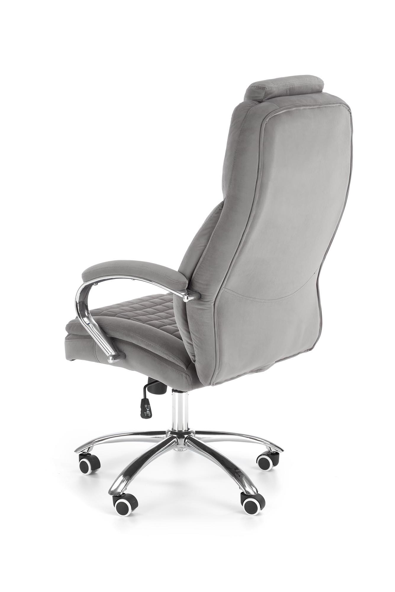 Fotel gabinetowy kolor popielaty z podłokietnikami na chromowanej podstawie, kółka kauczukowe, tkanina velvet