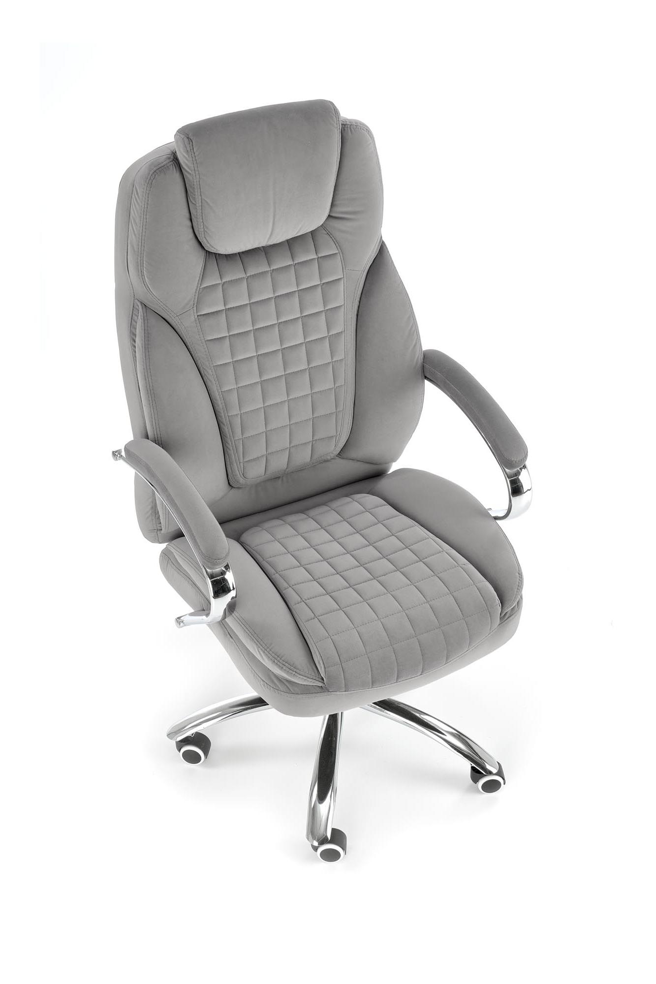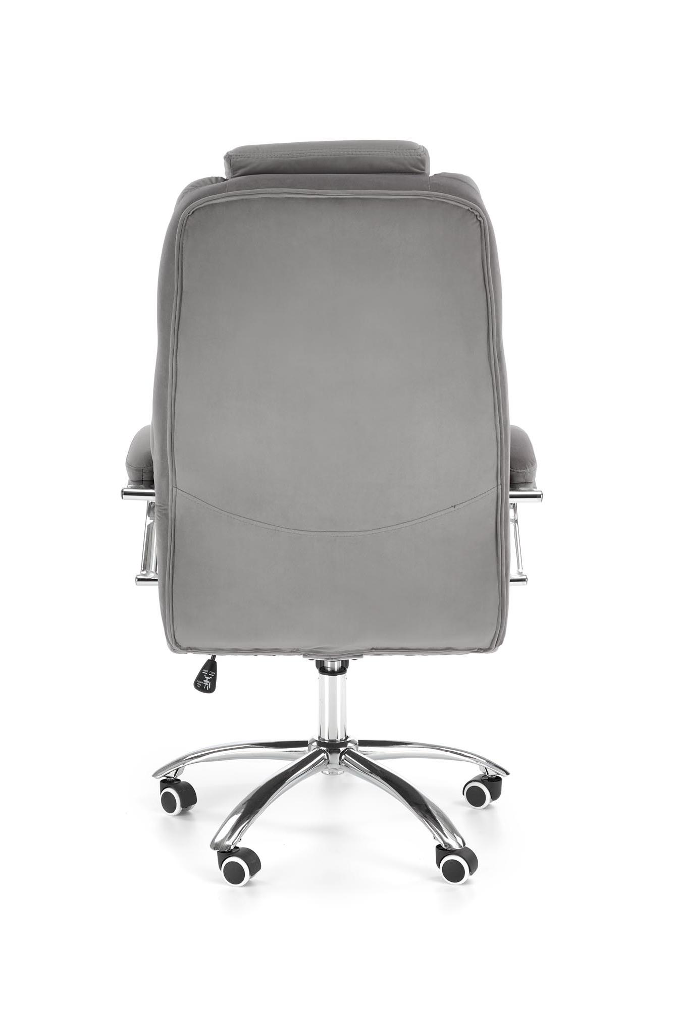 Strona główna » Meble » Fotele do biurka » Fotel gabinetowy kolor popielaty z podłokietnikami na chromowanej podstawie, kółka kauczukowe, tkanina velvet