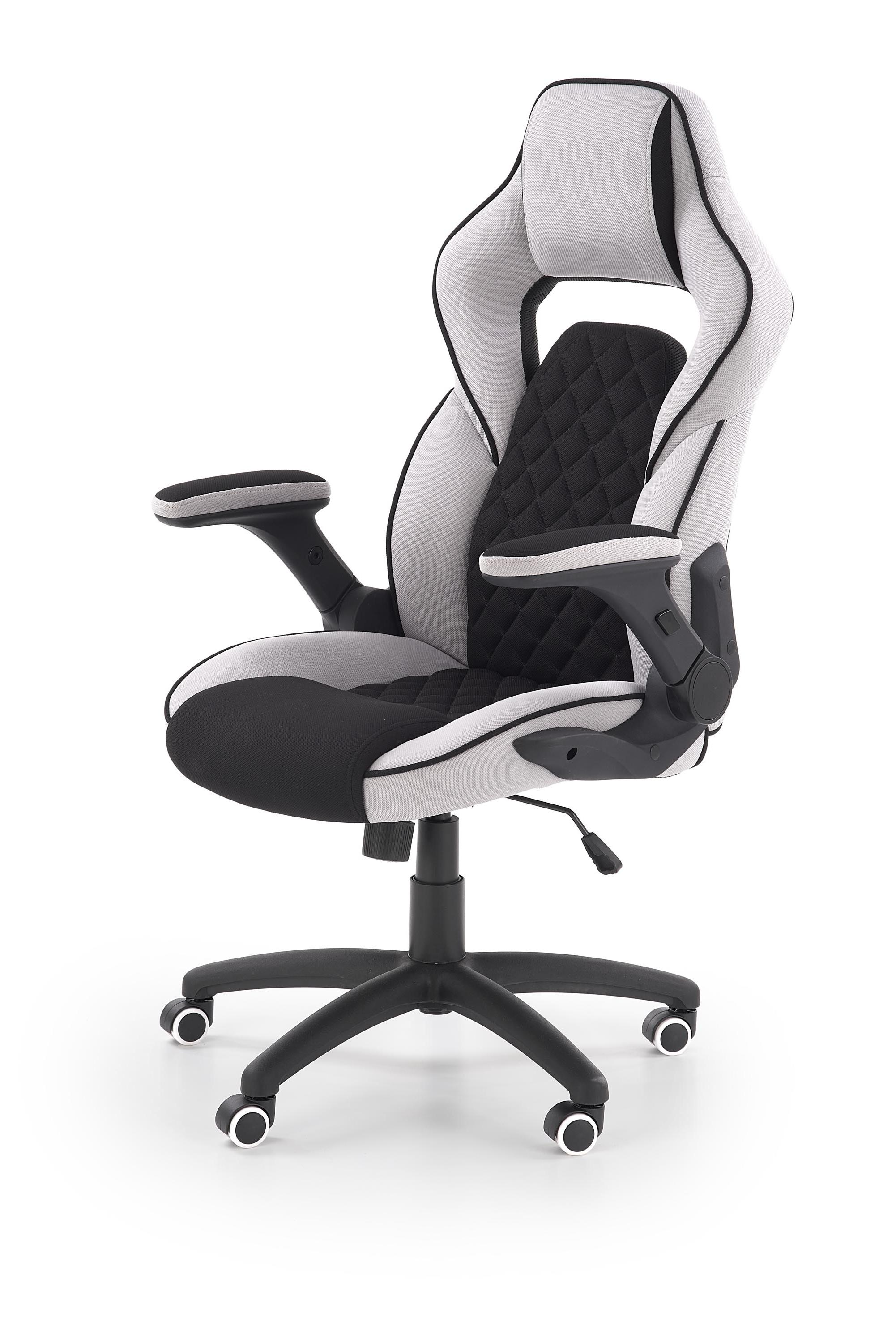 Fotel obrotowy wykonano z materiału: czarno - popielaty