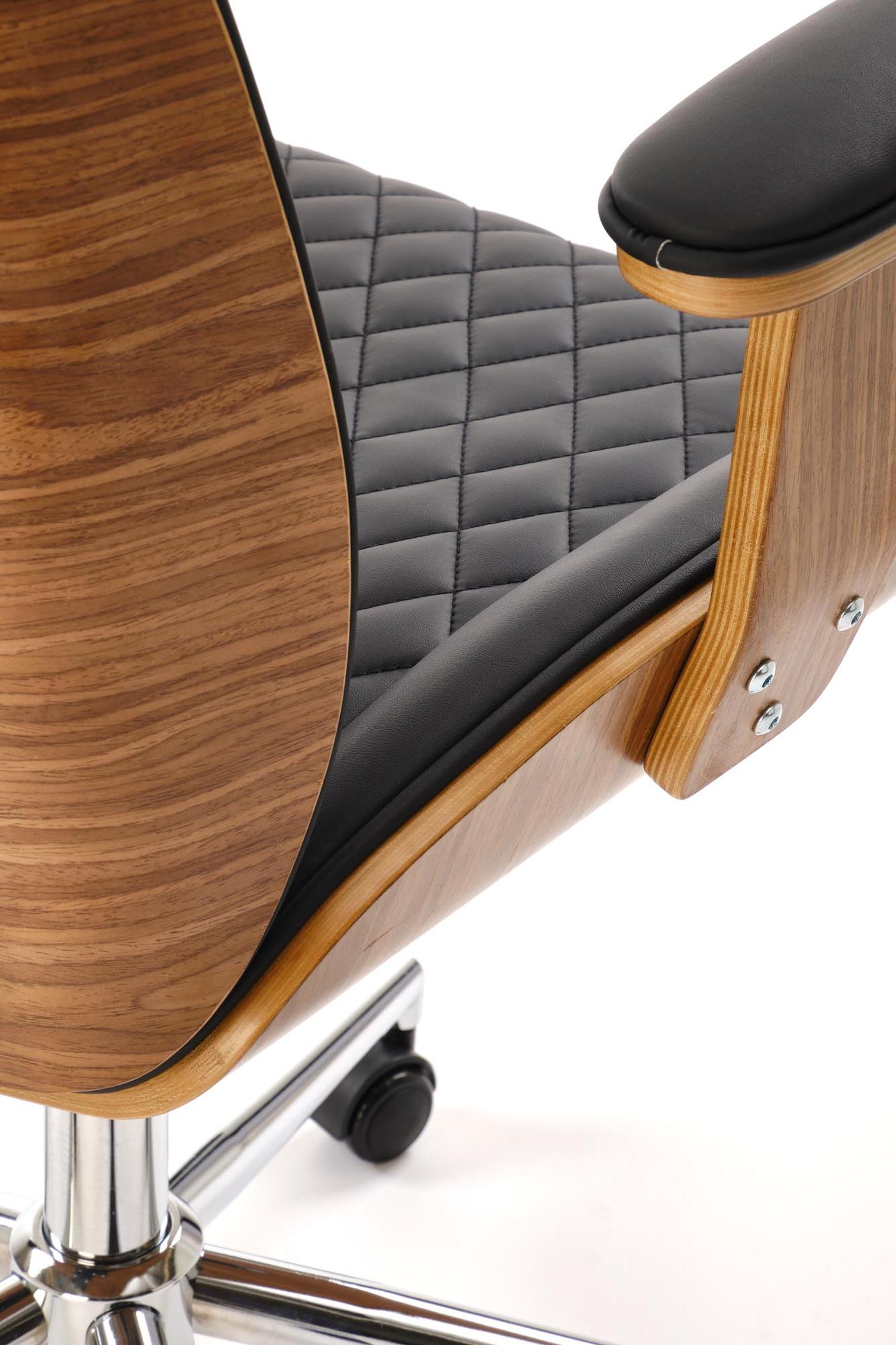 Fotel gabinetowy obrotowy klasyczny nowoczesny, kolor czarny, orzechowy, eko skóra, sklejka gięta, kółka kauczukowe