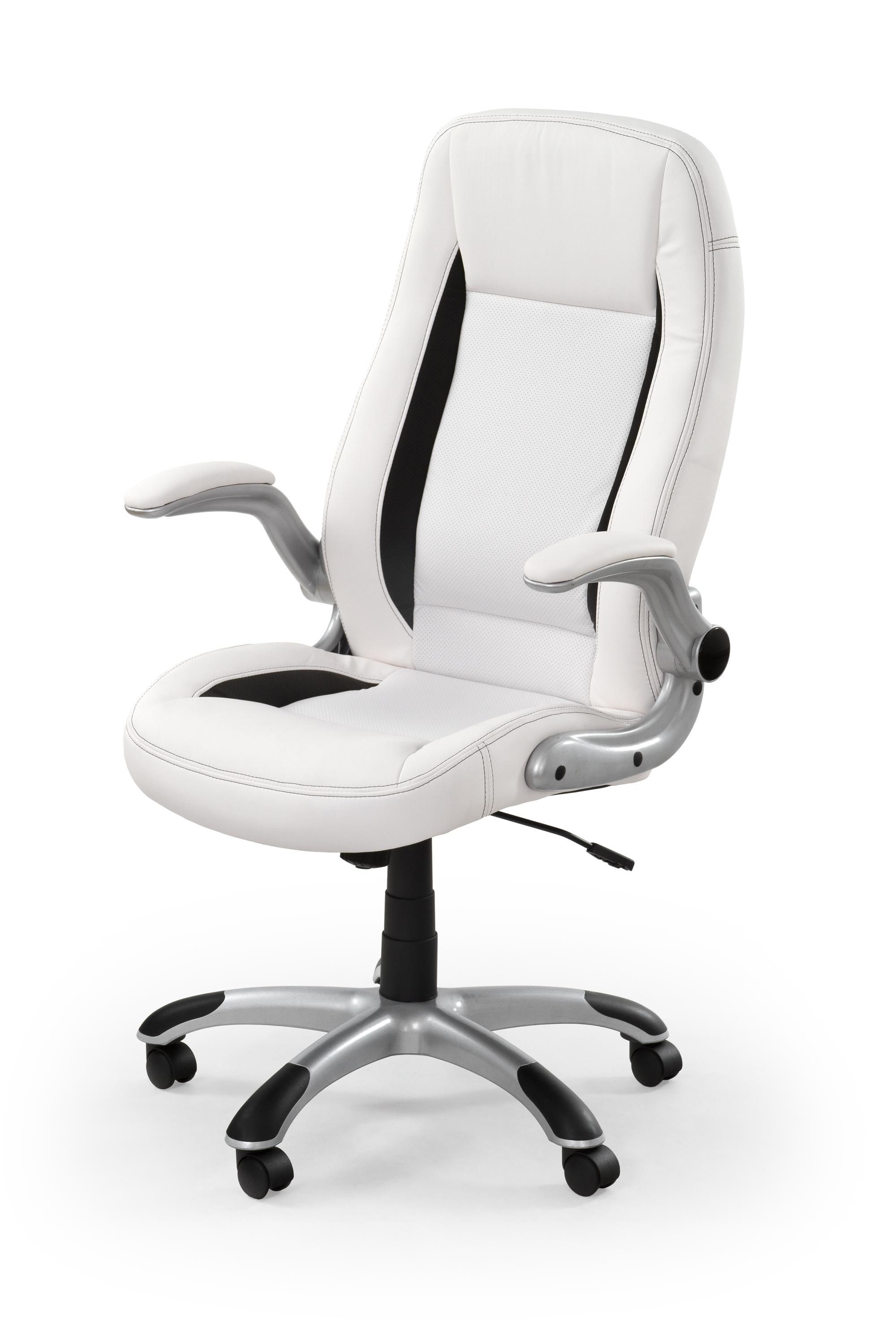 Fotel obrotowy wykonano z materiału: eco skóra perforowana, kolor biały