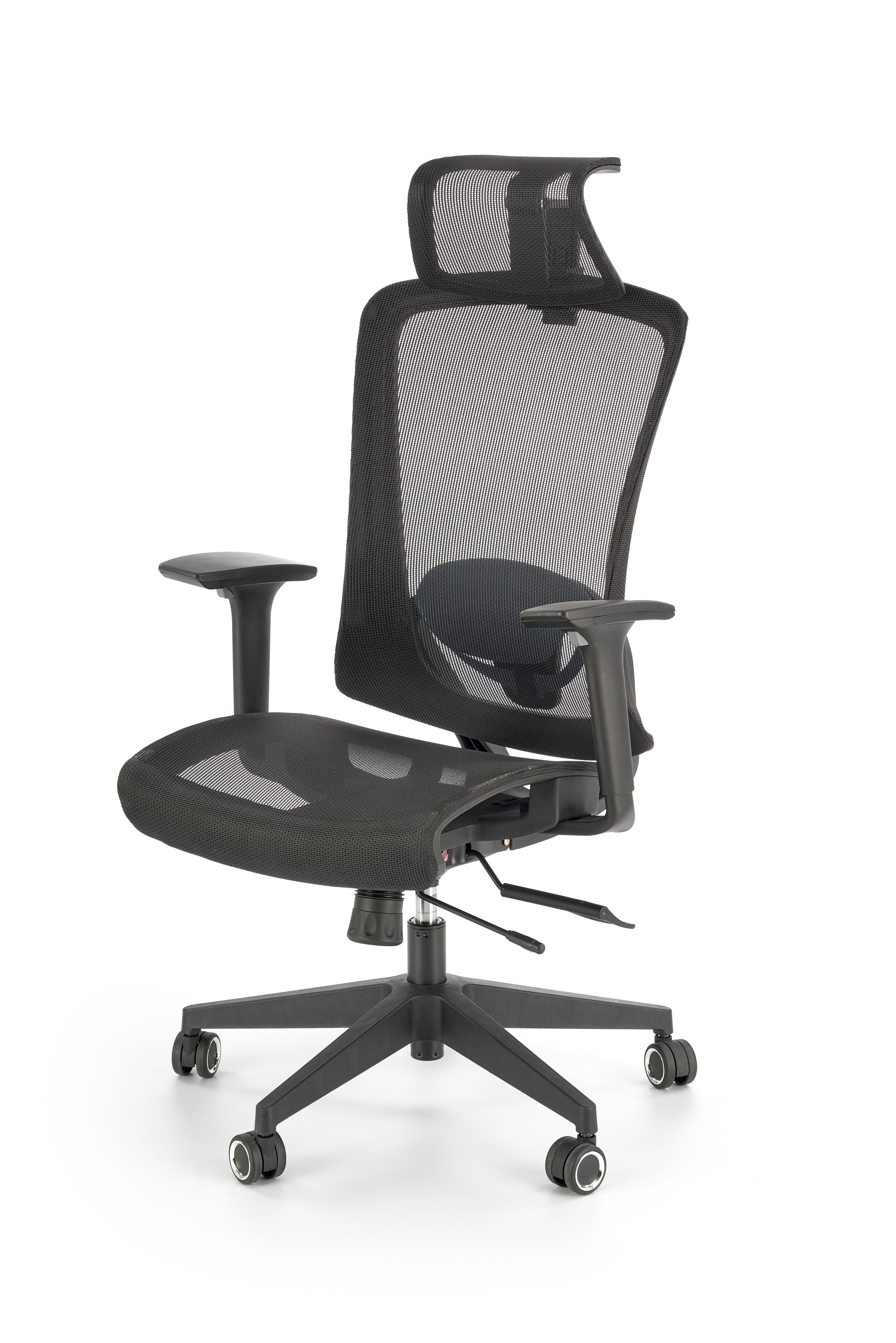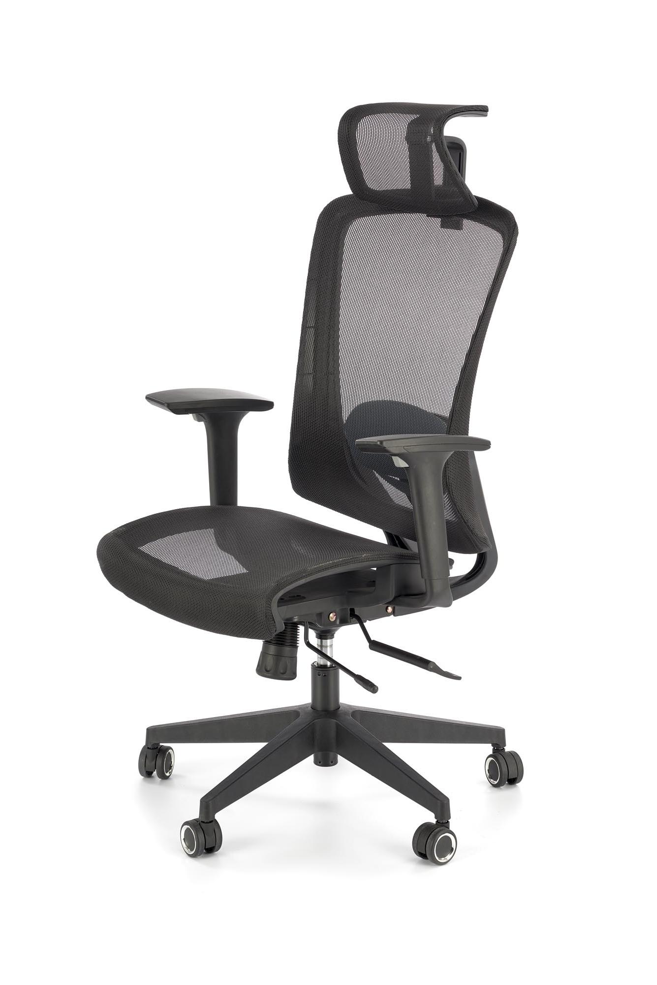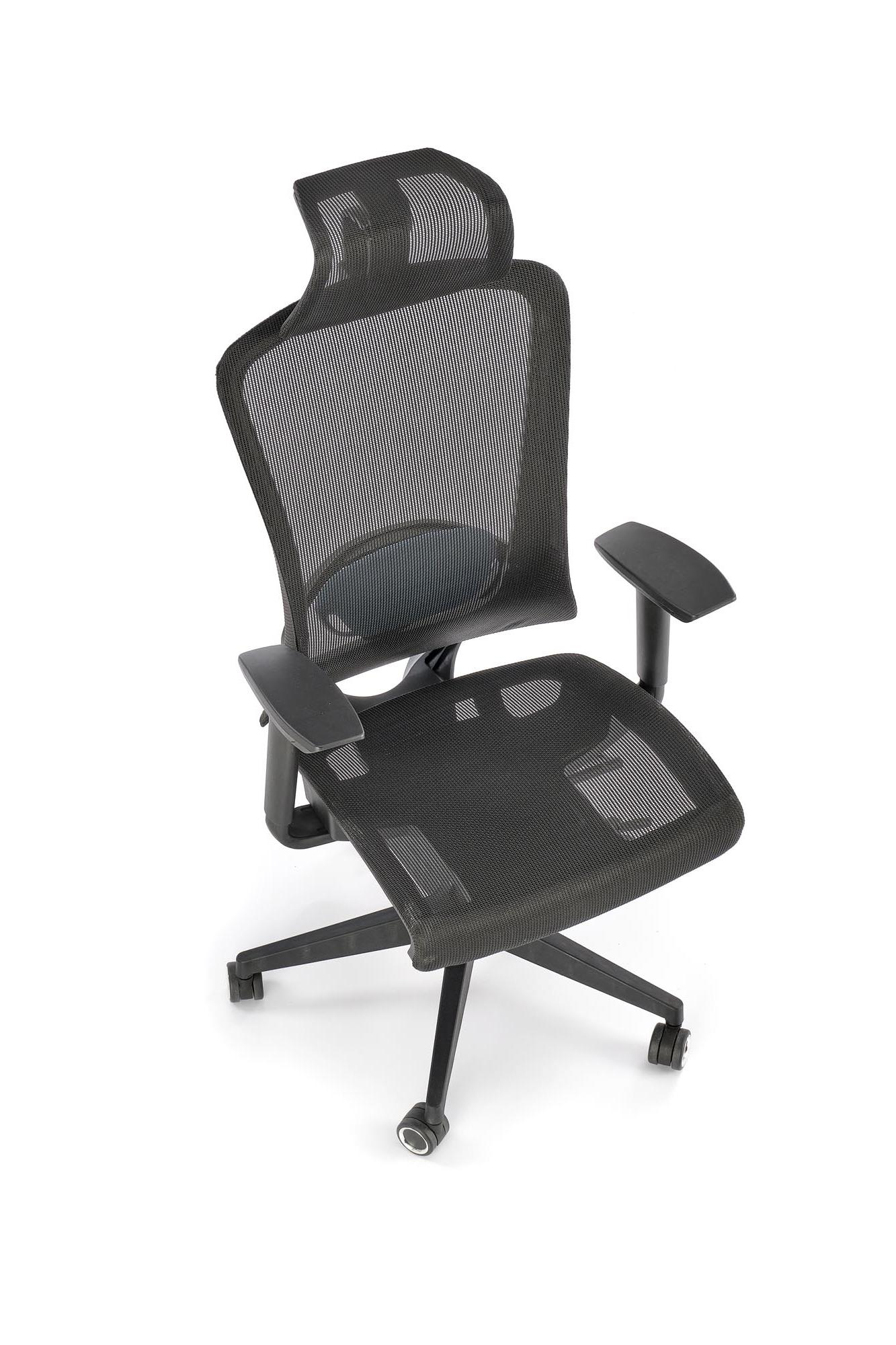 Fotel gabinetowy z siatkowym oparciem zagłówkiem i siedziskiem, kolorze czarnym