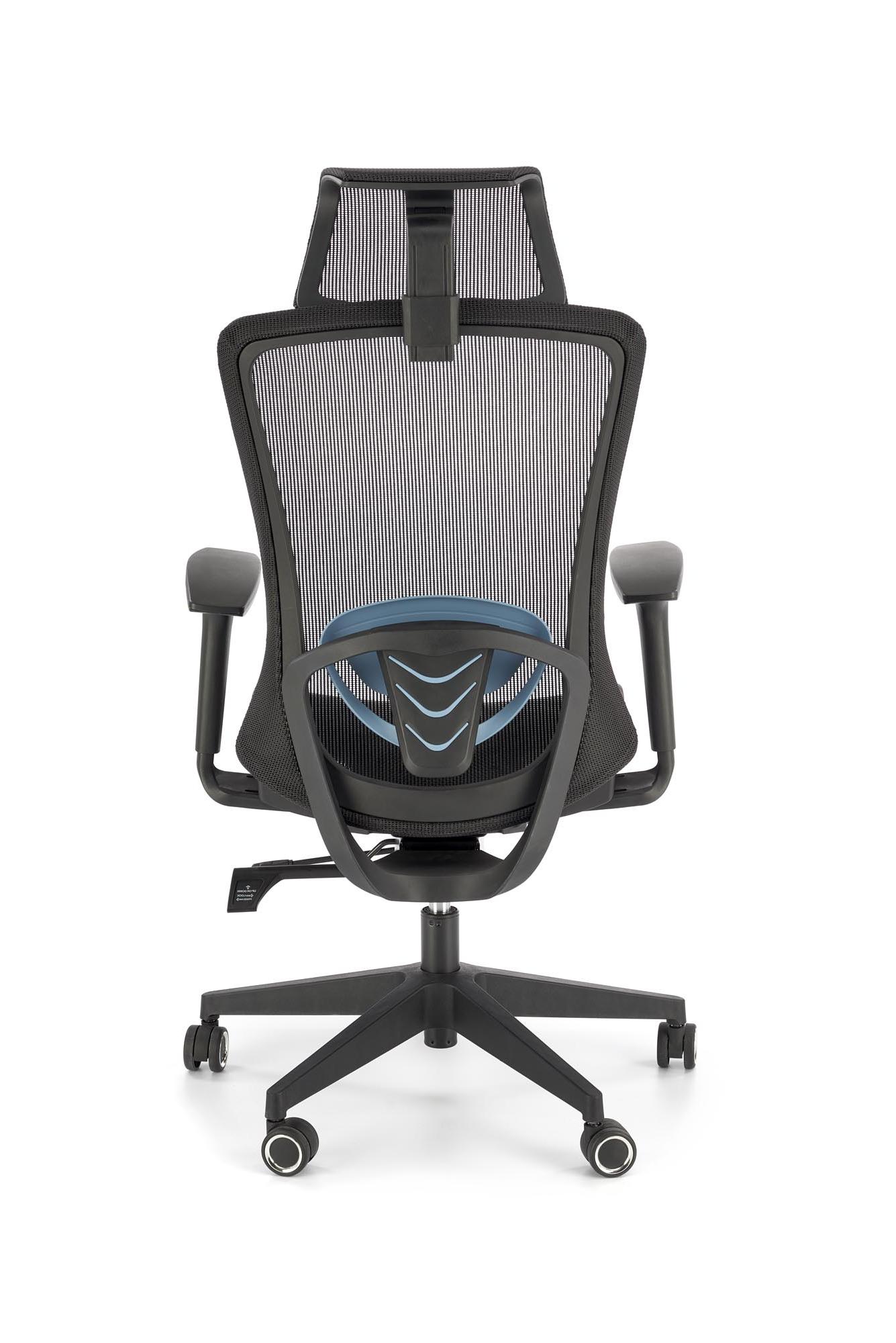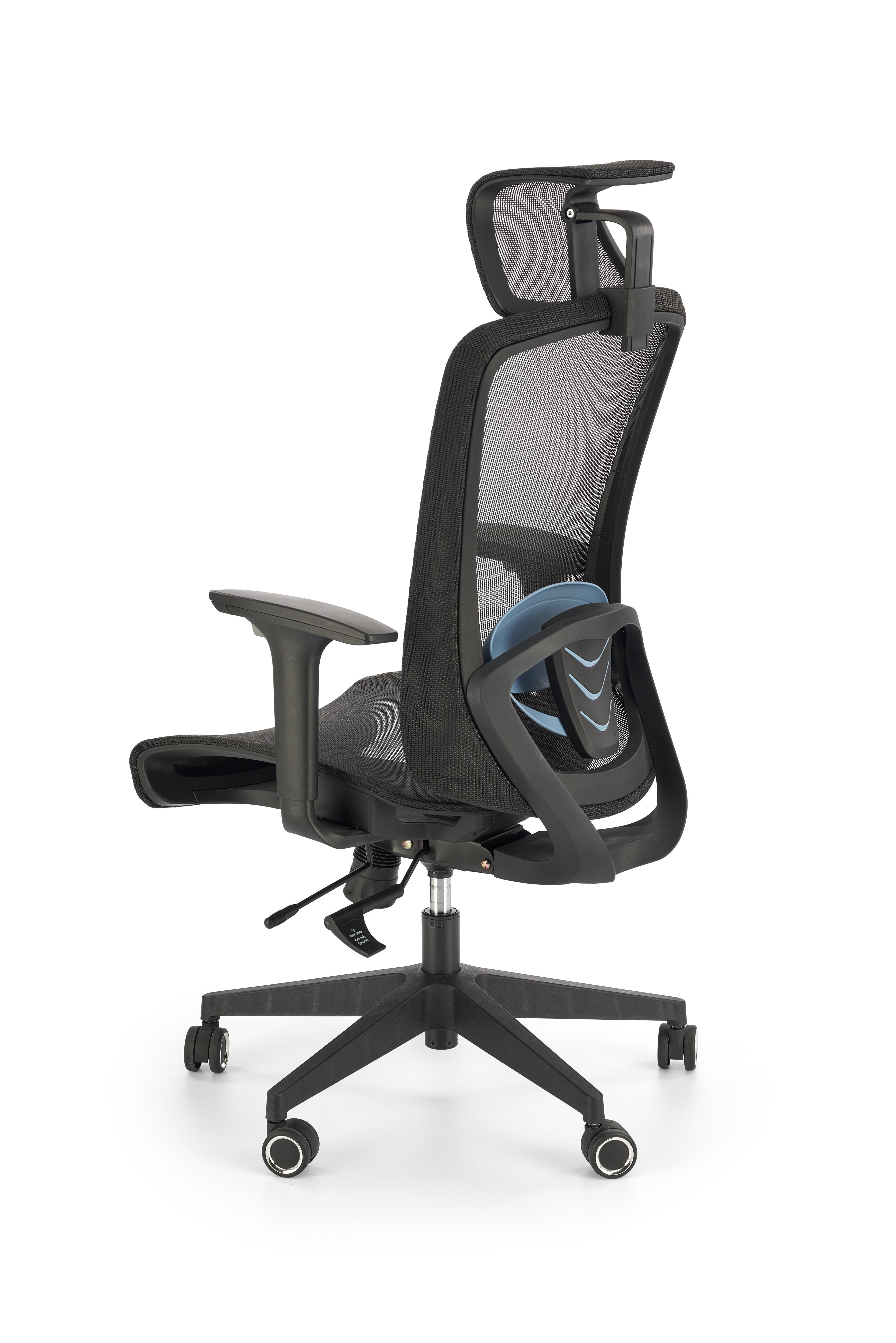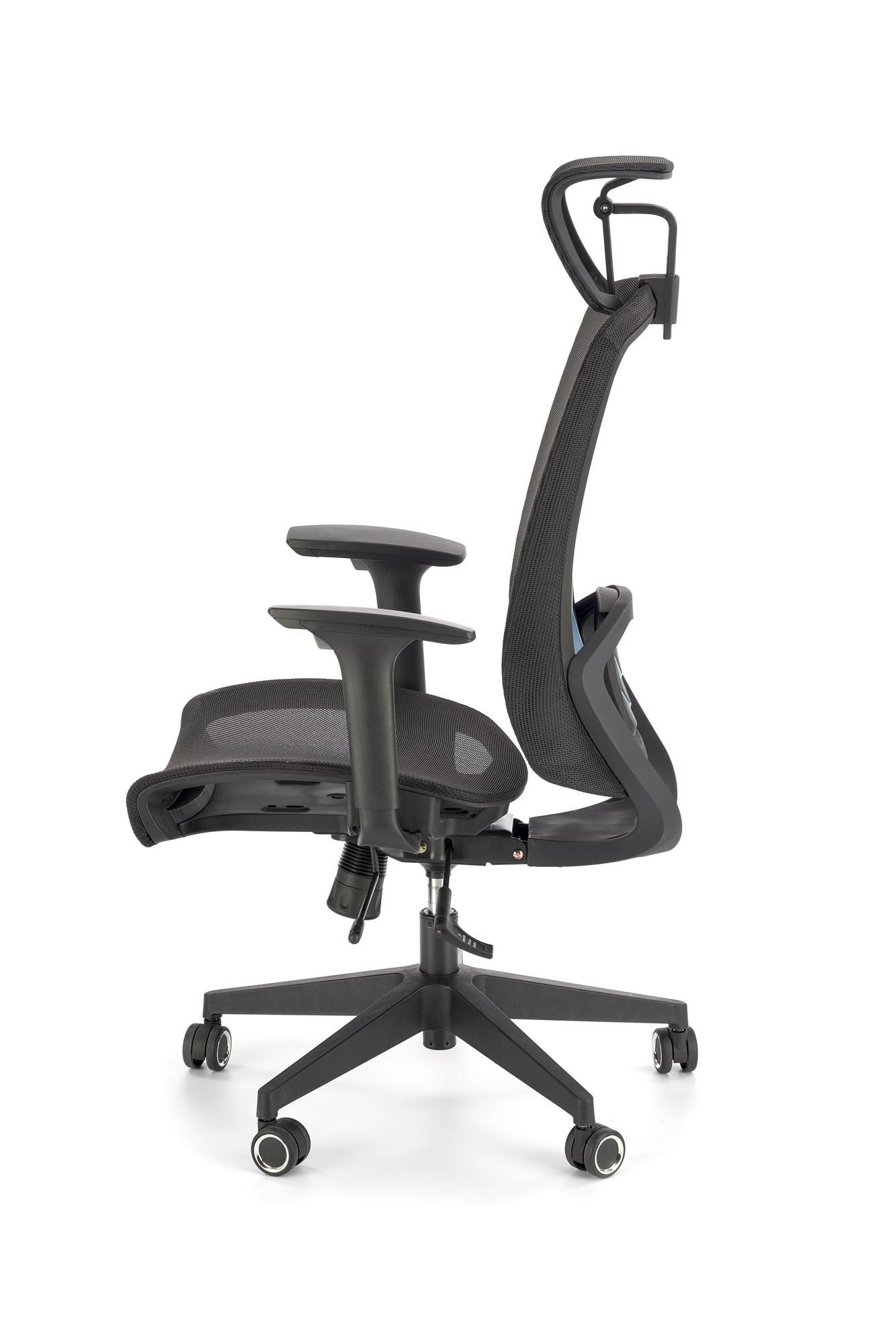 Fotel gabinetowy z siatkowym oparciem zagłówkiem i siedziskiem, kolorze czarnym
