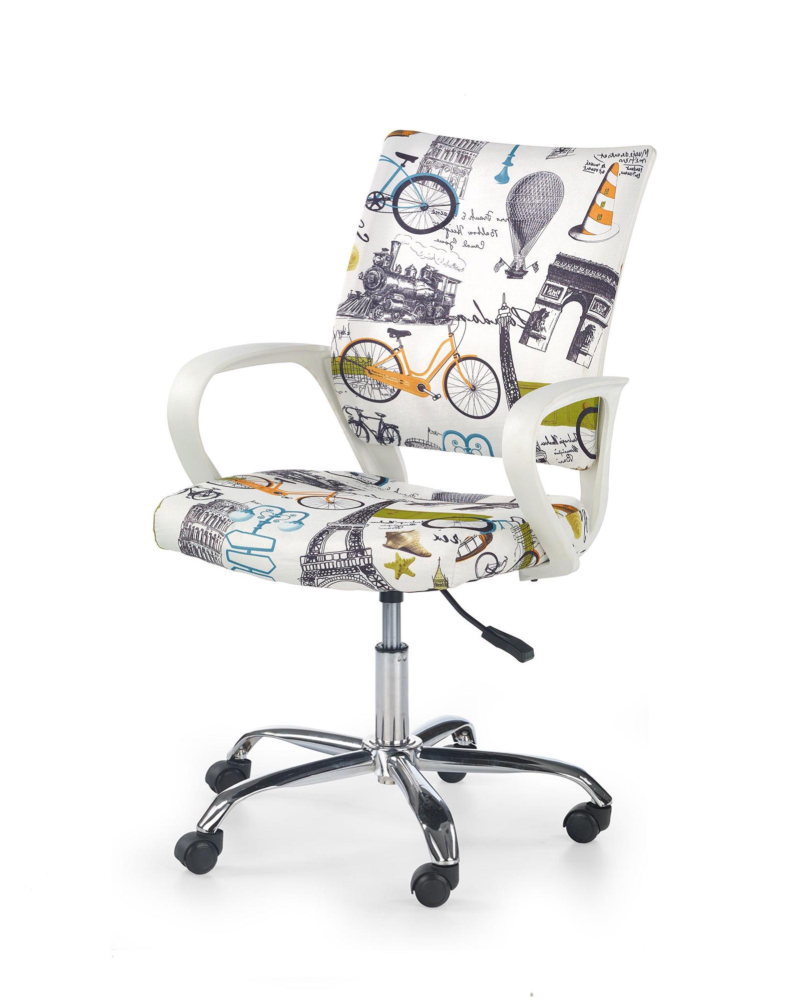 Fotel obrotowy wykonano z materiału: tkanina, kolor wielobarwny