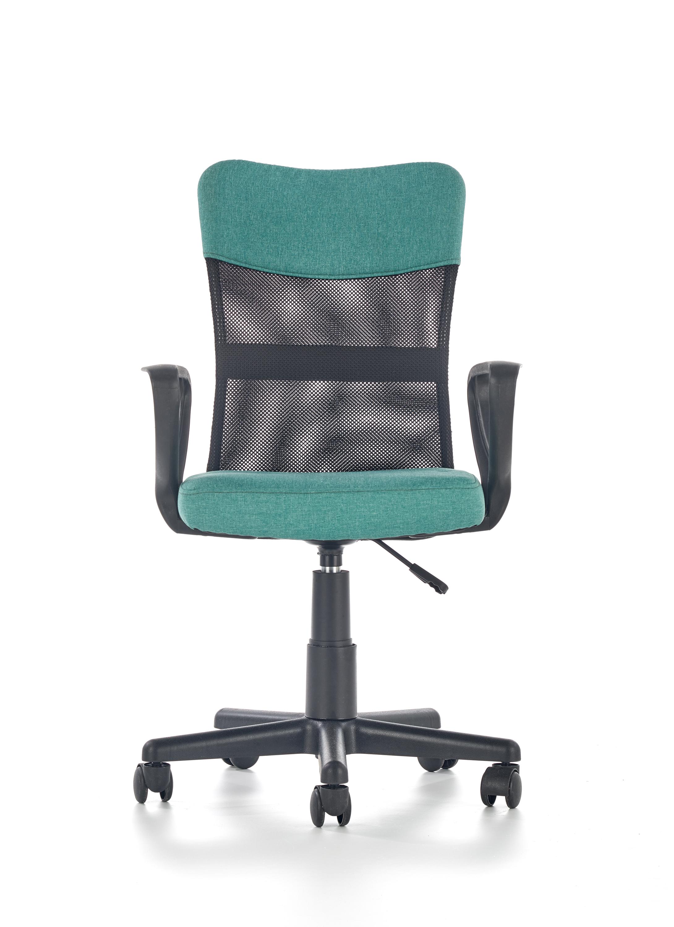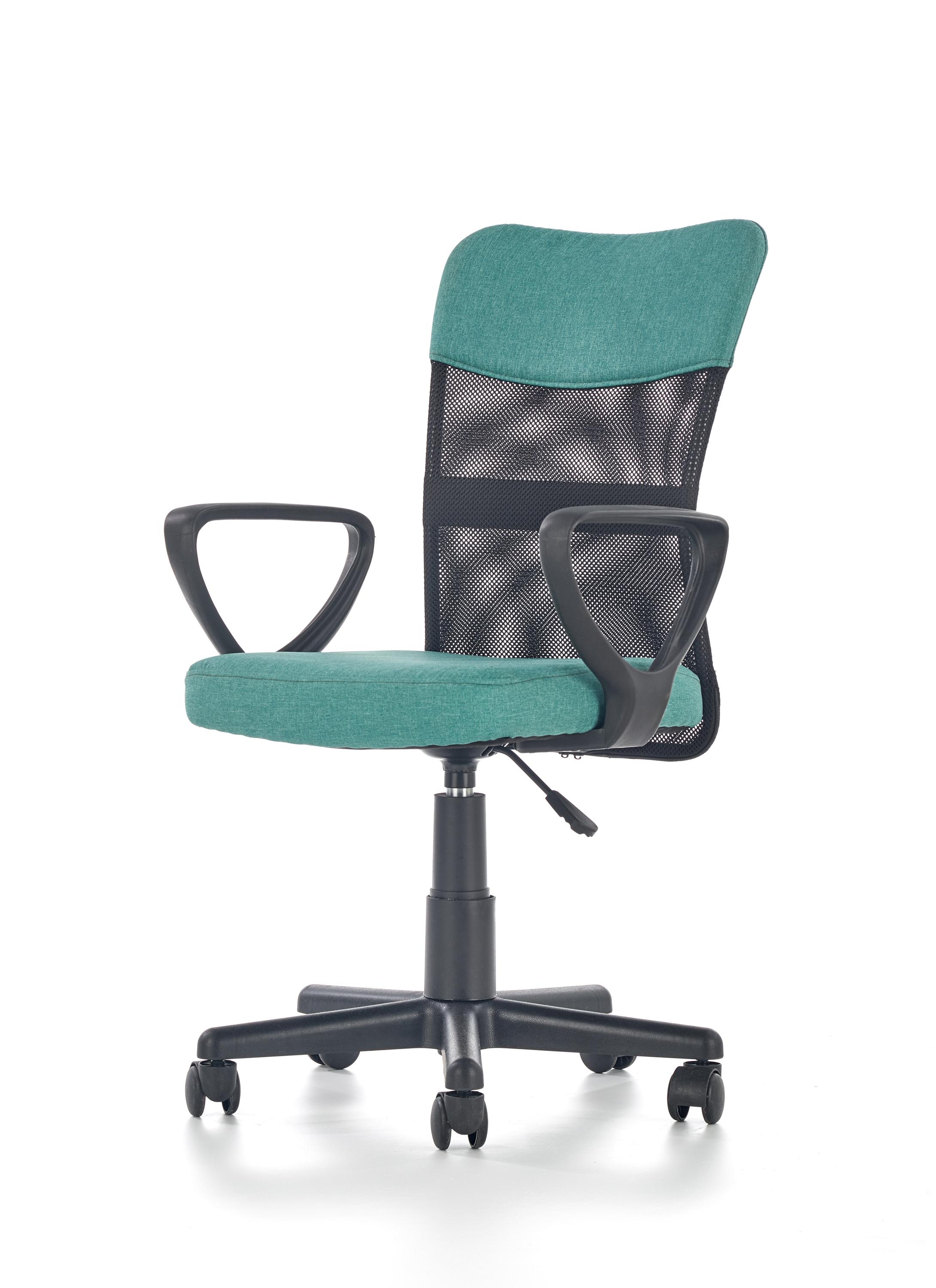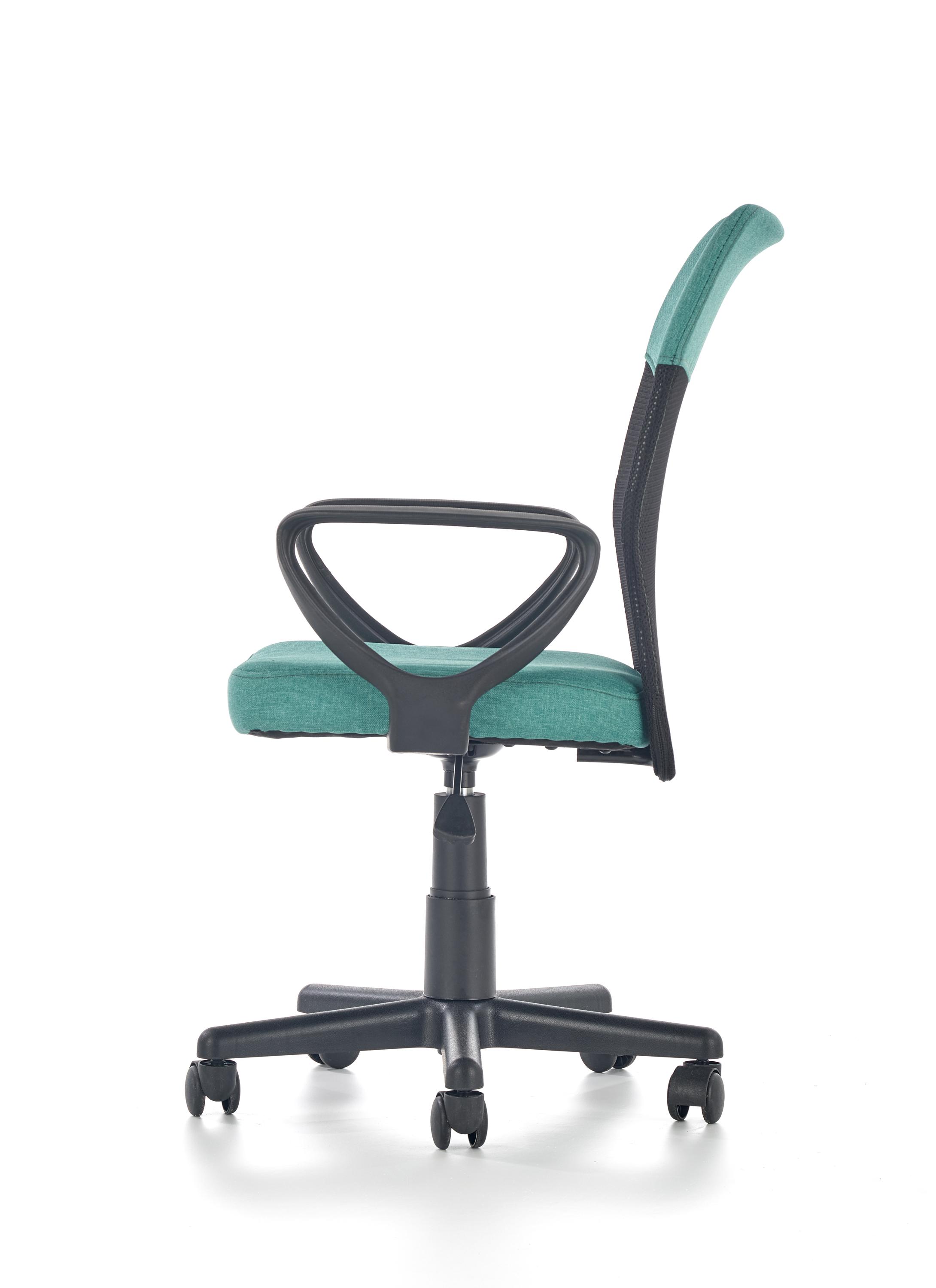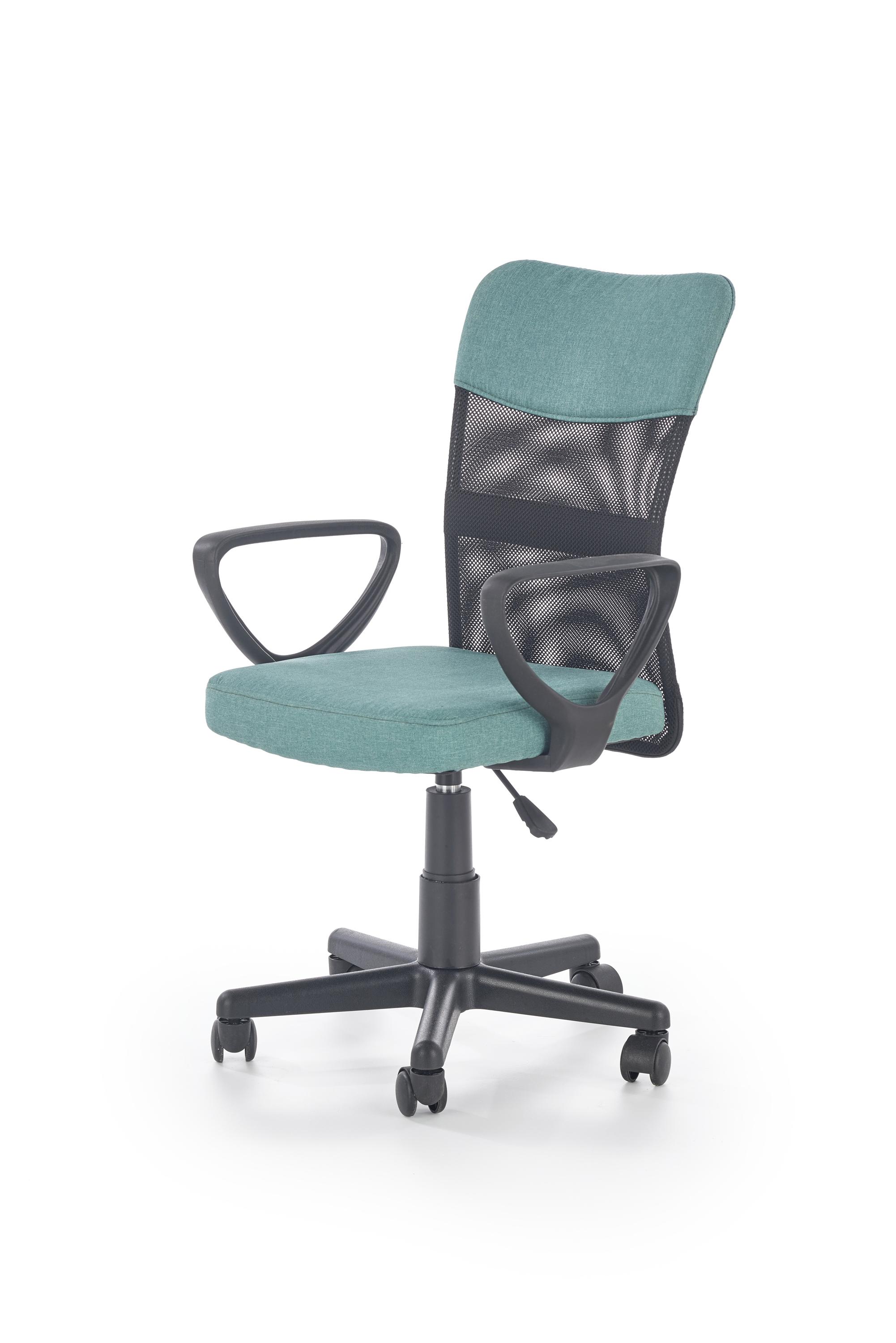 Fotel obrotowy wykonano z materiału: popielato - turkusowy