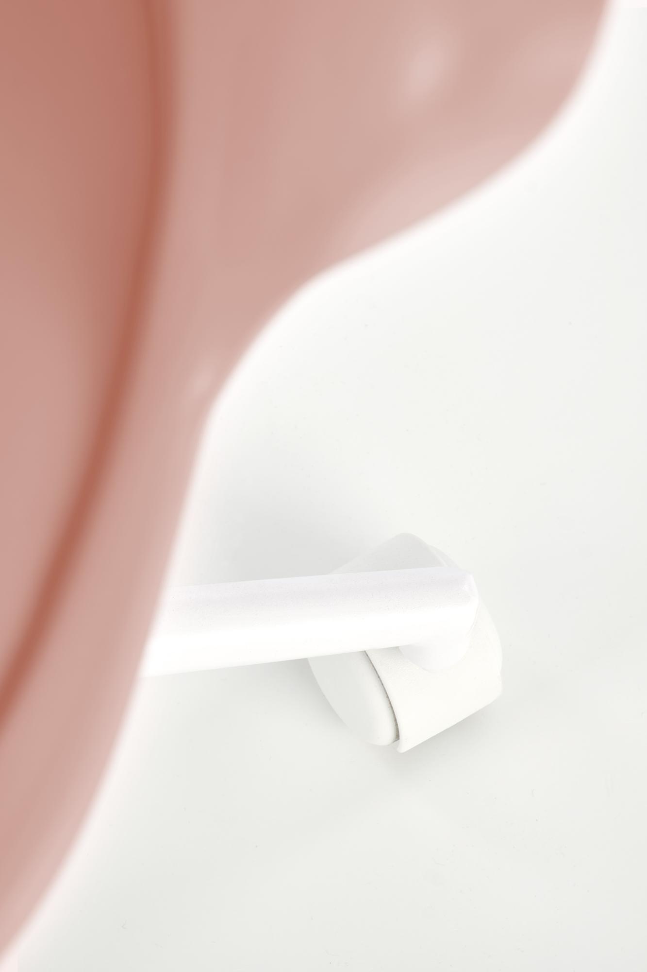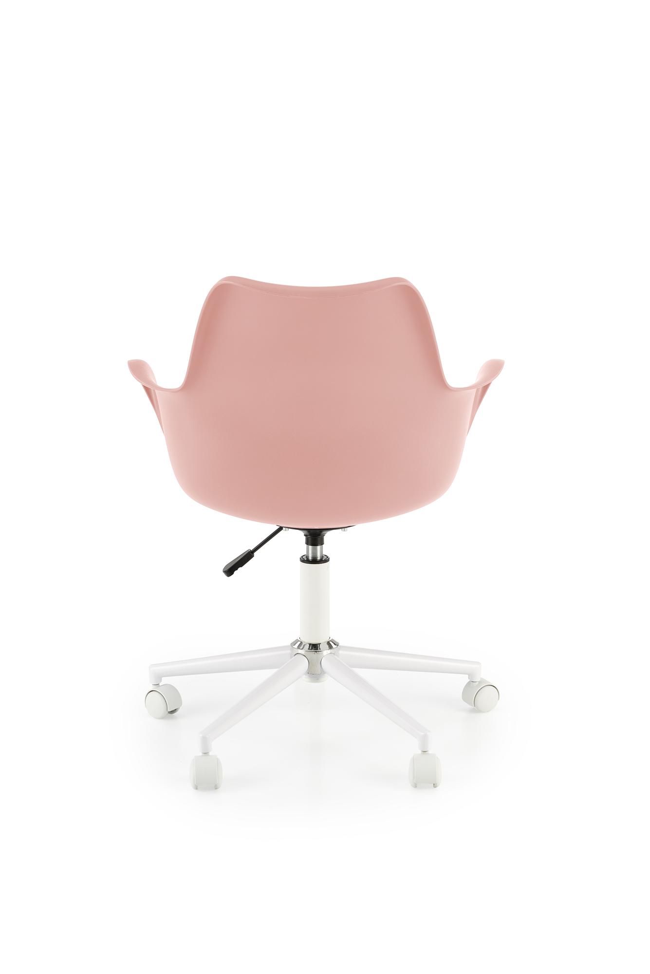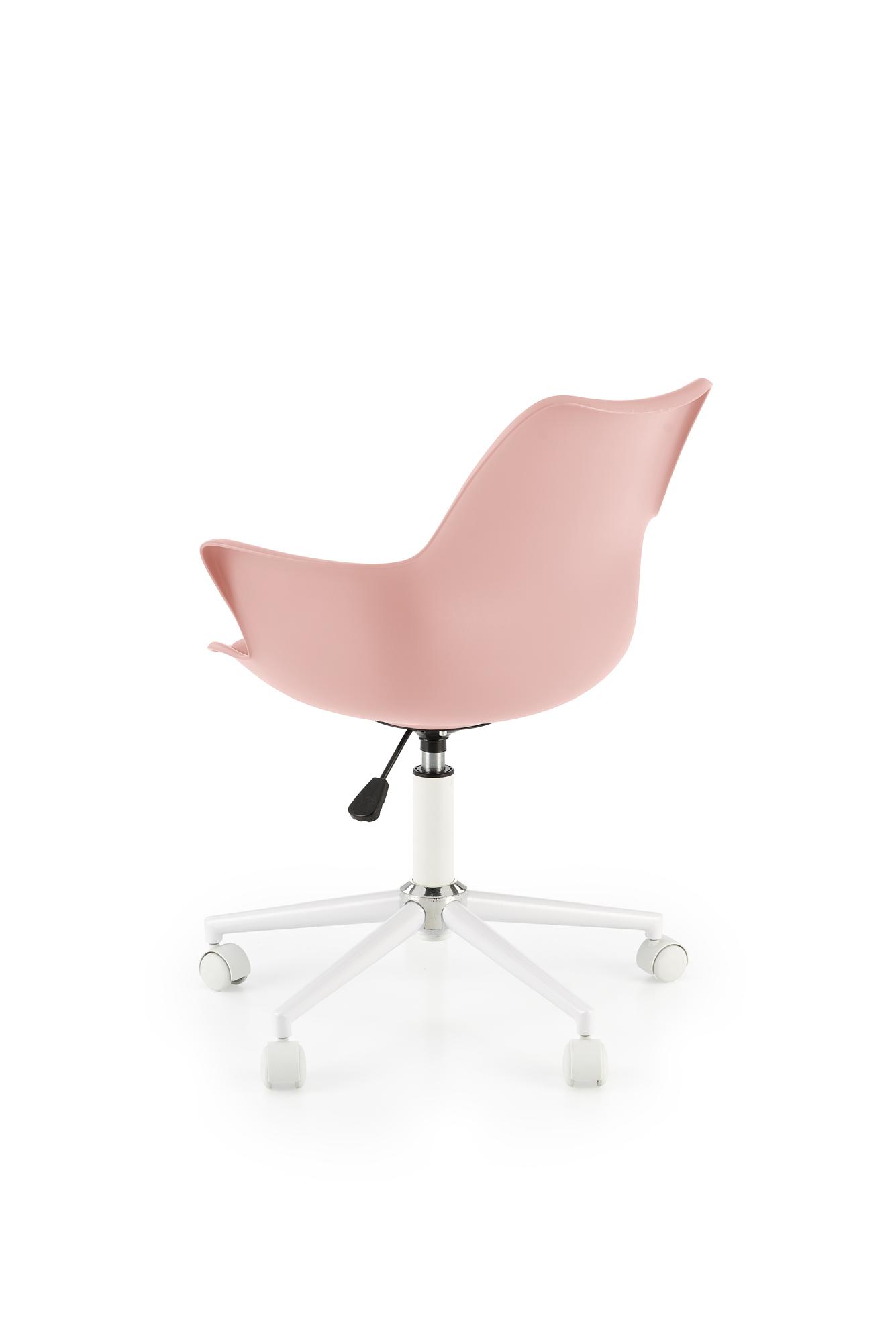 Strona główna » Meble » Fotele do biurka » Fotel młodzieżowy w stylu skandynawskim i różowym kolorze na białej obrotowej podstawie, eko skóra