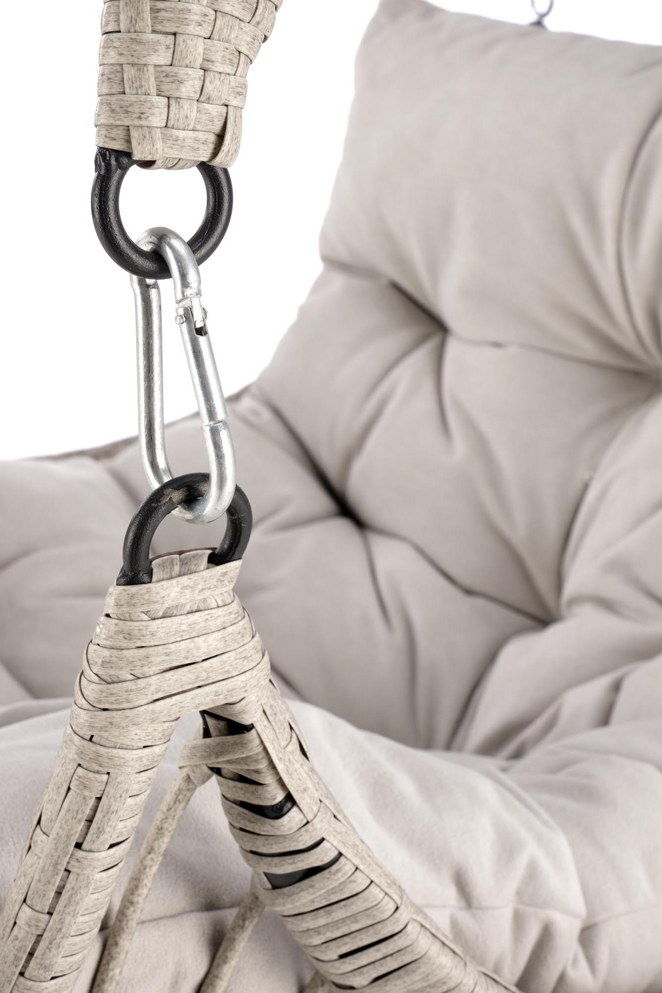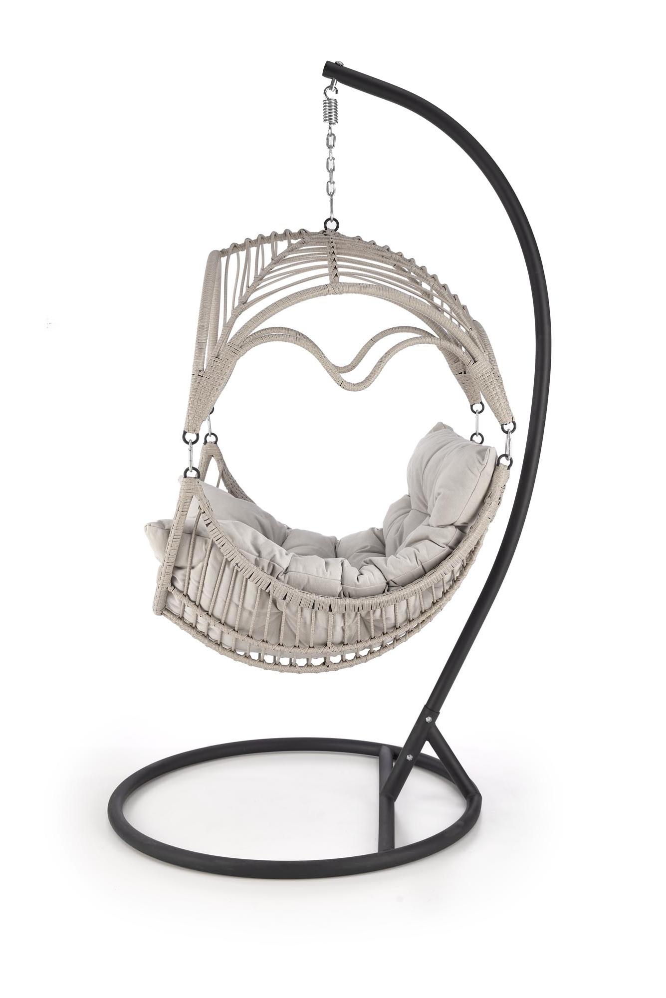 Wykonano z materiału: tkanina / rattan syntetyczny / stal malowana proszkowo, kolor jasny popiel