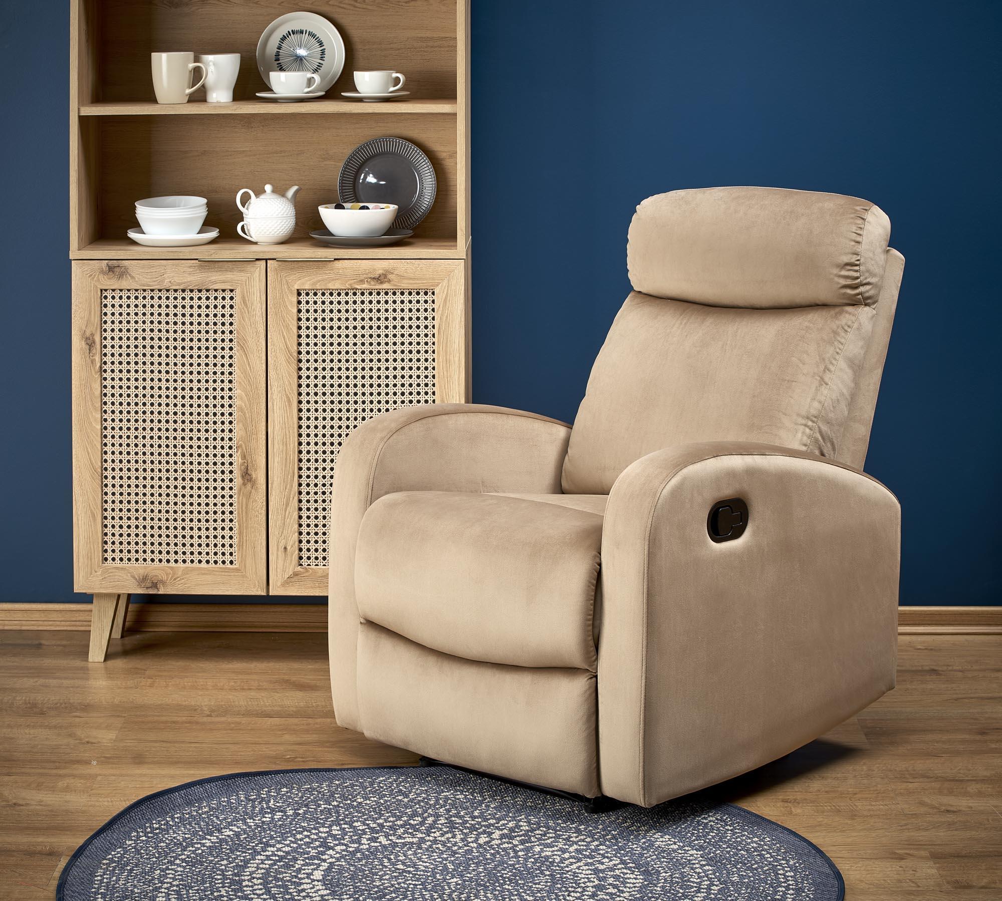 Fotel rozkładany z funkcją kołyski, tkanina velvet, kolor beżowy