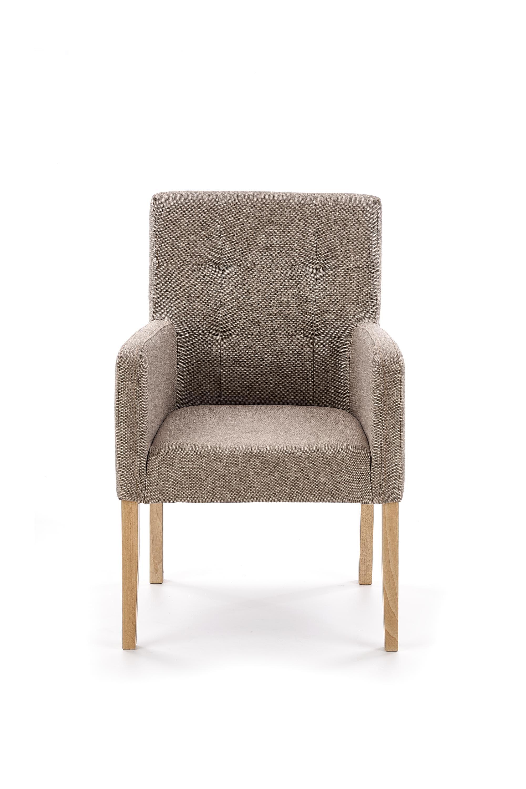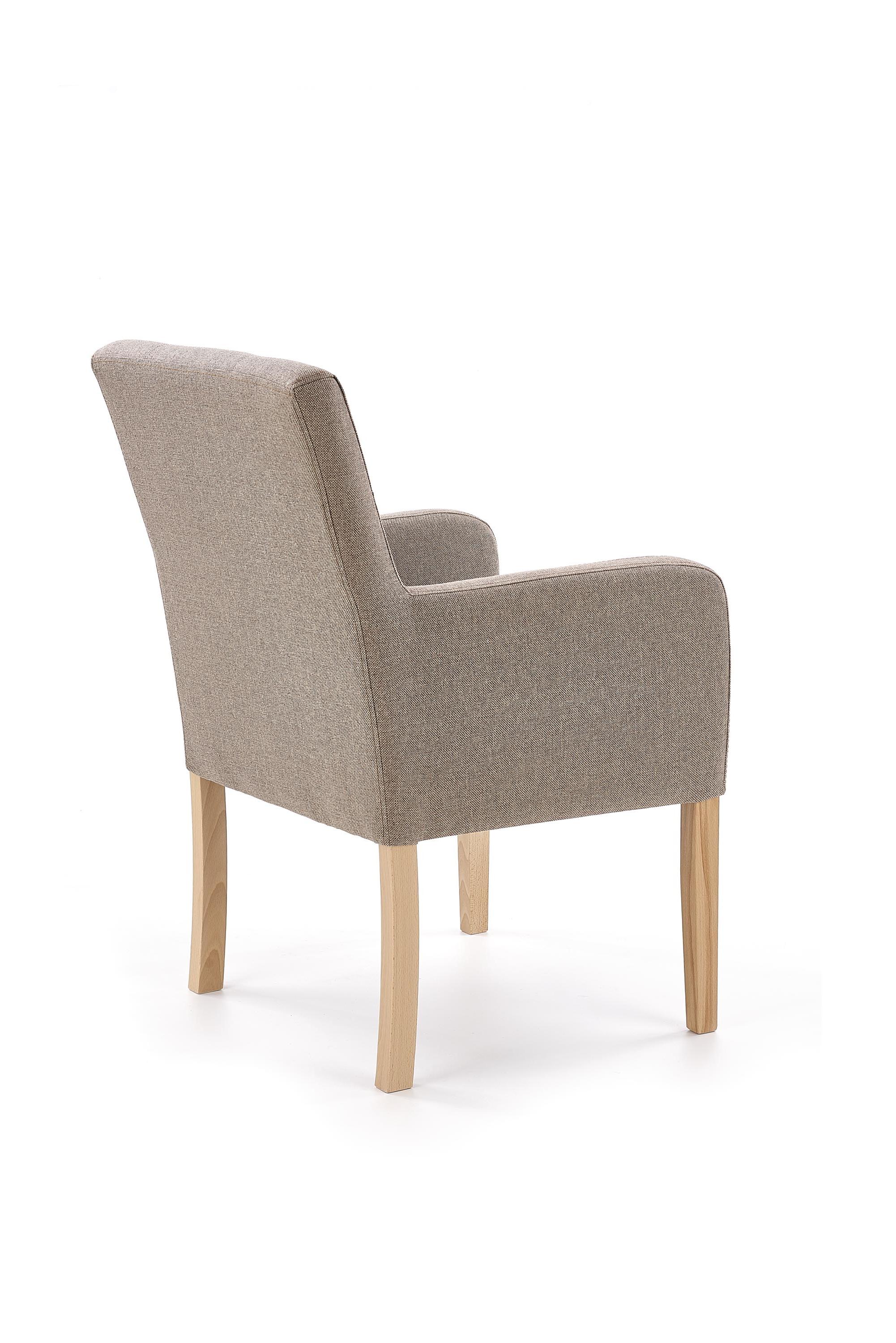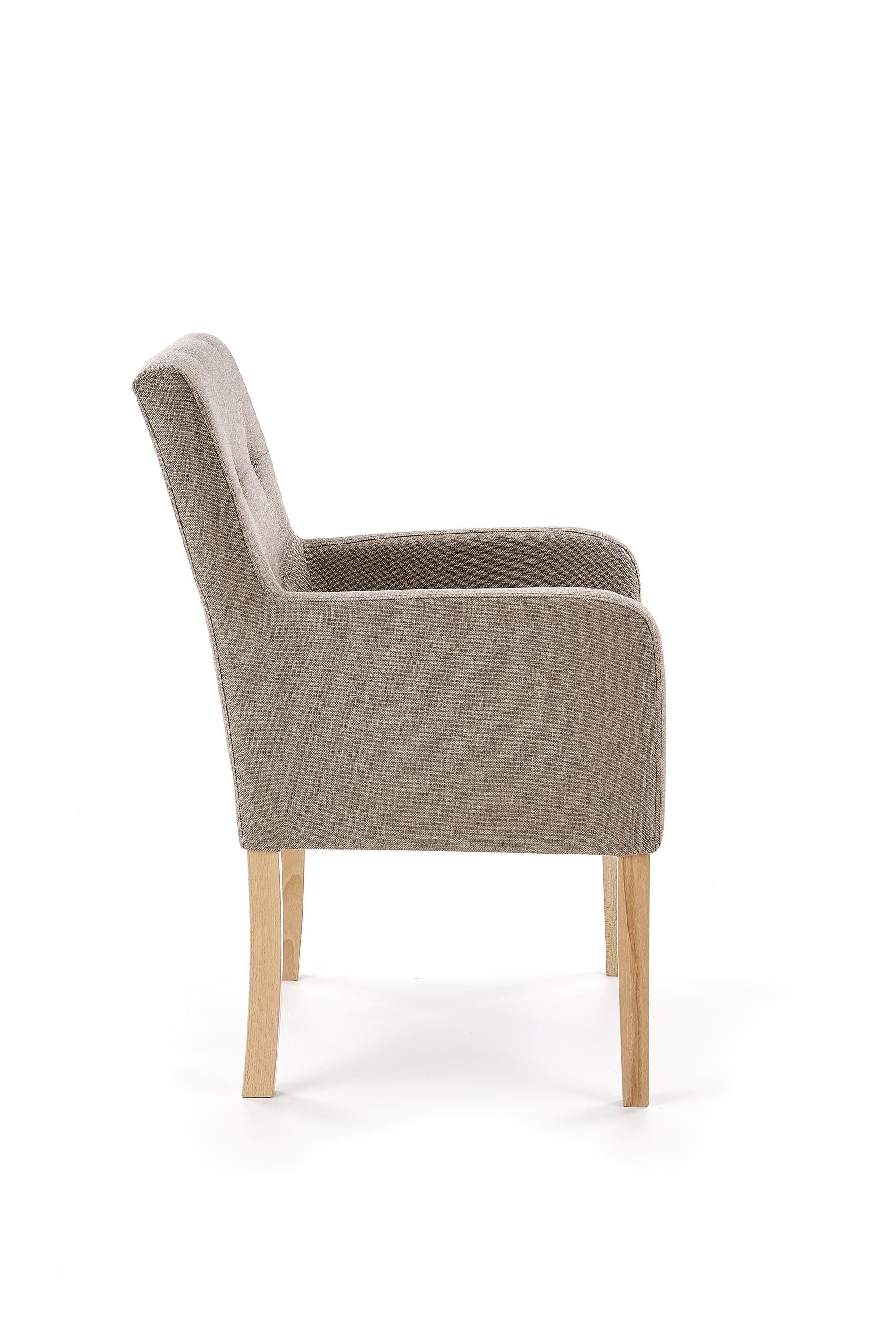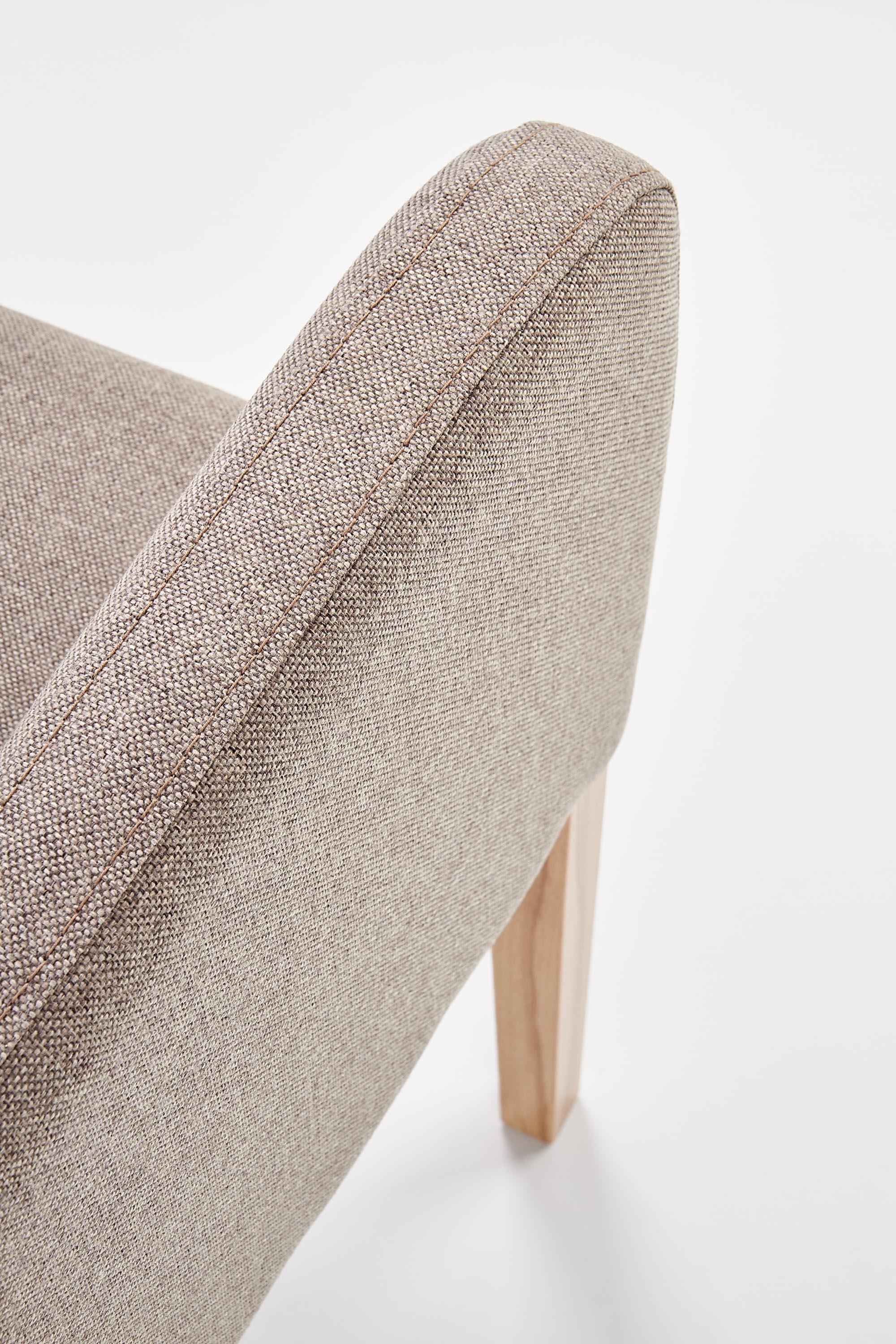 Wykonano z materiału: drewno lite bukowe / tkanina, kolor dąb miodowy / Inari 23
