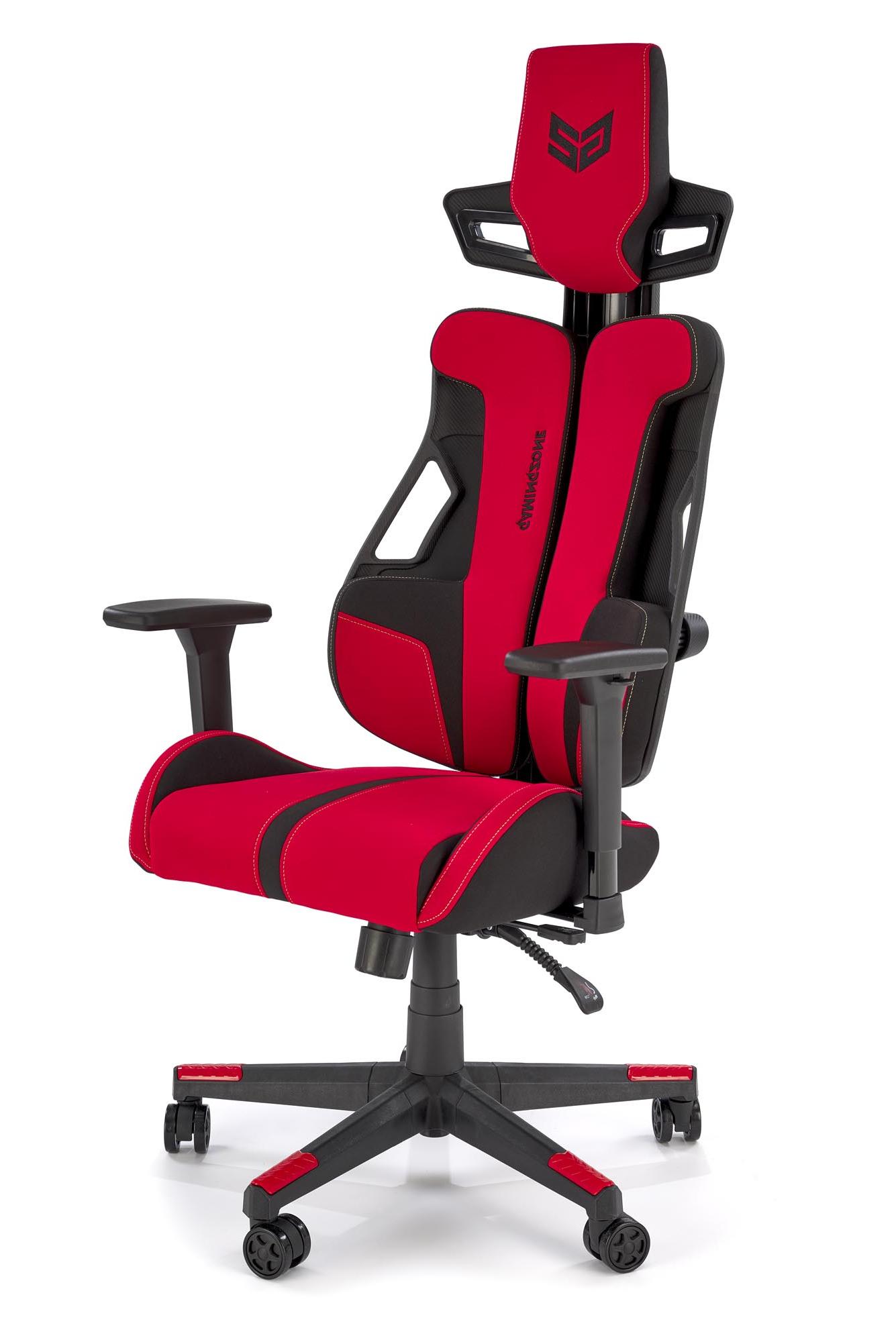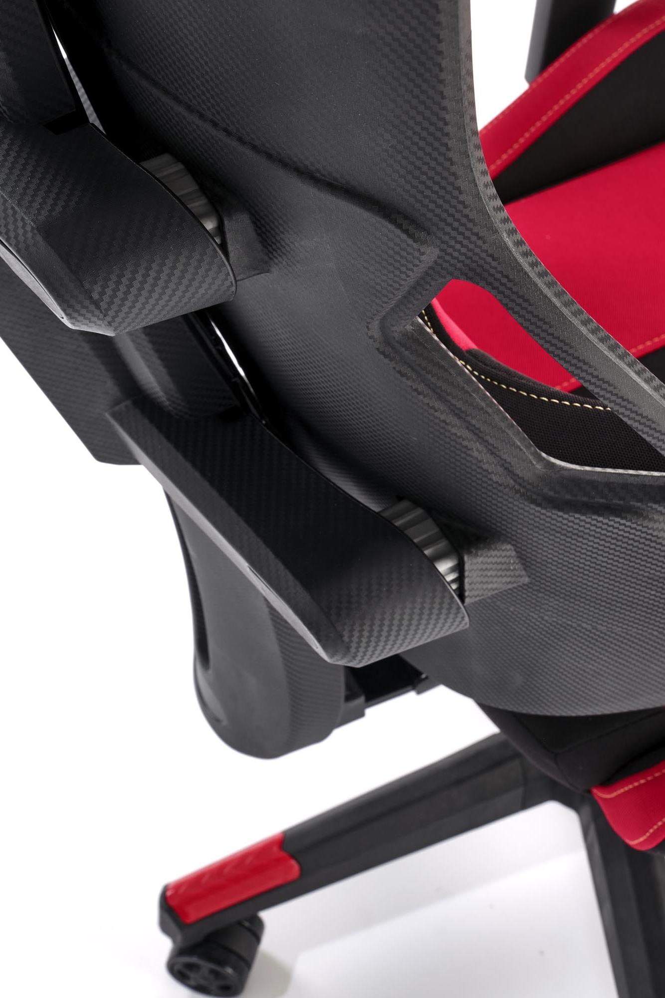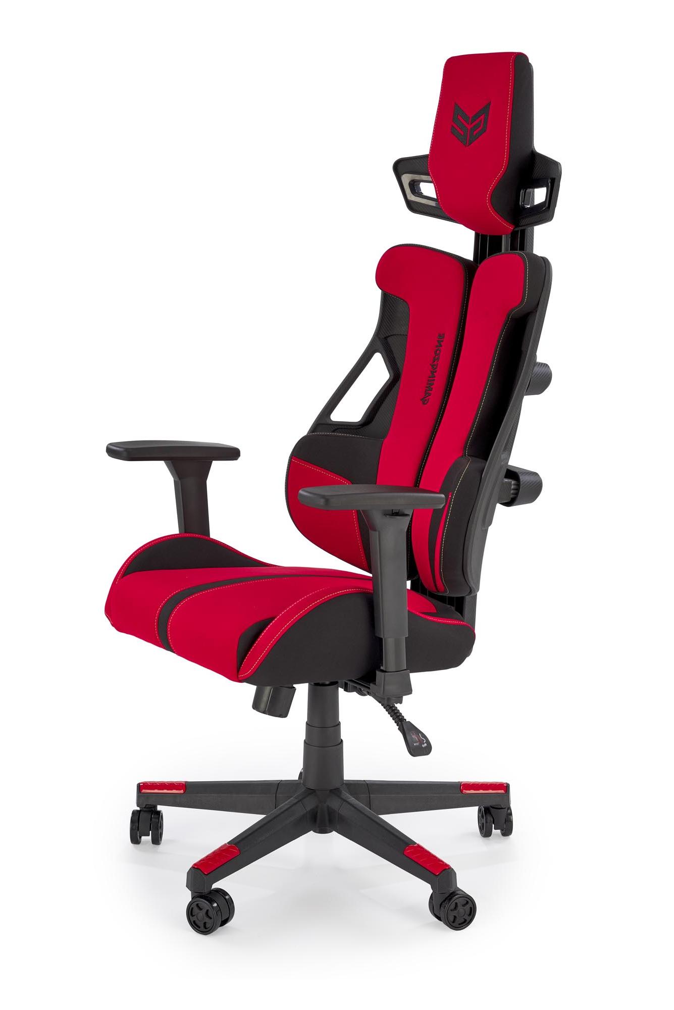 Fotel obrotowy wykonano z materiału: czerwony - czarny