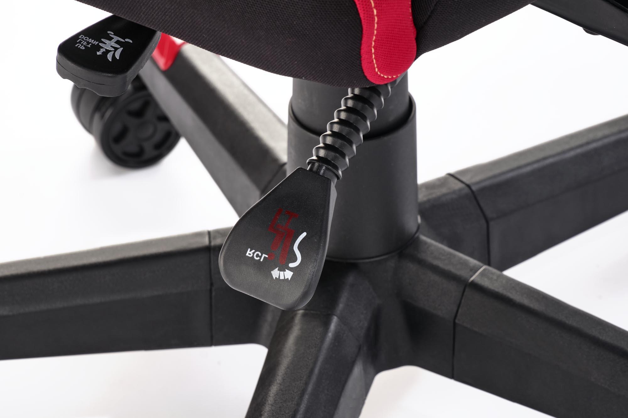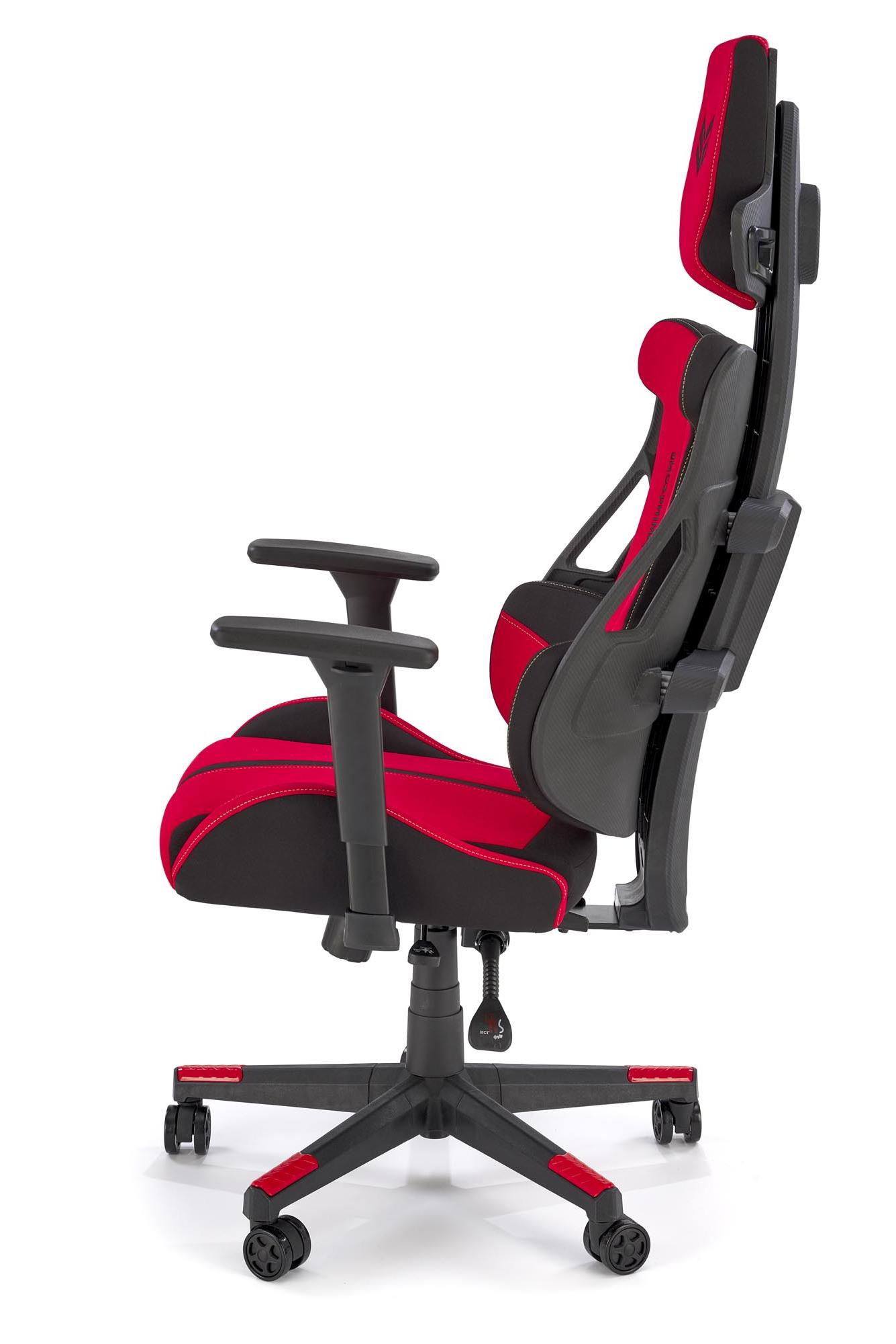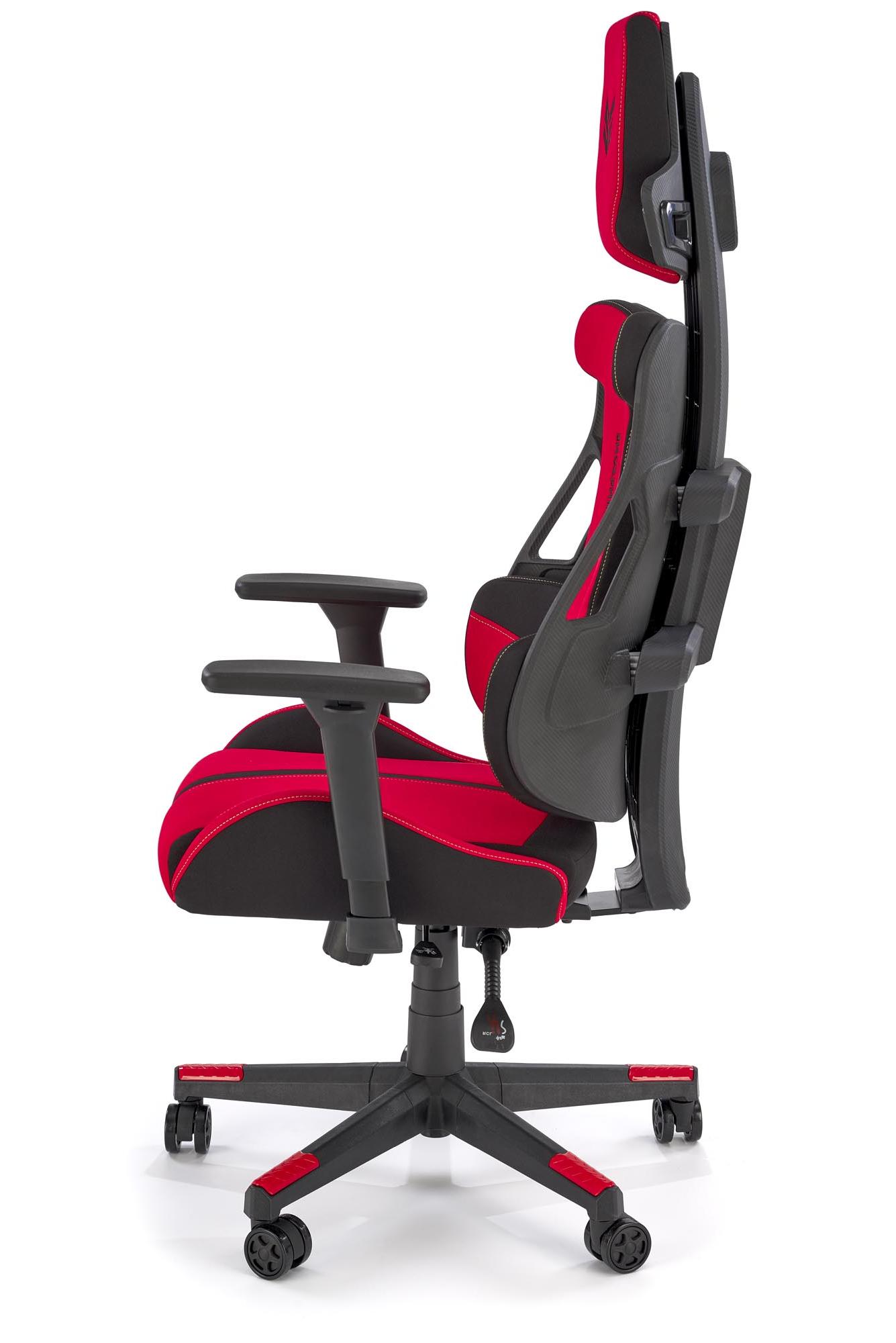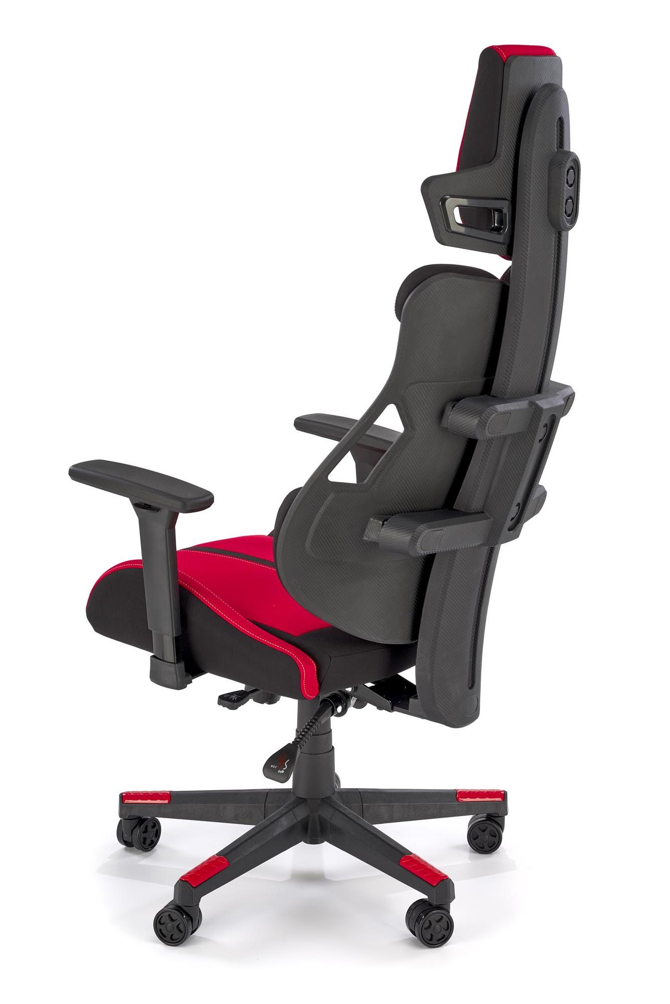 Fotel obrotowy wykonano z materiału: czerwony - czarny