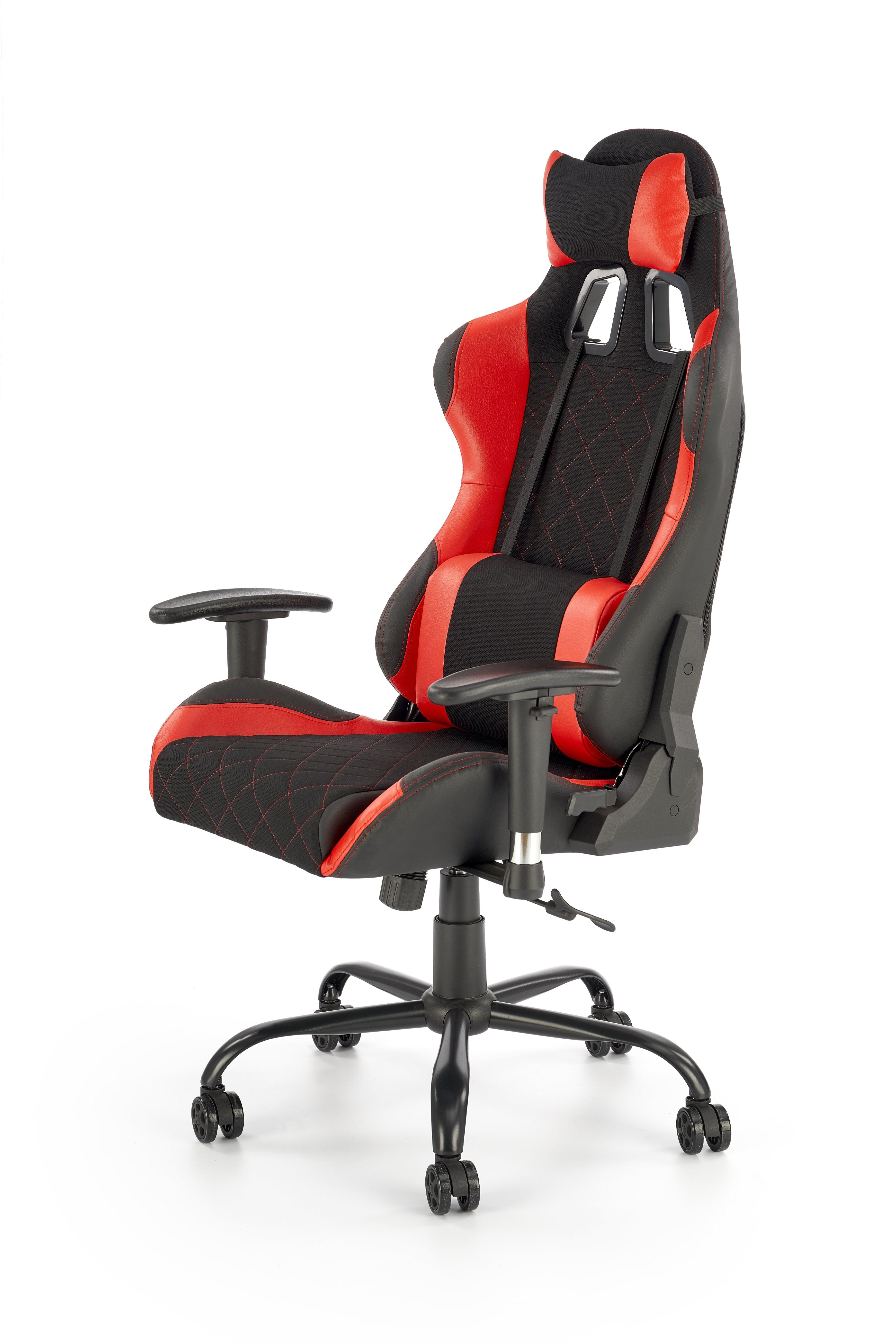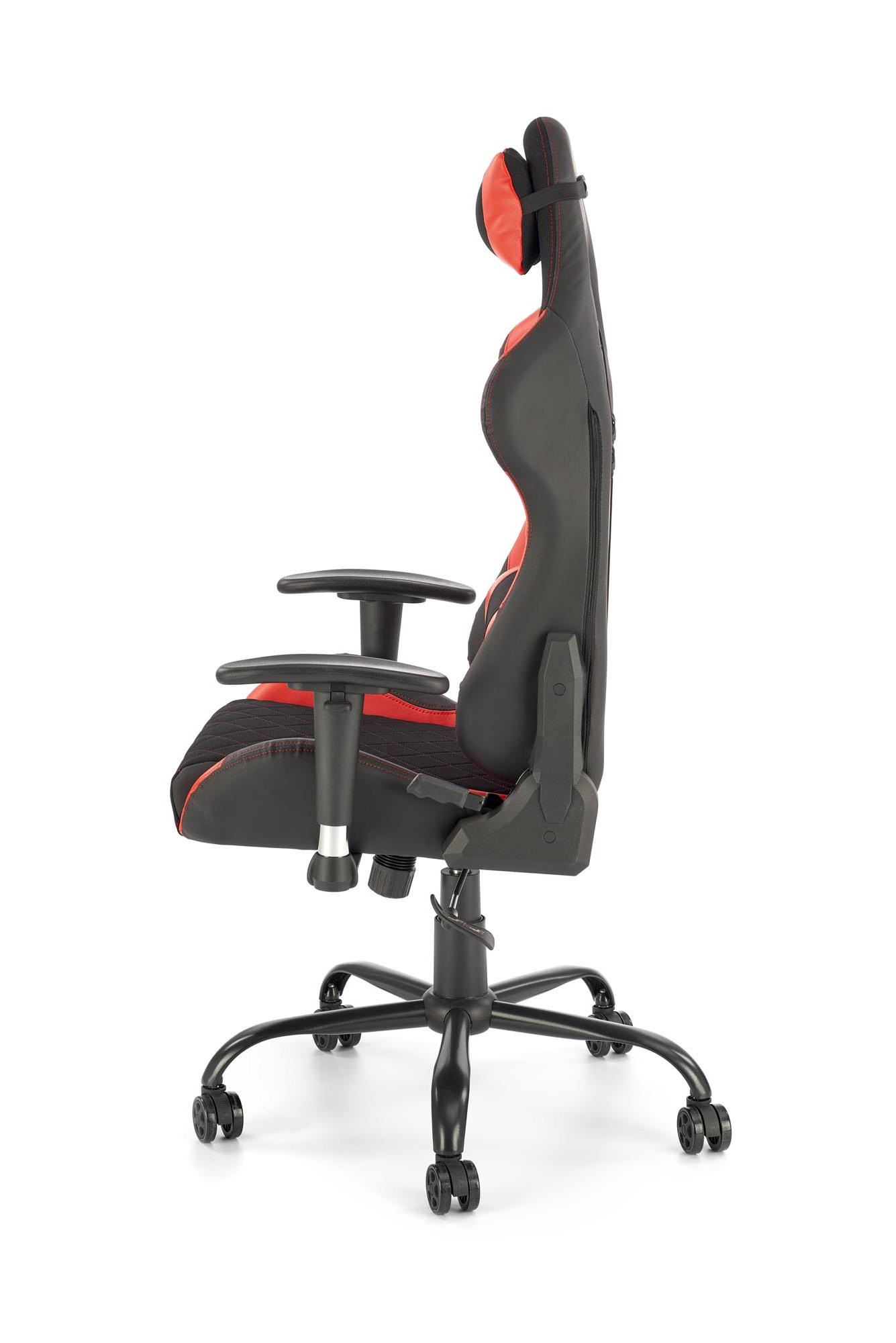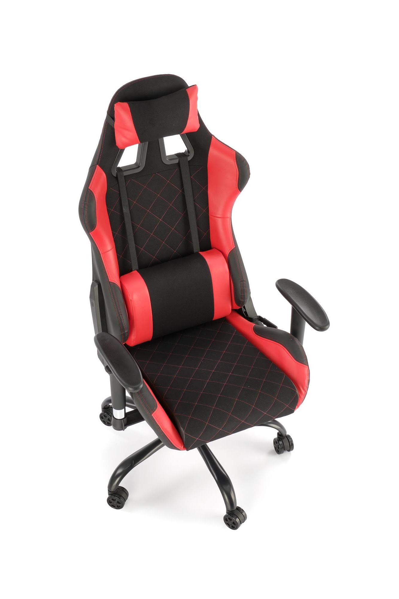 Fotel obrotowy wykonano z materiału: czerwono-czarny