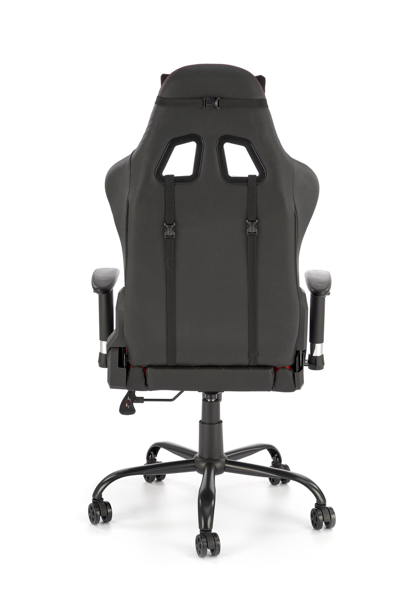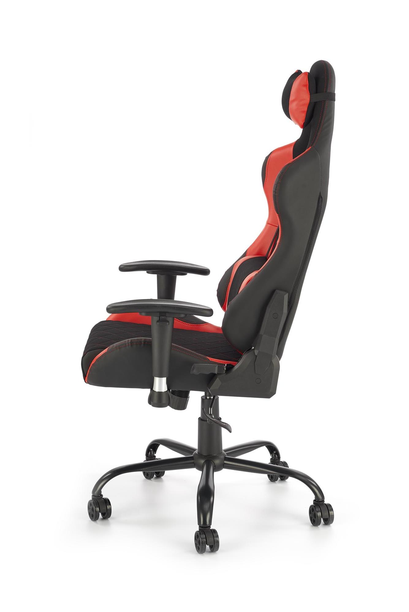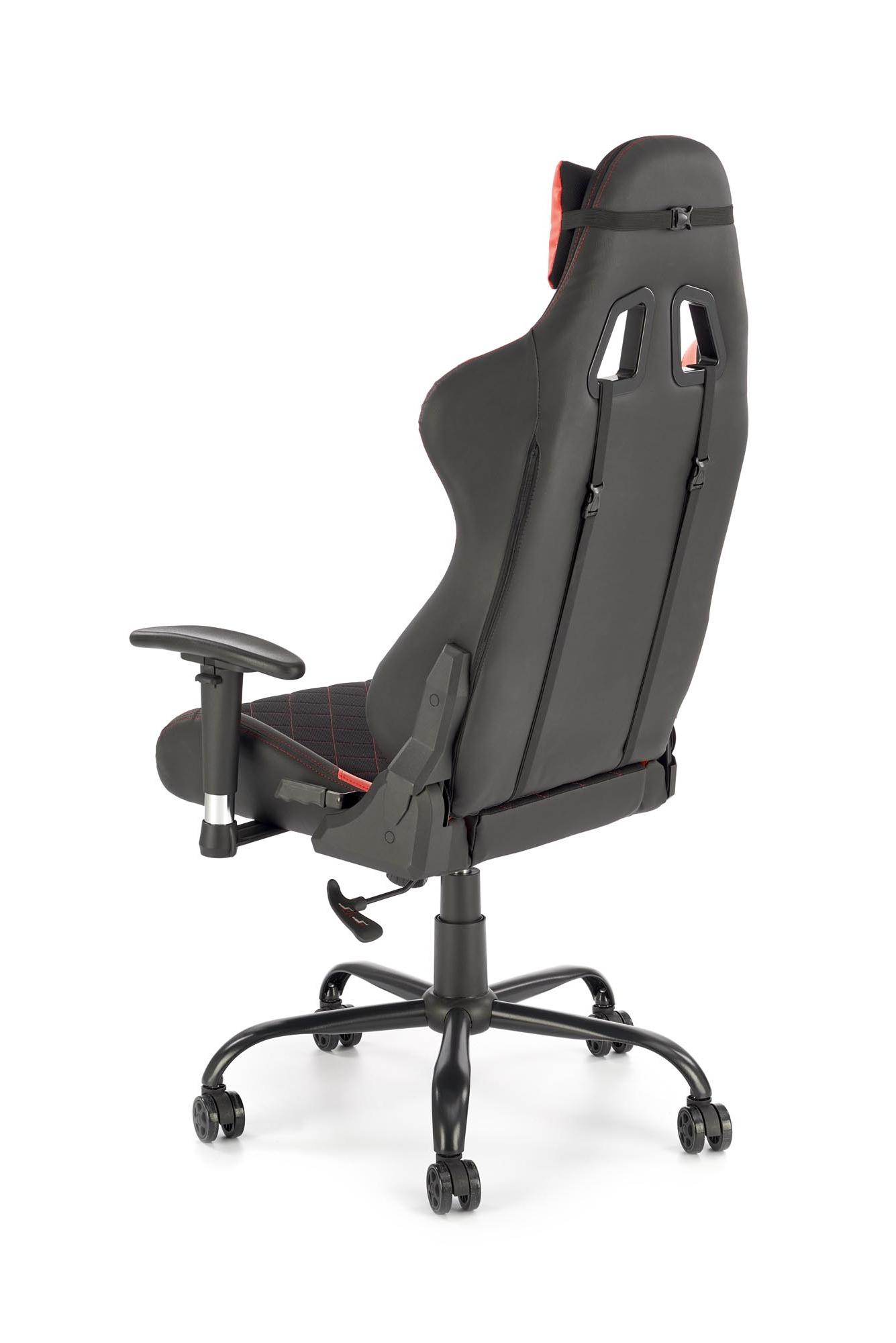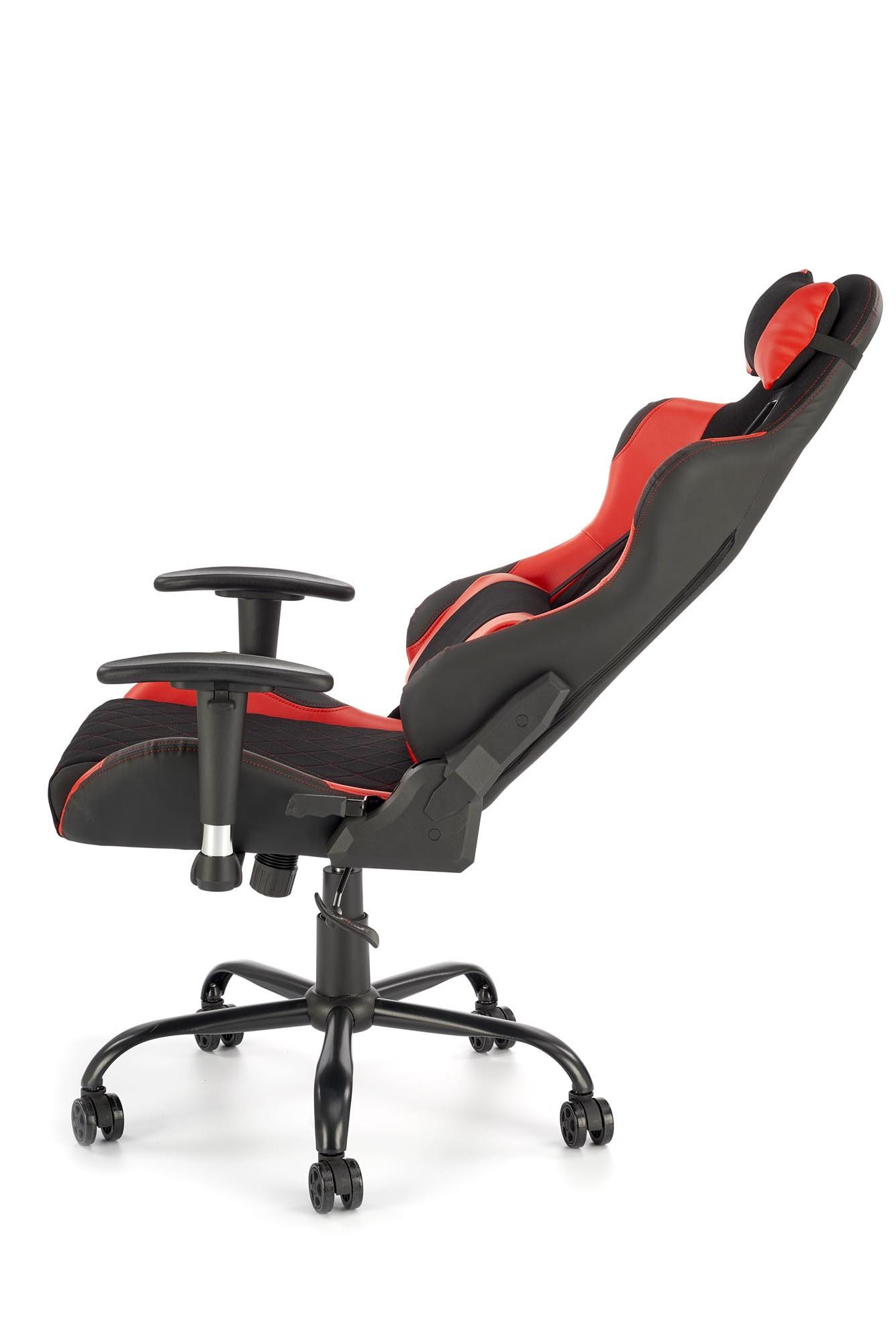Fotel obrotowy wykonano z materiału: czerwono-czarny