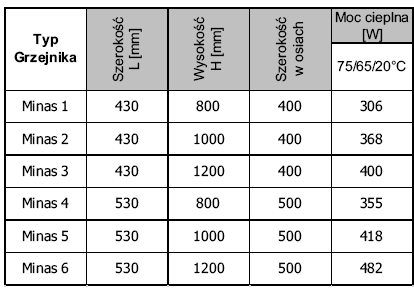 Minas 1 430x800 mm, 306 W – trzy łukowe dipole + wieszaki. Malowanie proszkowe wg palety RAL (podaj kod). Współpraca z grzałką (prawa strona). Moc galwanizowanych niższa o ok. 25%.