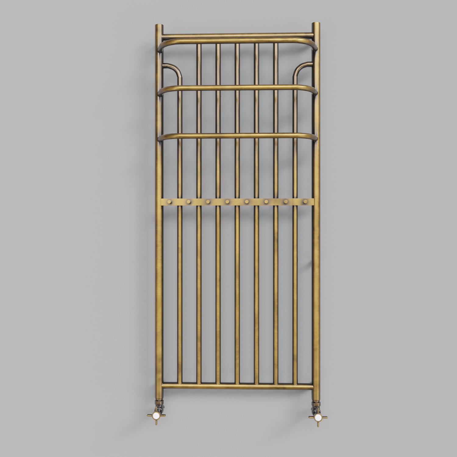 Minas 3 Retro 430x1200 mm, 400 W – wykończenia: stary mosiądz, grafit (czarny chrom), aluminium szczotkowane. Współpraca z grzałką (prawa strona). Moc galwanizowanych niższa o ok. 25%.