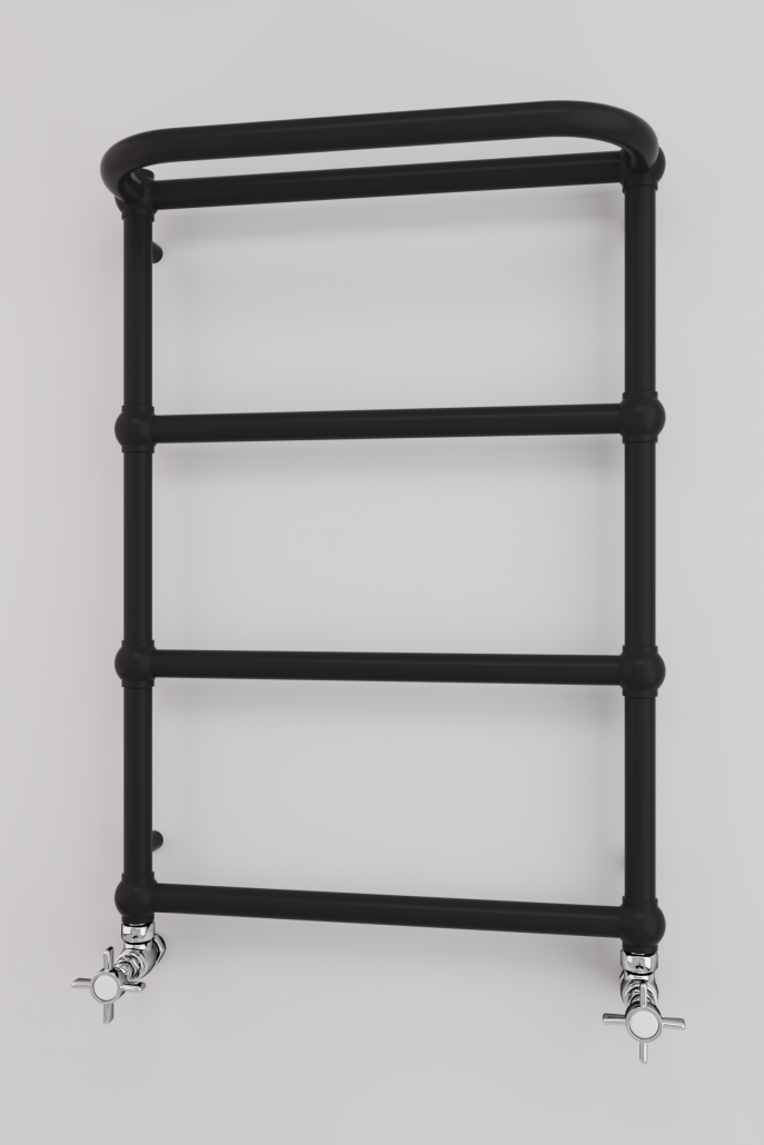 Retro design, reling na ręczniki, współpraca z grzałką elektryczną. Dostępny również w chromie i bieli.