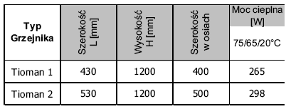 Prosty i funkcjonalny, 530×1200 mm, 298 W. Współpraca z grzałką (prawa strona). Moc galwanizowanych niższa o ok. 25%.