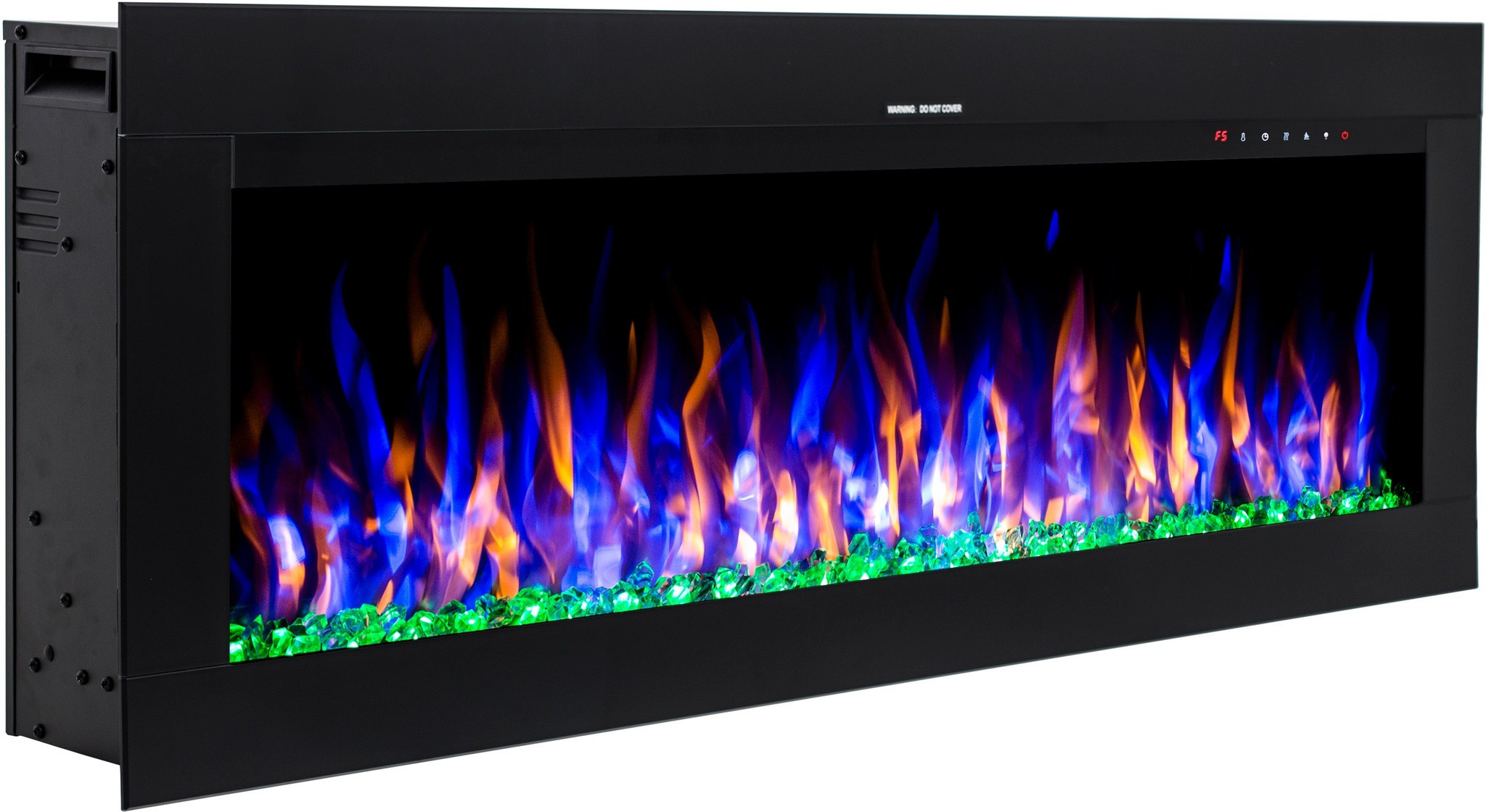 Cechy | 6 kolory płomienia 3 prędkości płomienia 2 rodzaje paleniska w zestawie: polana, kryształy. 10 kolorów podświetlenia paleniska. |