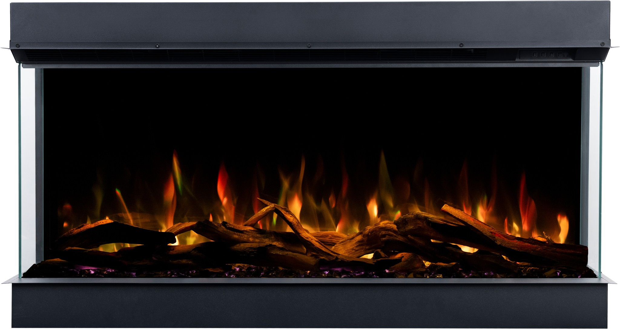 Kominek Superb 3D posiada w zestawie półprzezroczyste polana, które sprawiają wrażenie żarzącego się drewna.