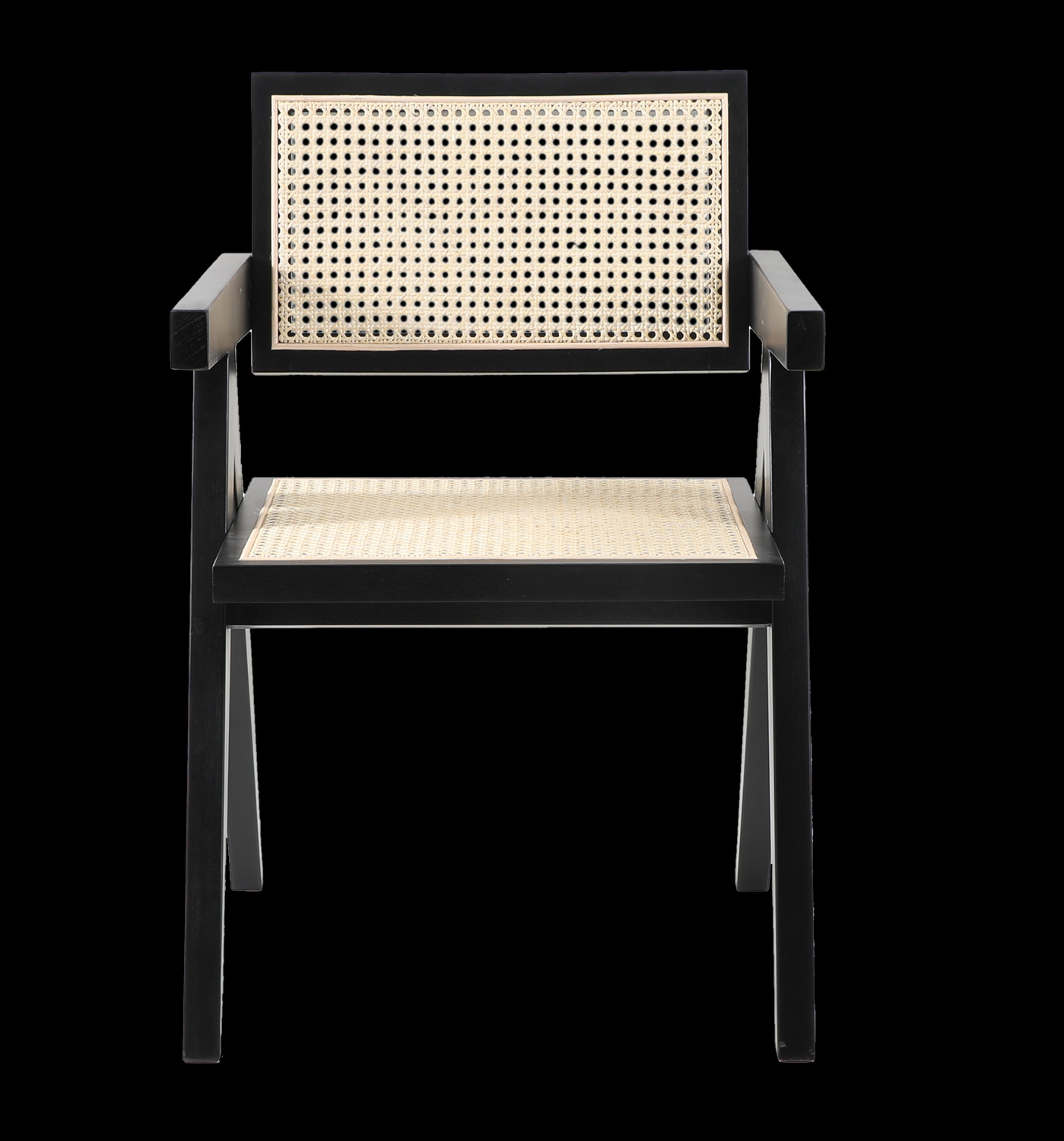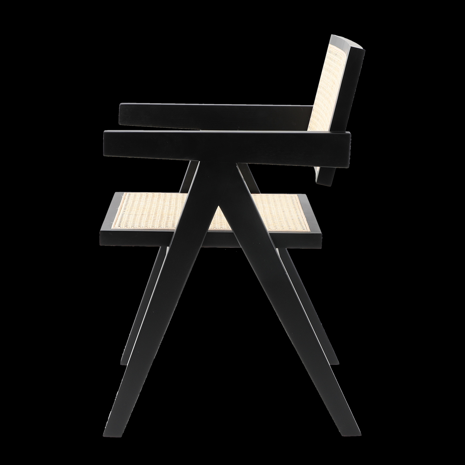 Krzesło BOHO wykonane z naturalnego rattanu i drewna osadzone na drewnianej ramie w kolorze czarnym.