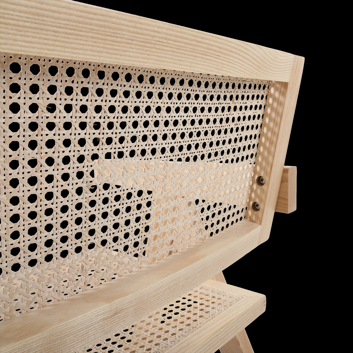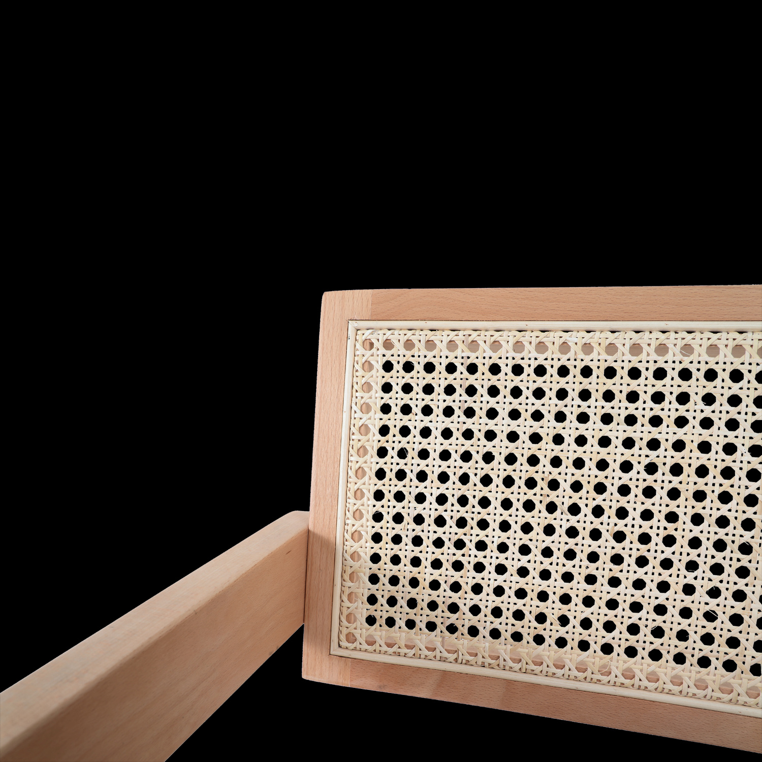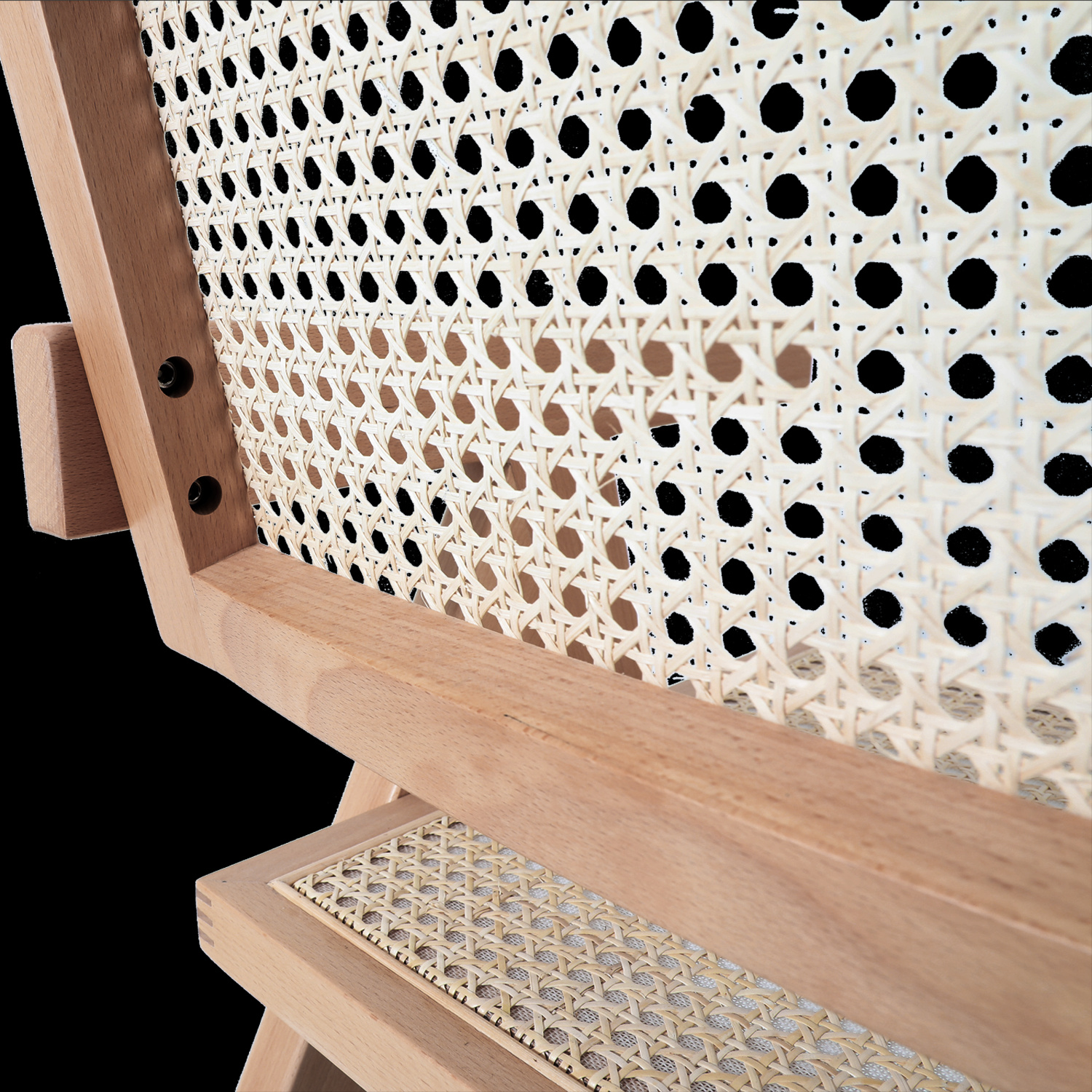 Krzesło BOHO wykonane z naturalnego rattanu i drewna osadzone na drewnianej ramie w kolorze naturalnym.