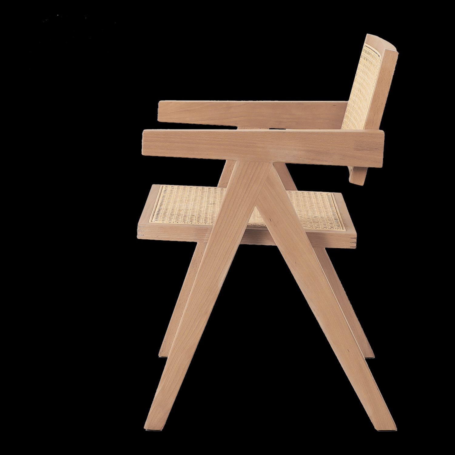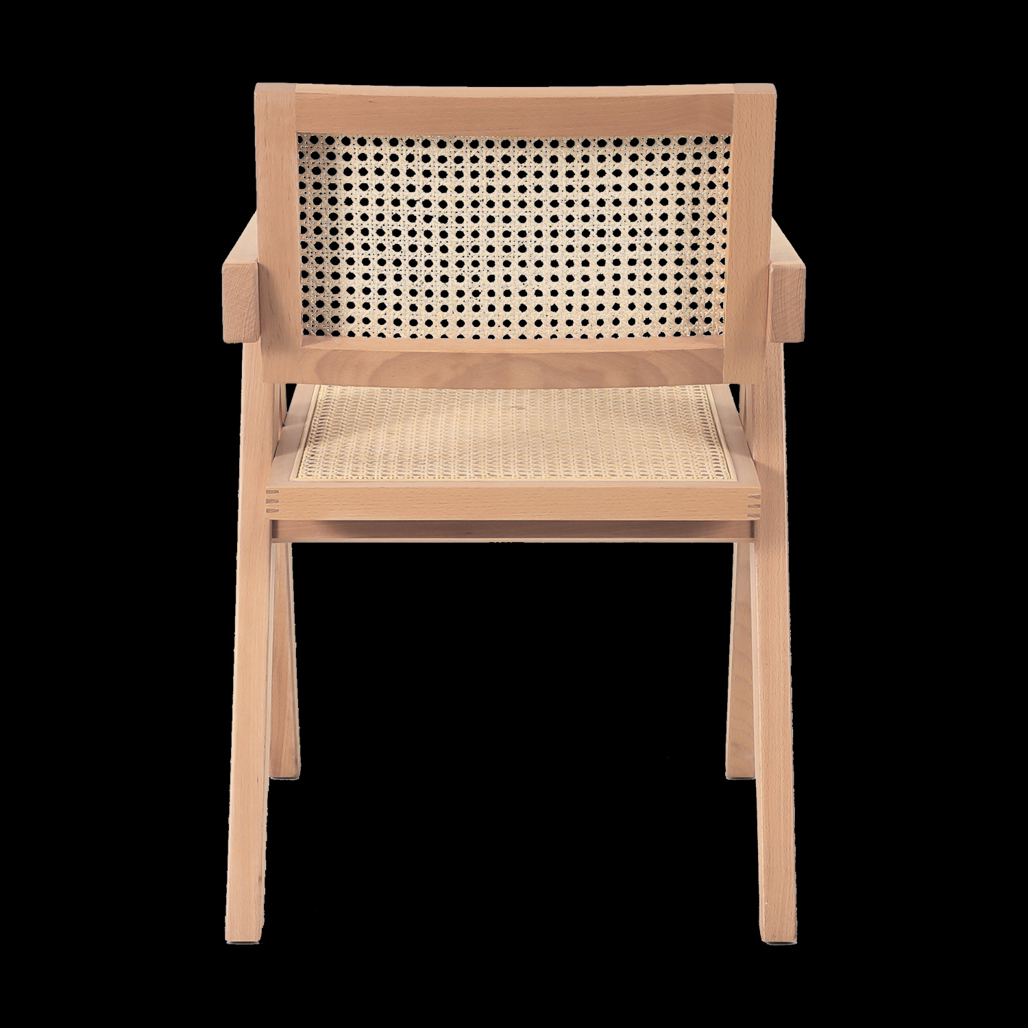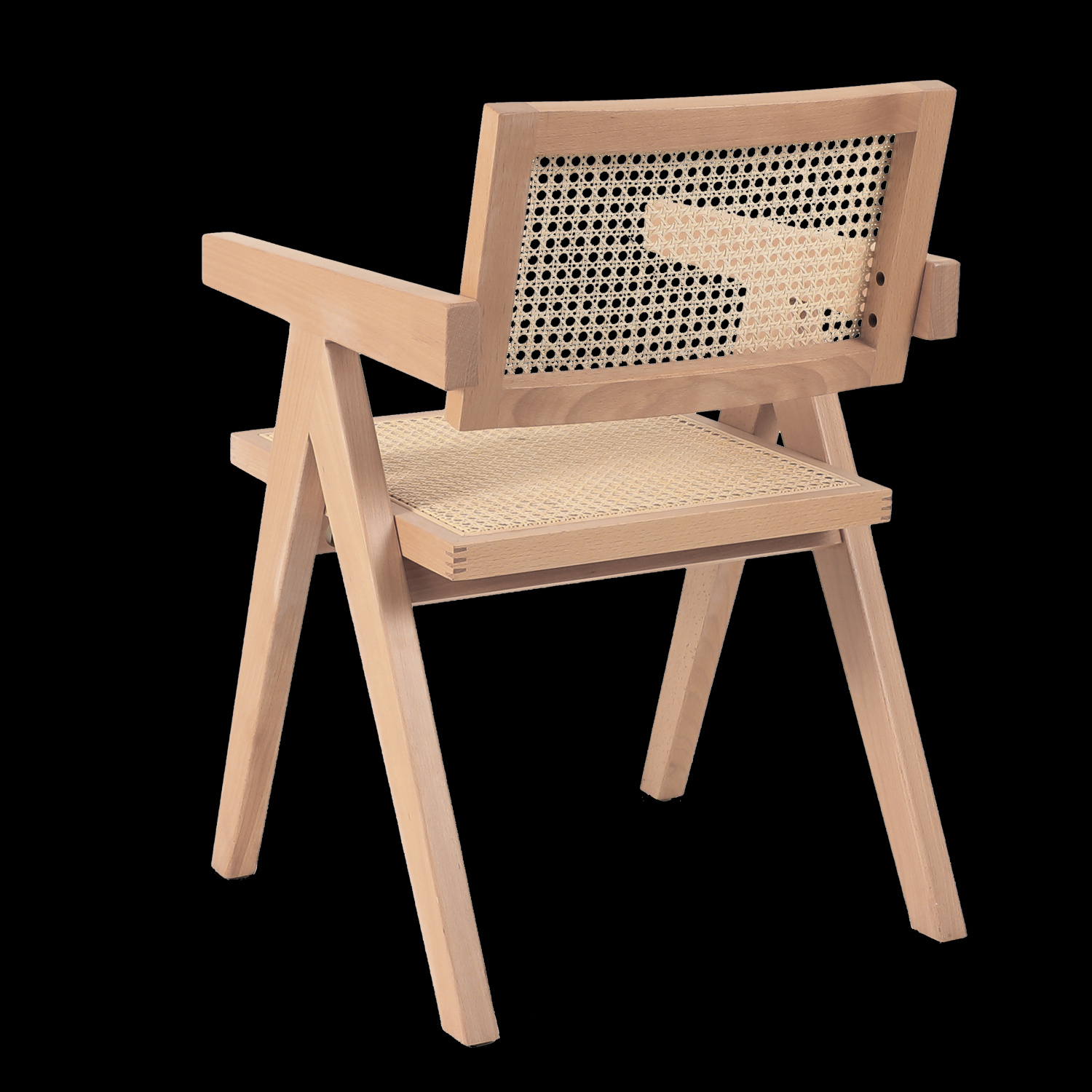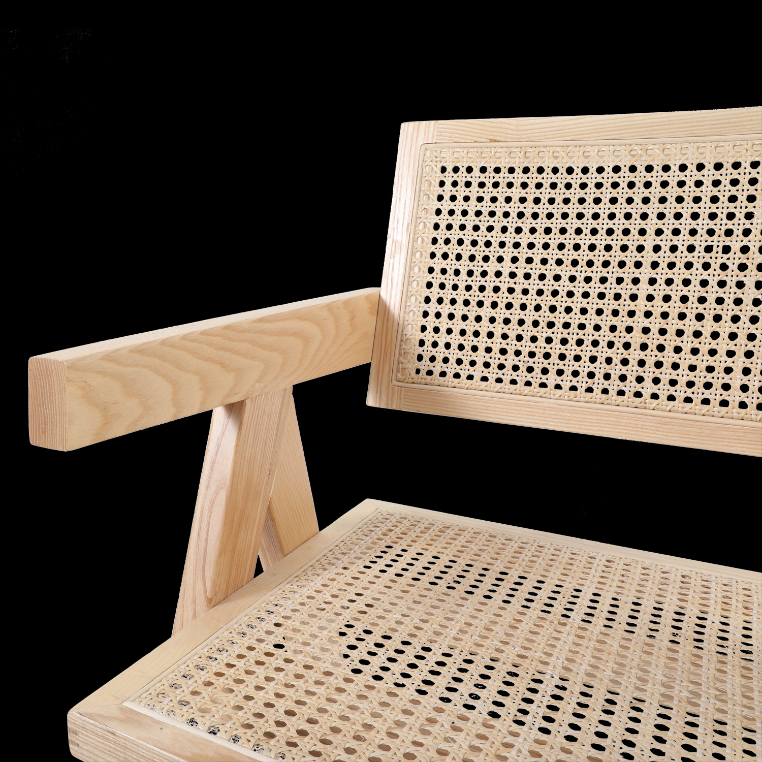 Krzesło BOHO wykonane z naturalnego rattanu i drewna osadzone na drewnianej ramie w kolorze naturalnym.