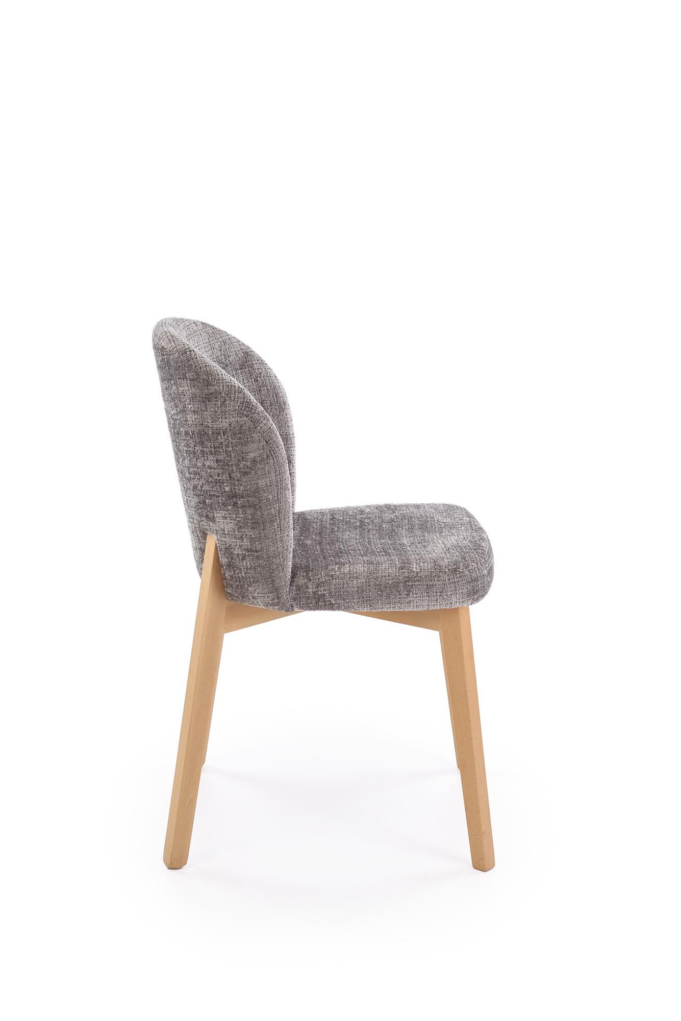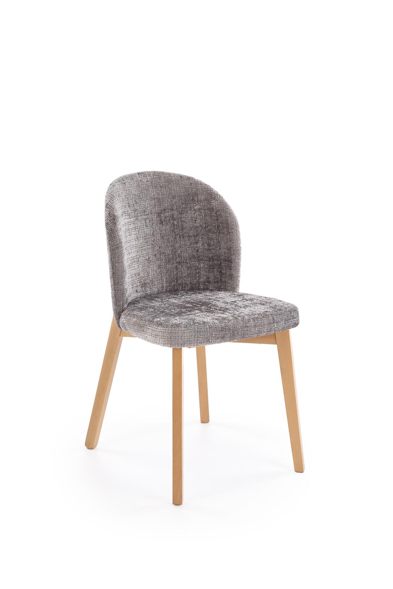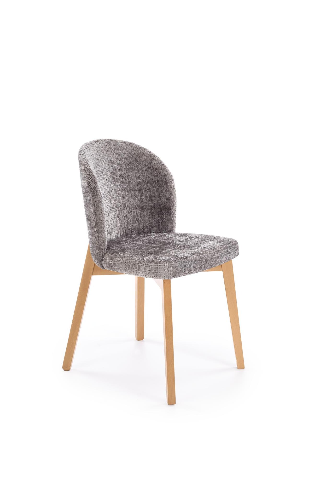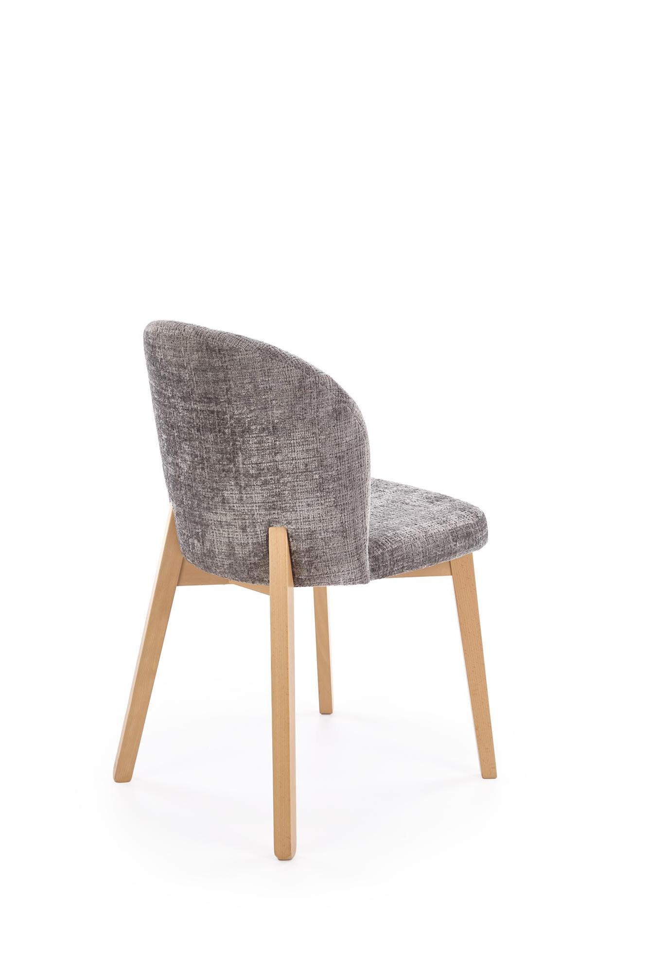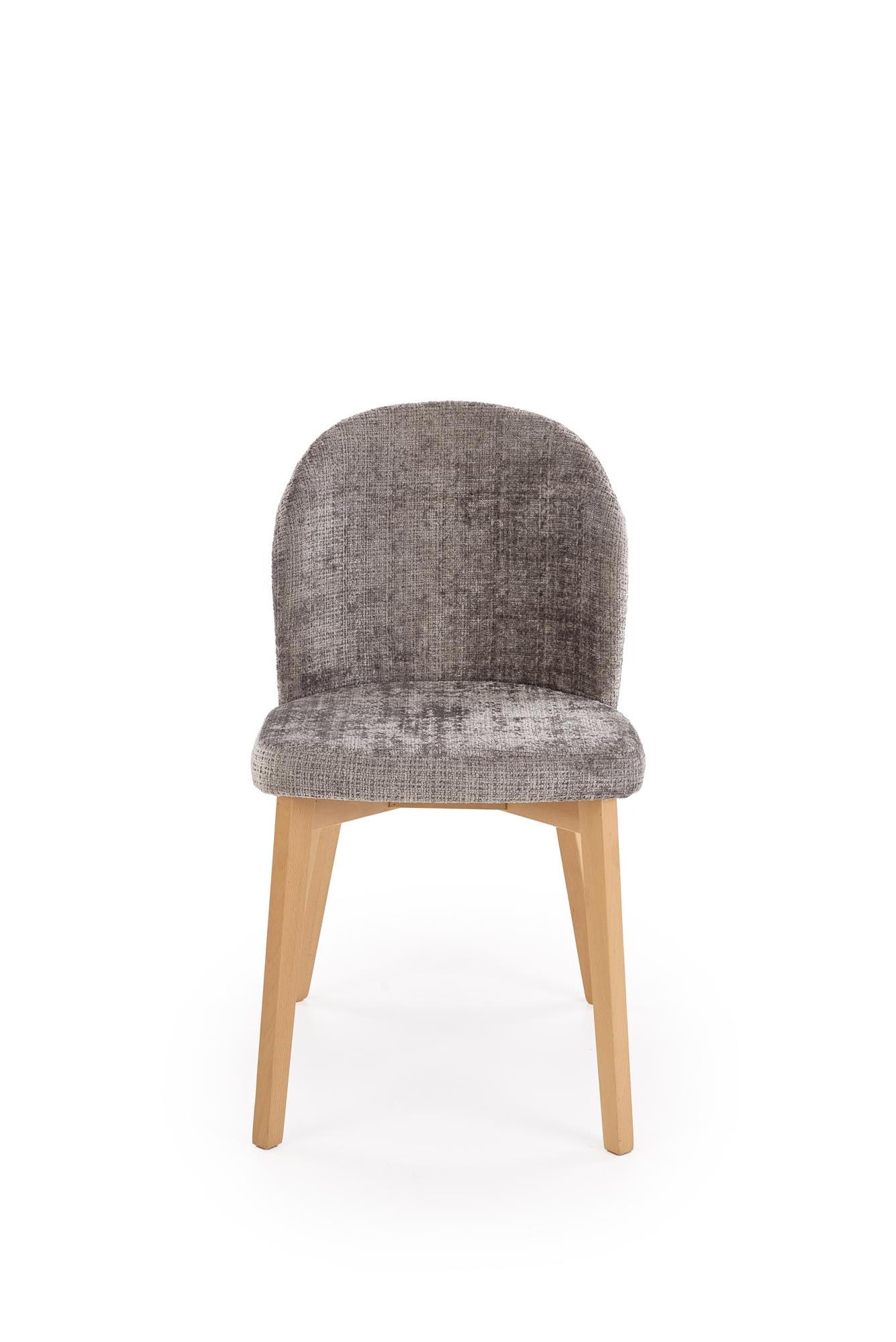 Krzesło wykonano z materiału: tkanina - CREMONA / drewno lite - bukowe, kolory noga - dąb naturalny, tapicerka - popielaty #96