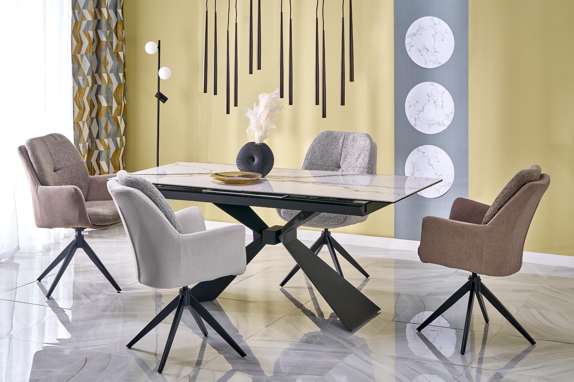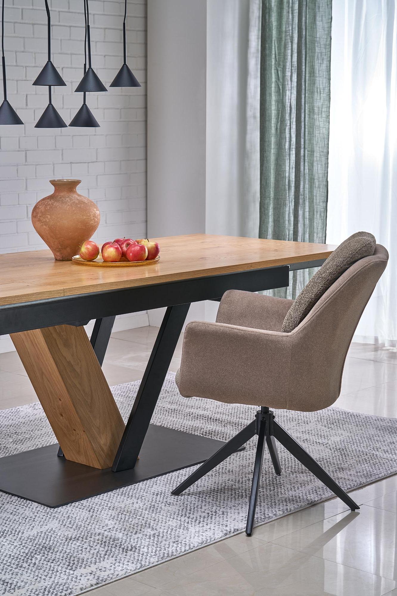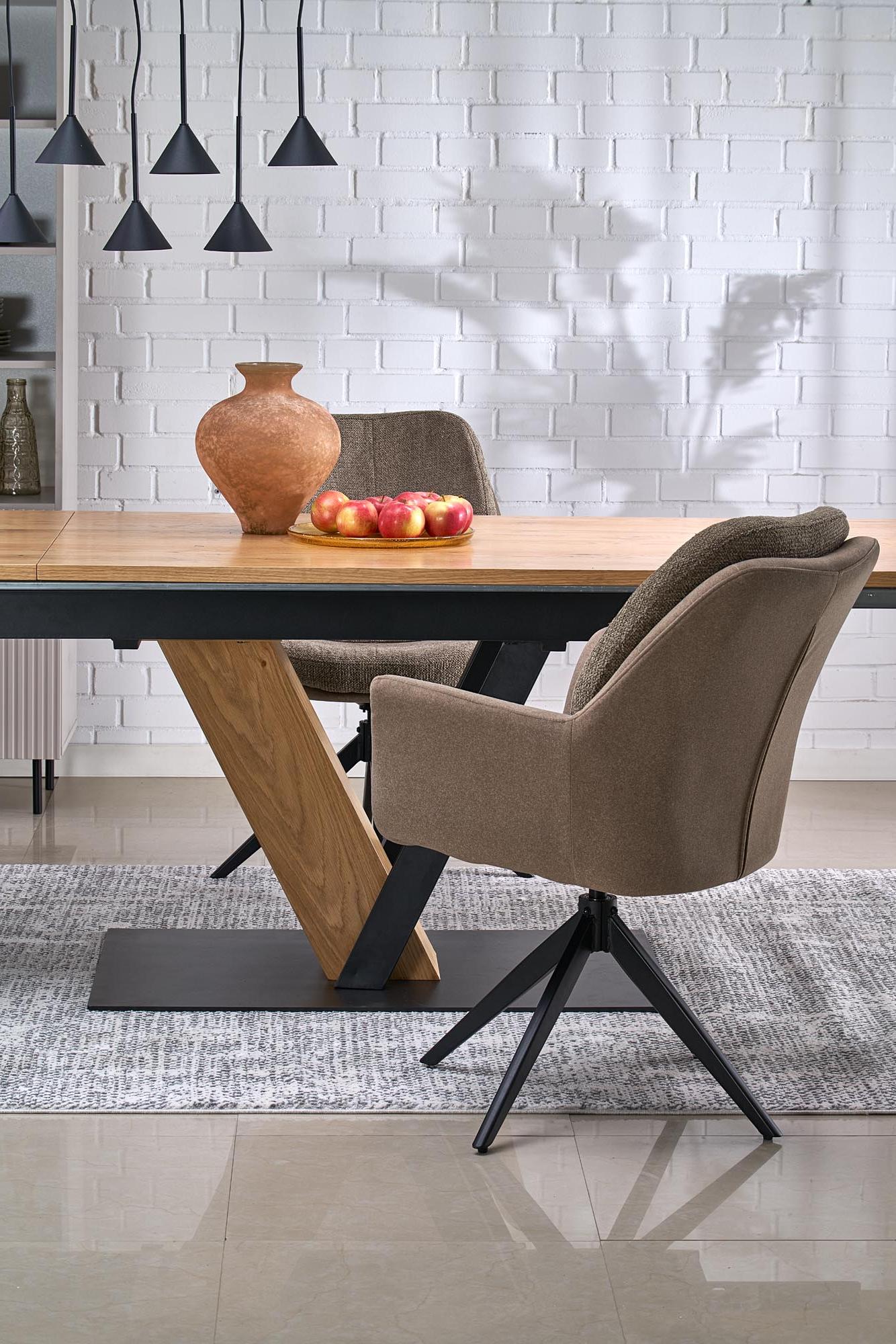 Krzesło wykonano z materiału: tkanina / stal malowana proszkowo, kolor brązowy