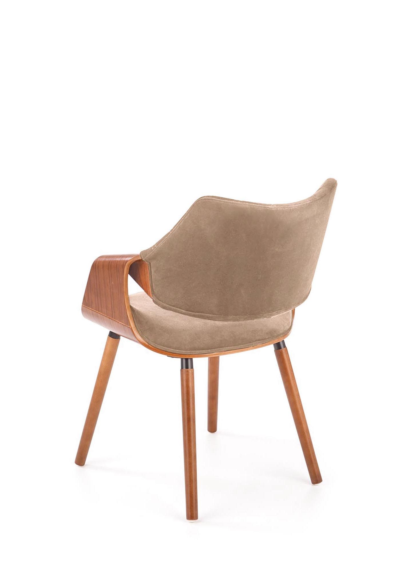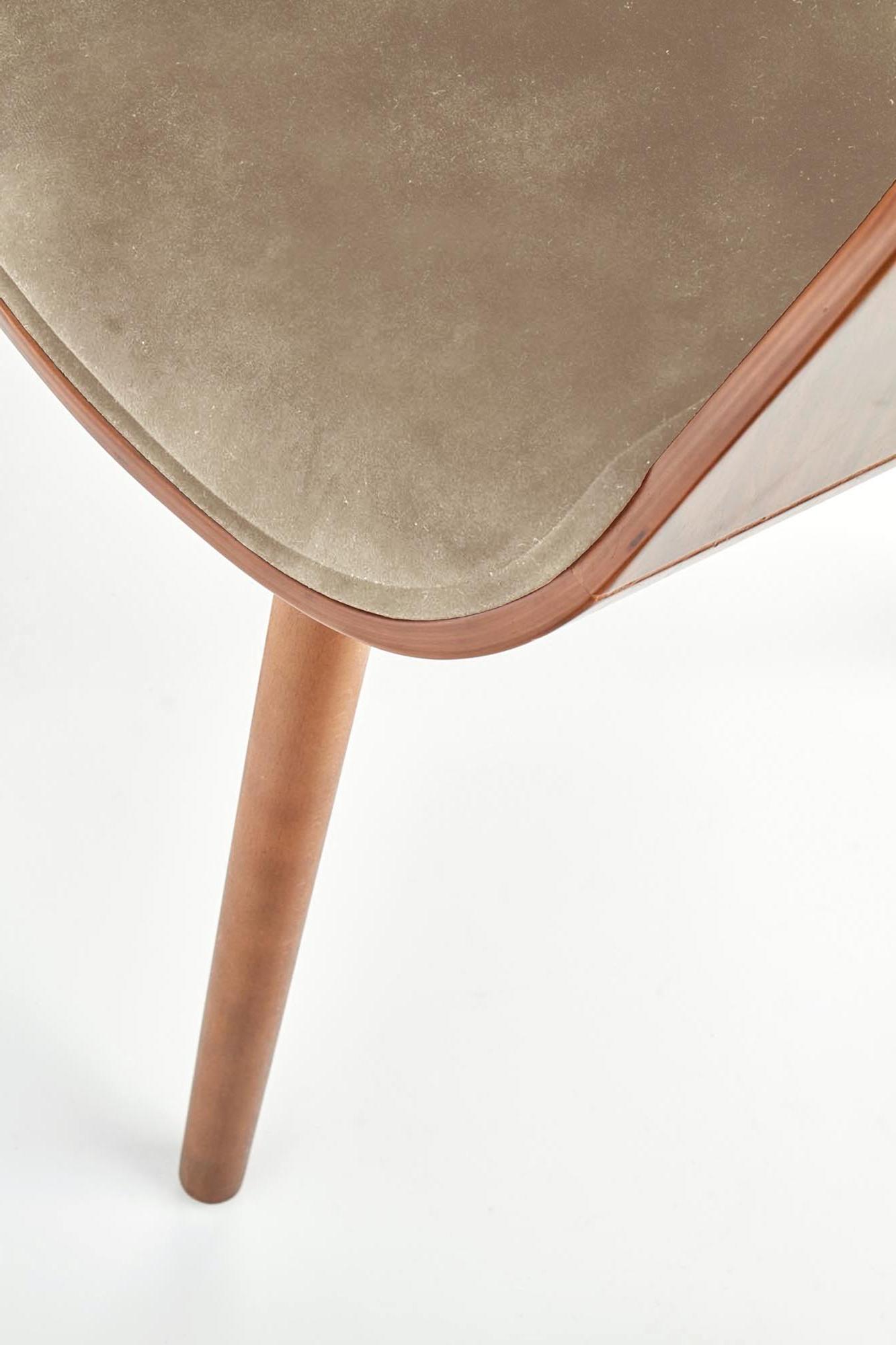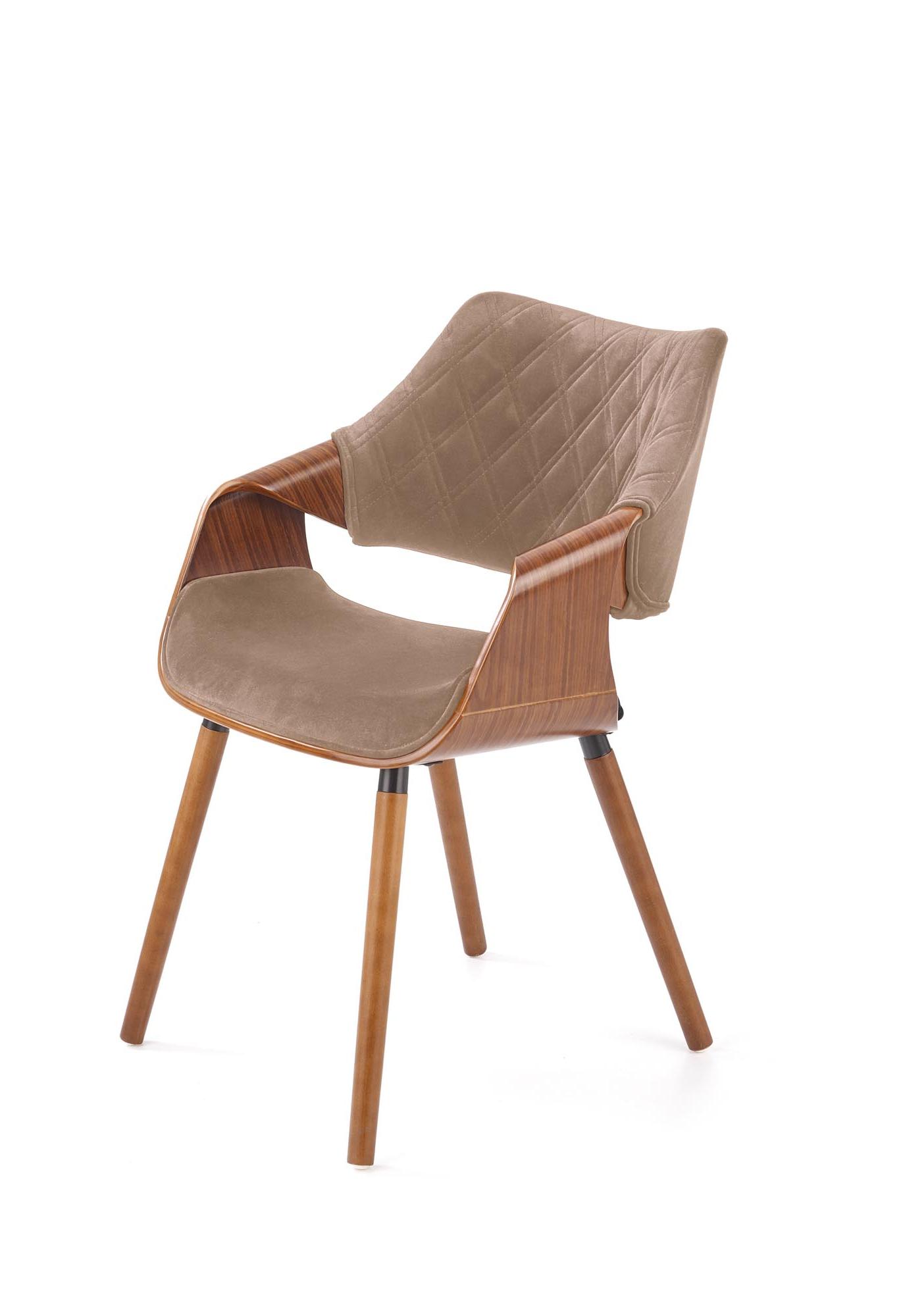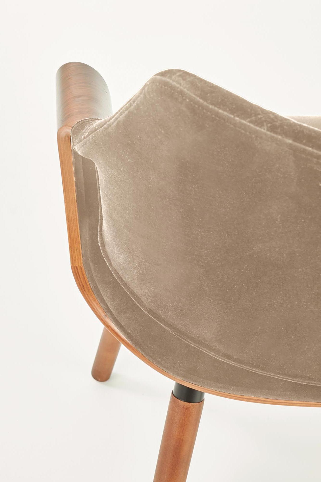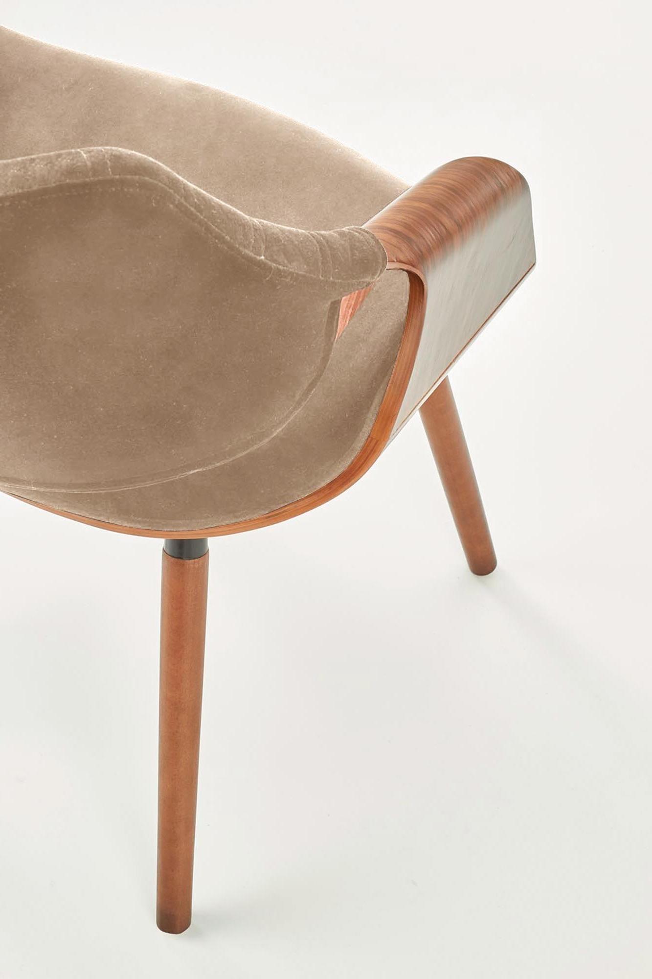 Krzesło wykonano z materiału: sklejka gięta / tkanina BLUVEL 40 / drewno lite, kolor orzechowy / beżowy