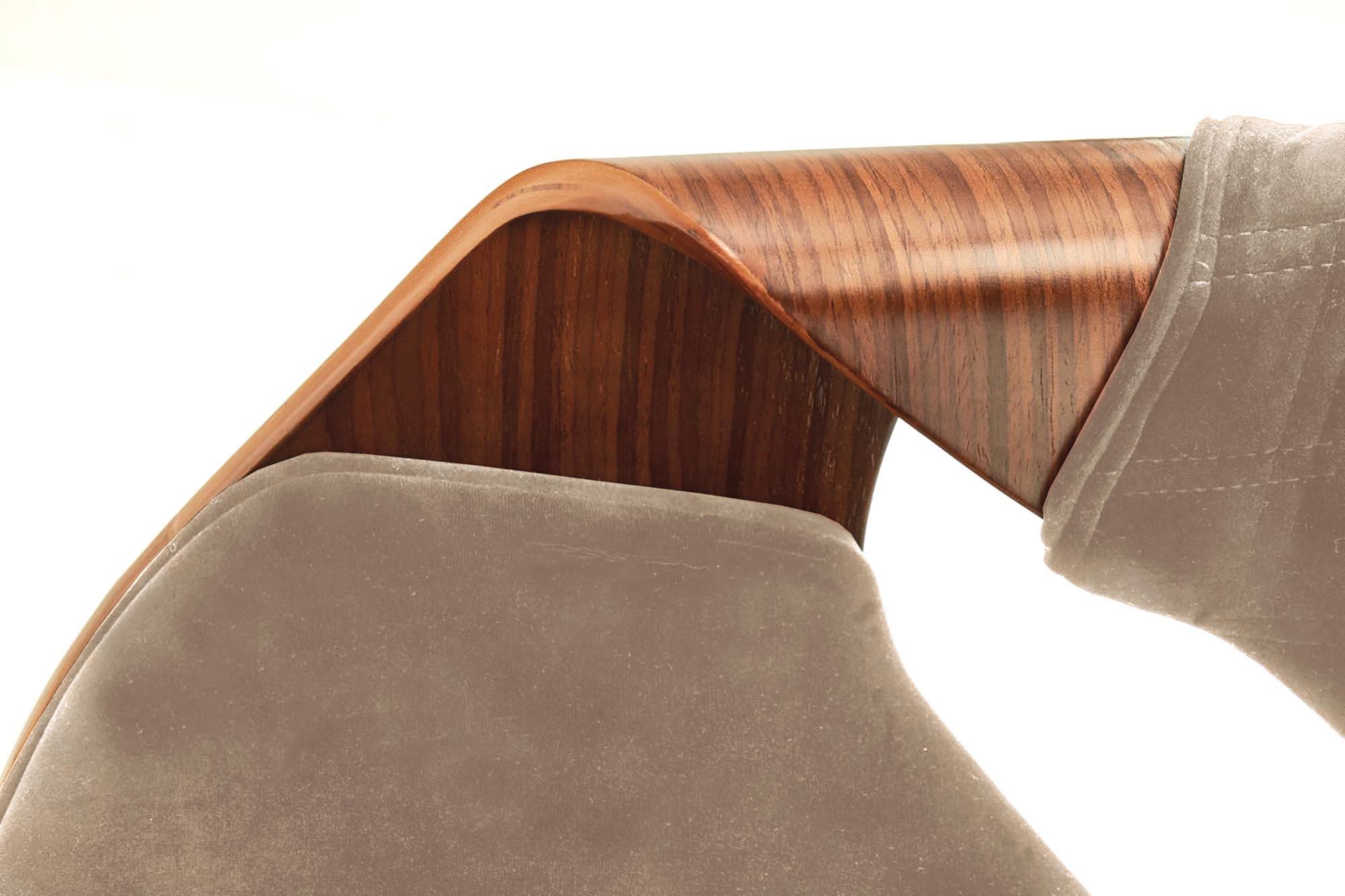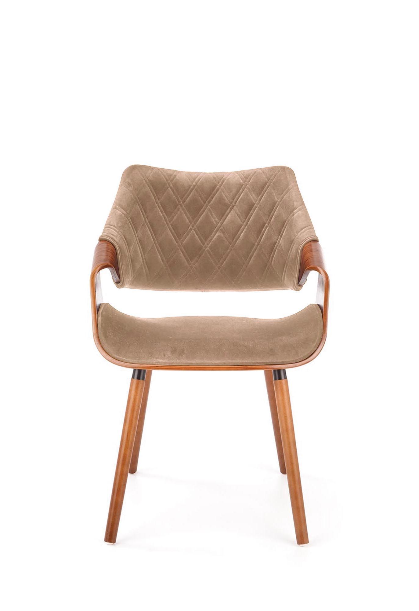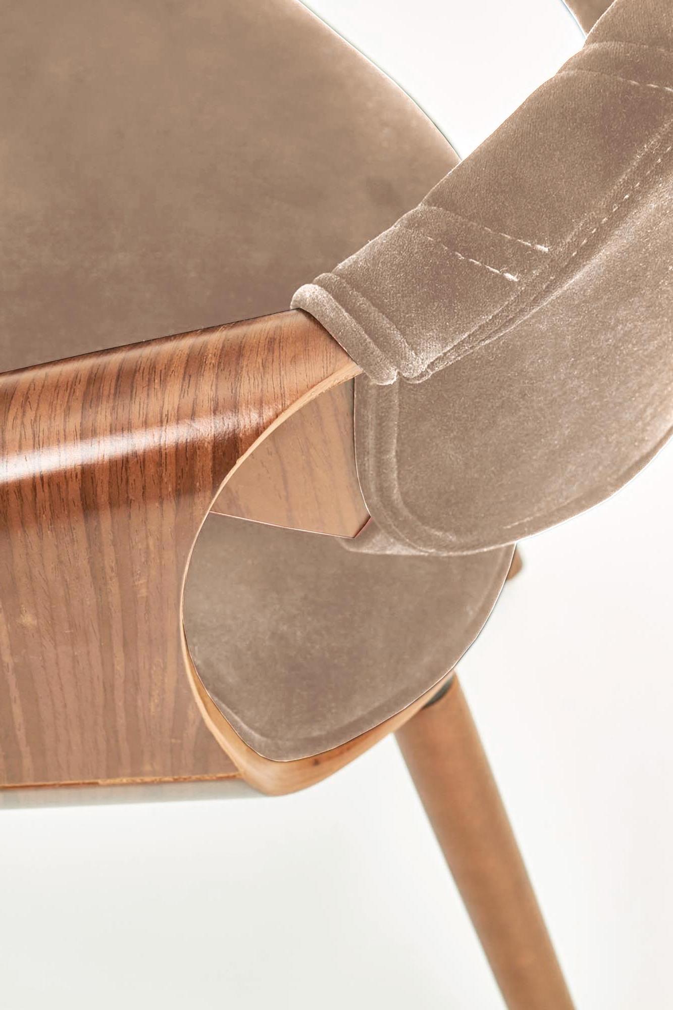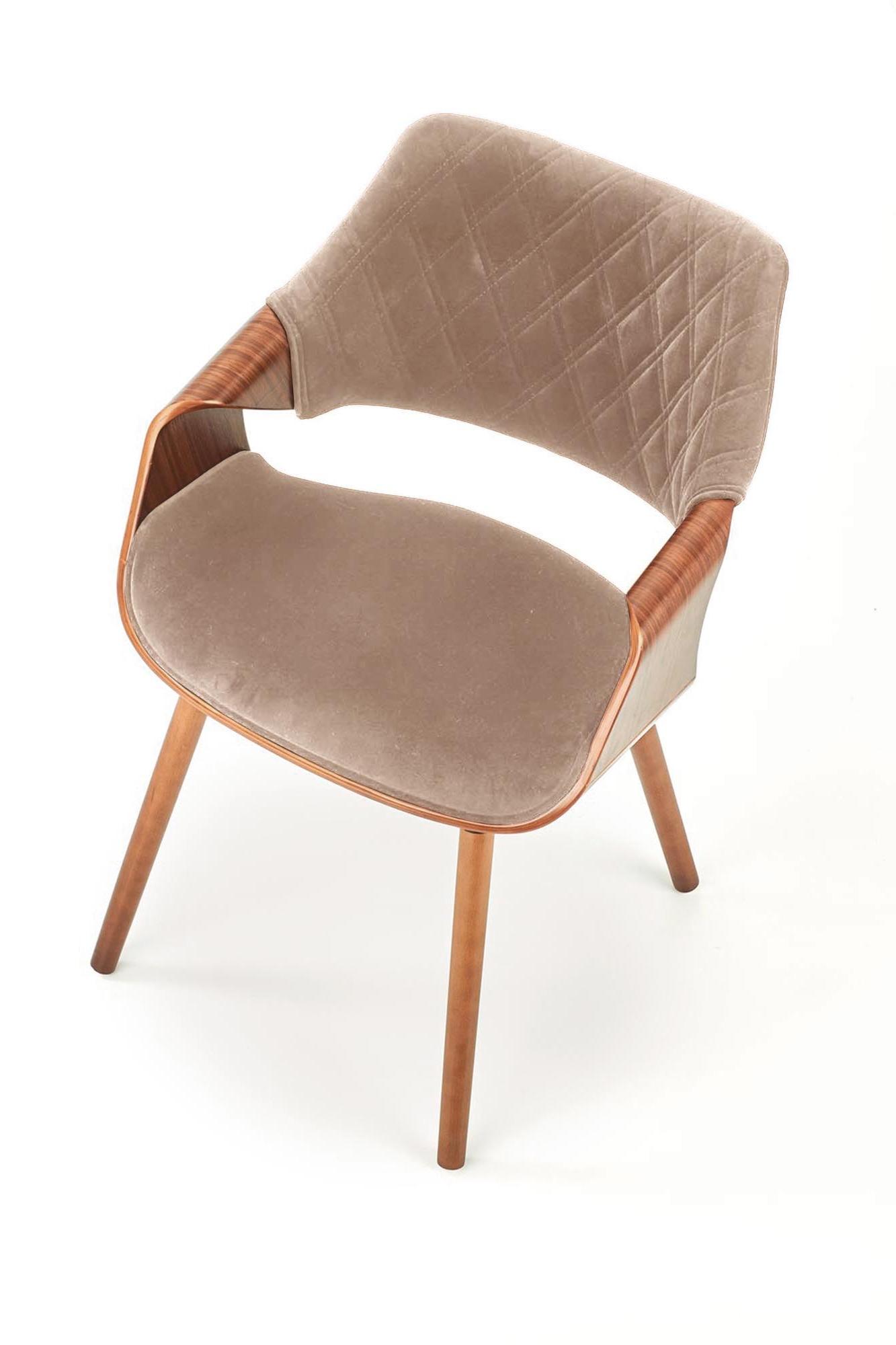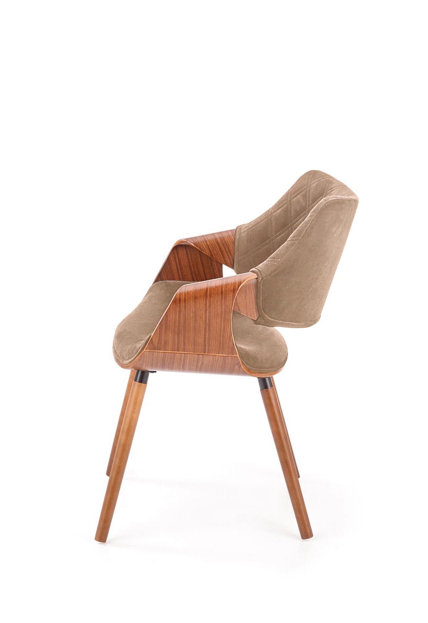 Krzesło wykonano z materiału: sklejka gięta / tkanina BLUVEL 40 / drewno lite, kolor orzechowy / beżowy